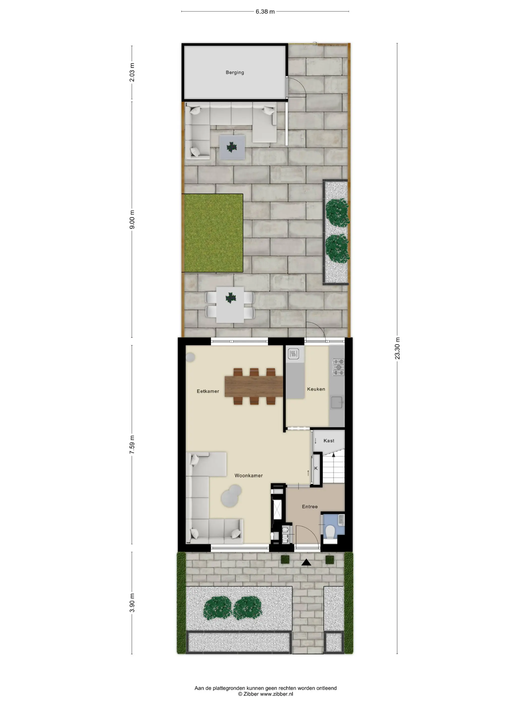 - achtertuin met een oppervlakte van 25 m² en is gelegen op het noordoosten