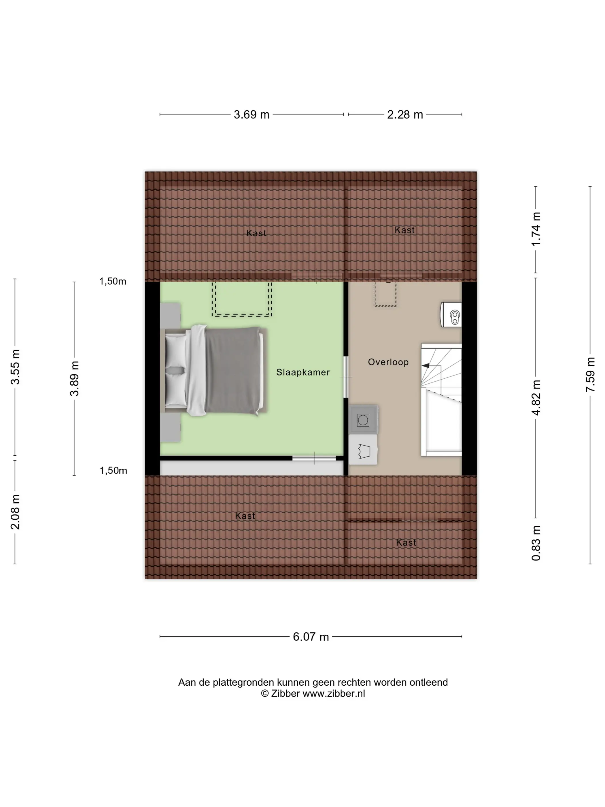 Dankzij de slimme indeling met een vaste kast en knieschotten is er bovendien verrassend veel bergruimte. Een fijne, flexibele verdieping waar je écht iets mee kunt.