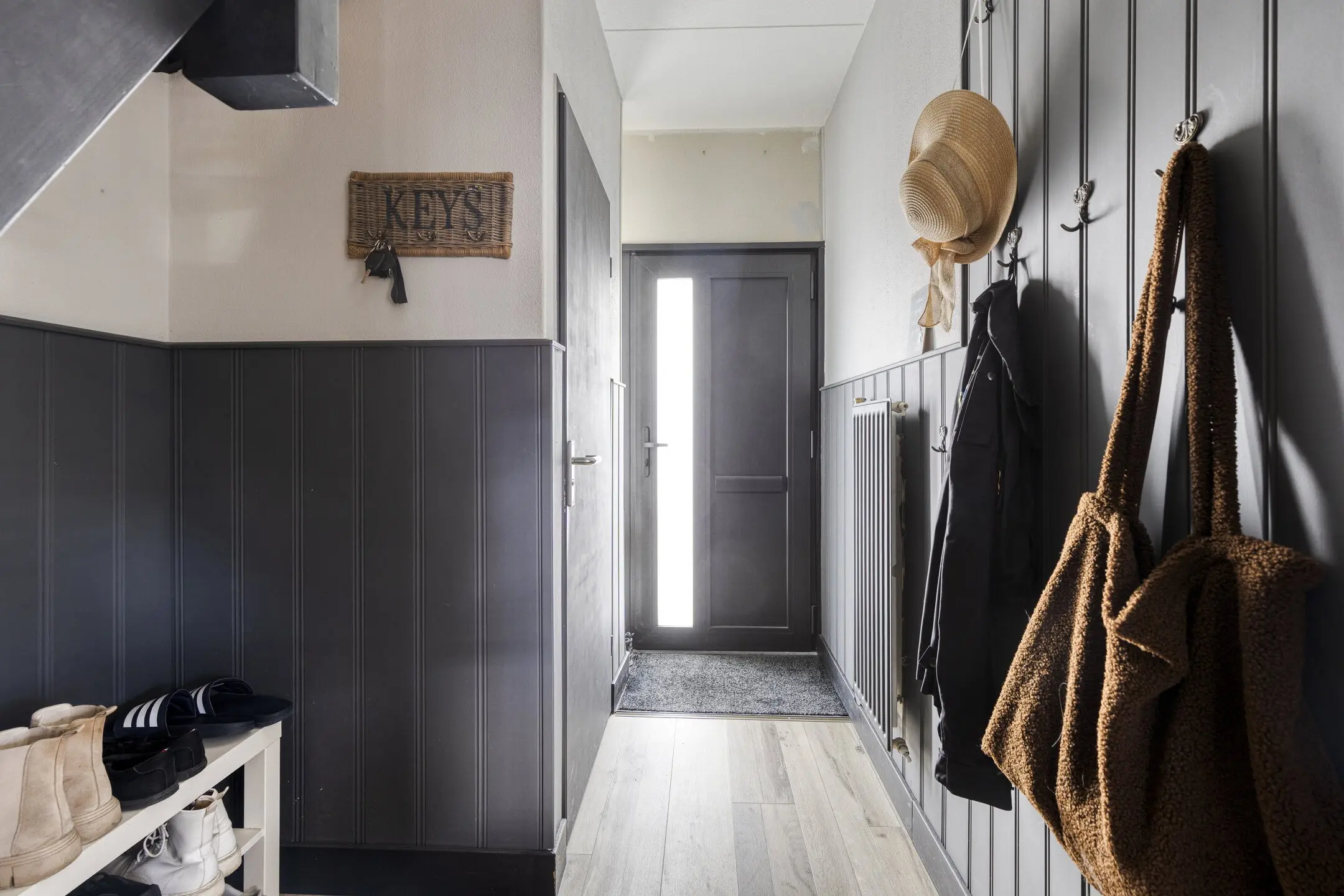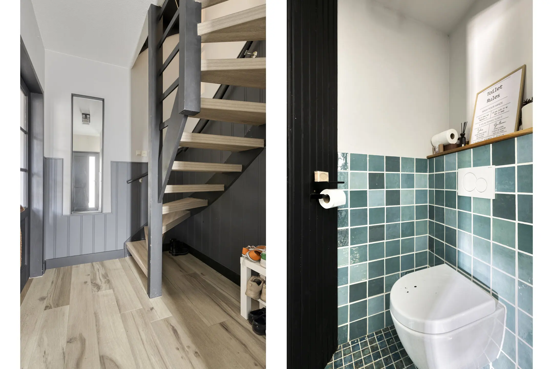 Hier vindt u ook het toilet en de trapopgang naar de eerste verdieping, die in 2023 een moderne "Upstairs"afwerking kreeg.