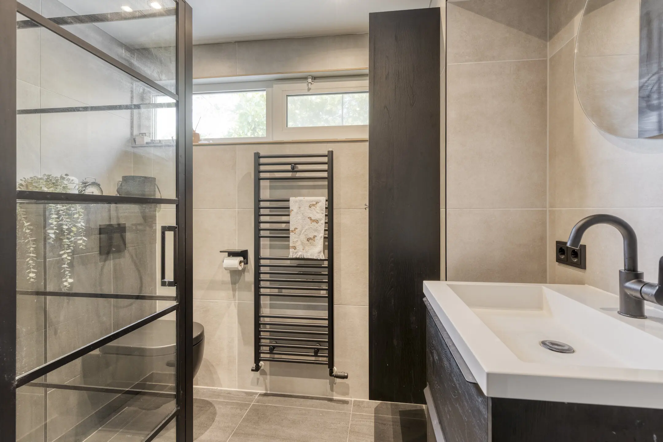 Vanaf de overloop heeft u toegang tot drie slaapkamers en de moderne badkamer. Deze is in 2023 vernieuwd en uitgerust met een douche, een stijlvol badmeubel en een toilet.