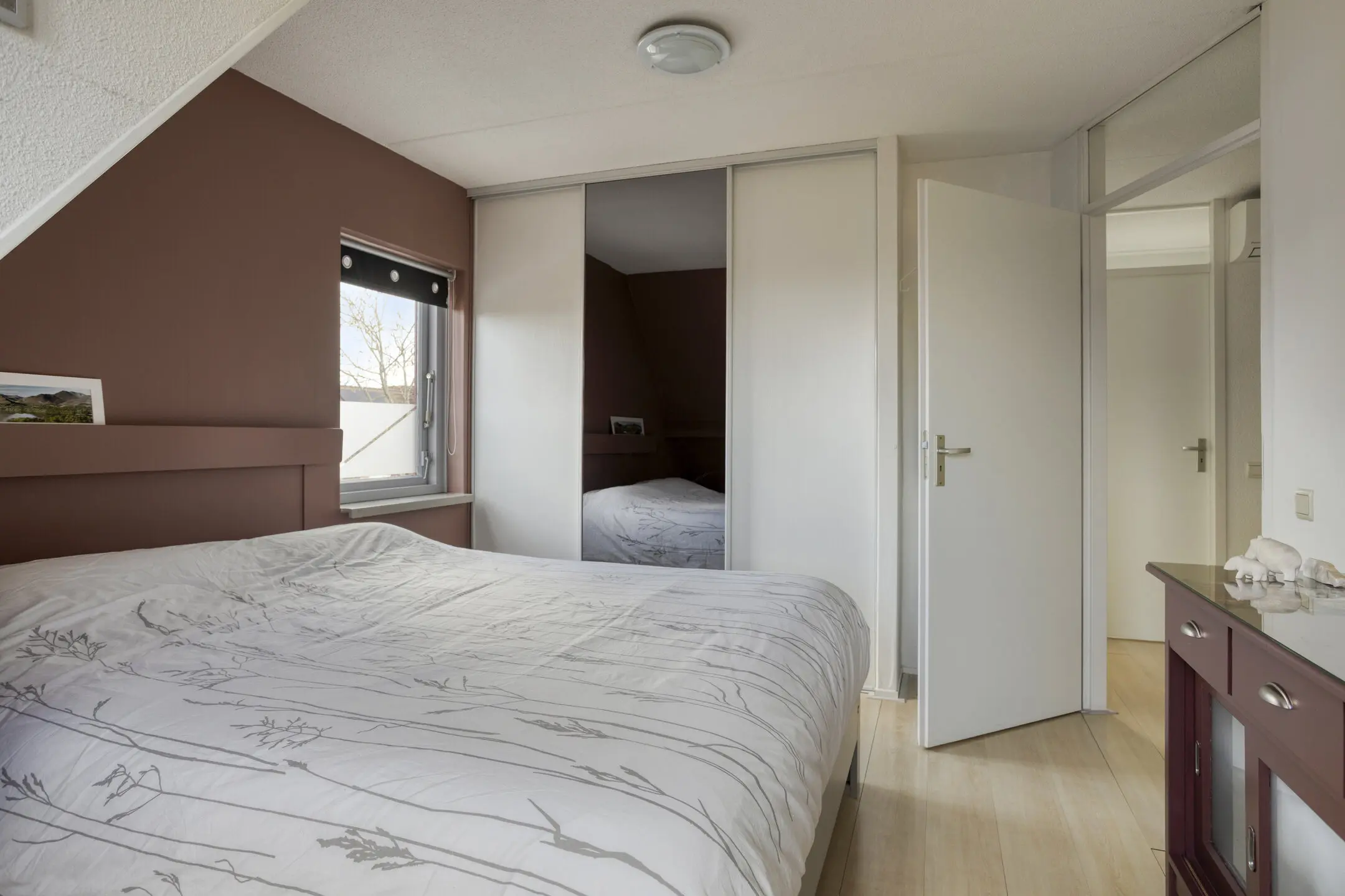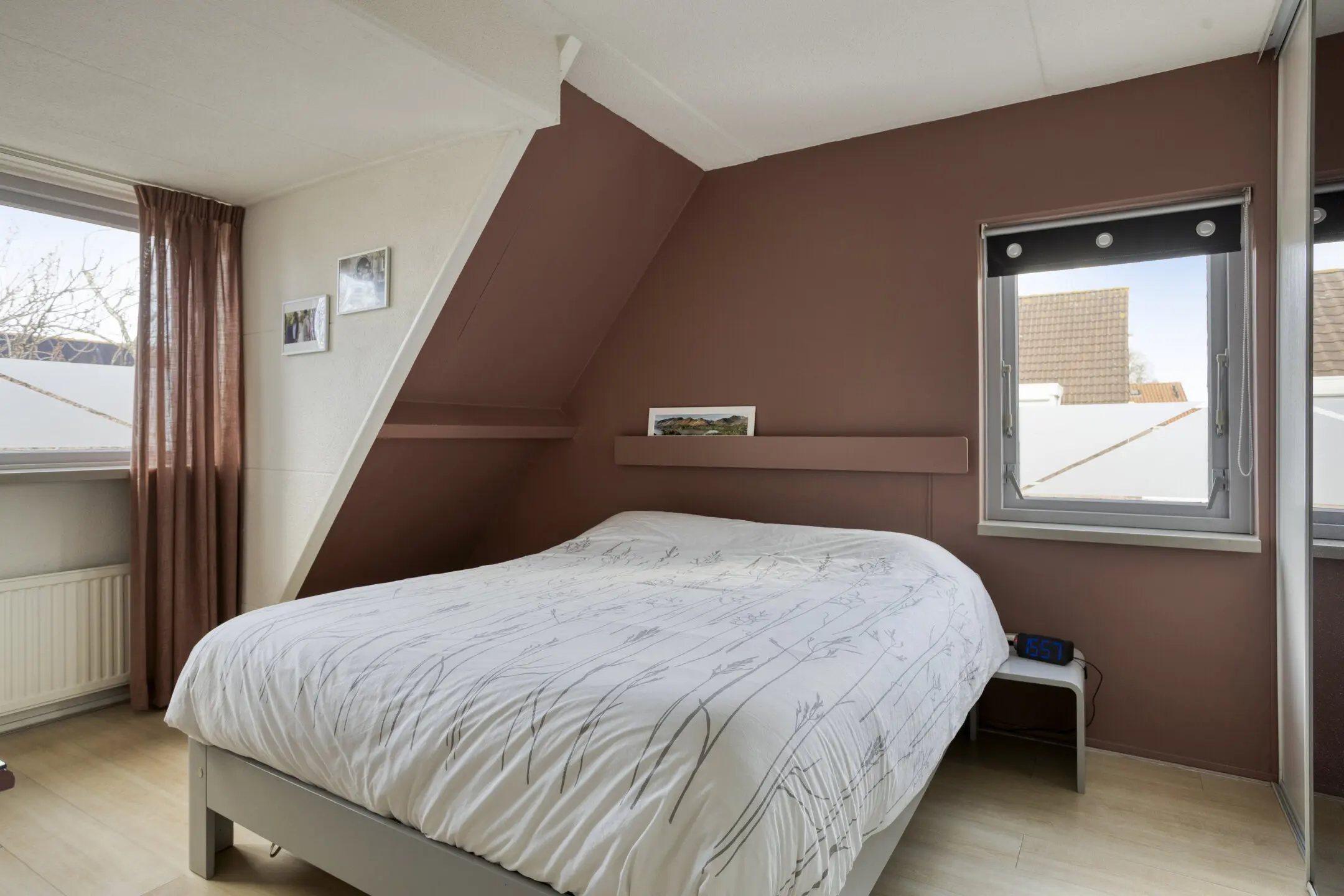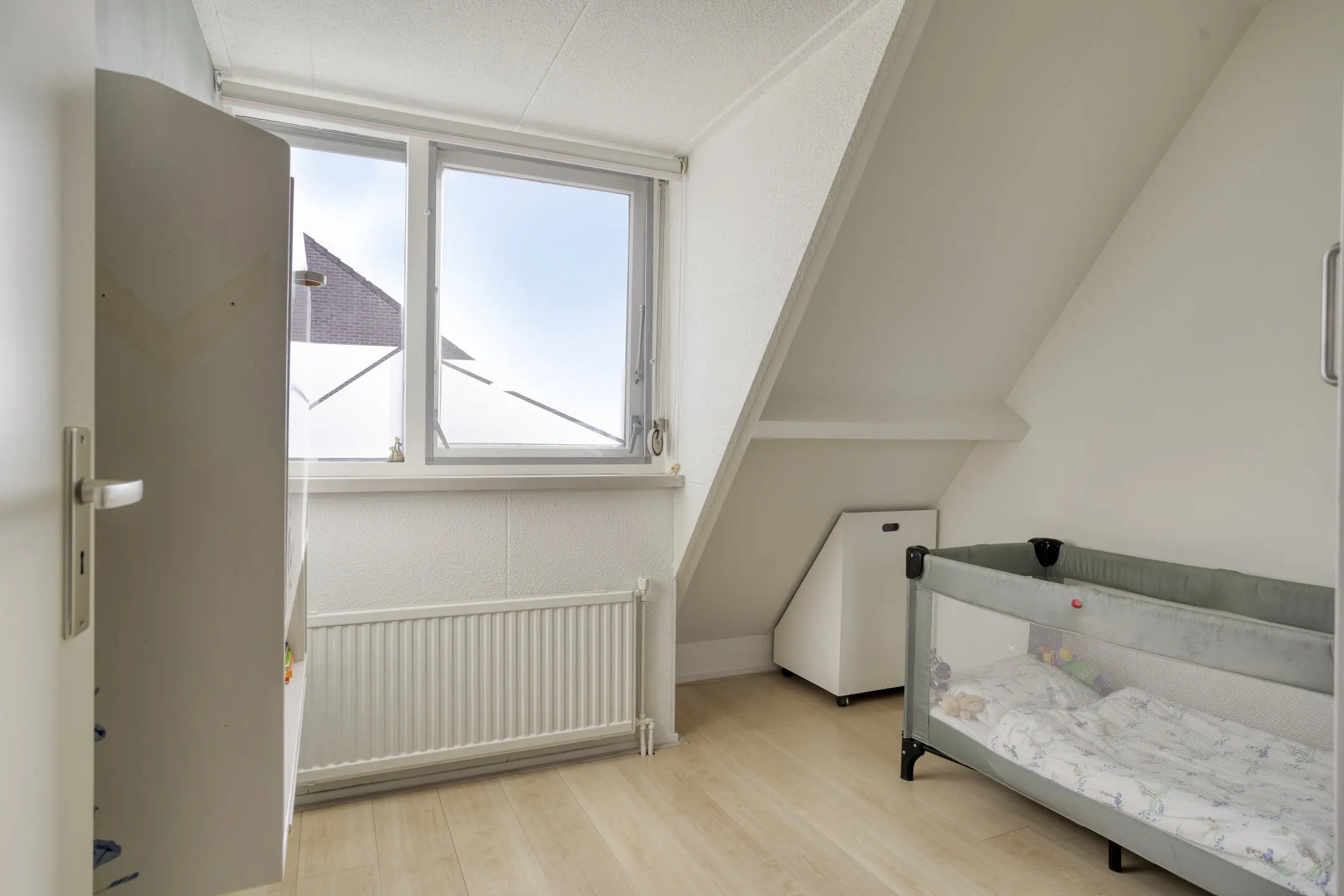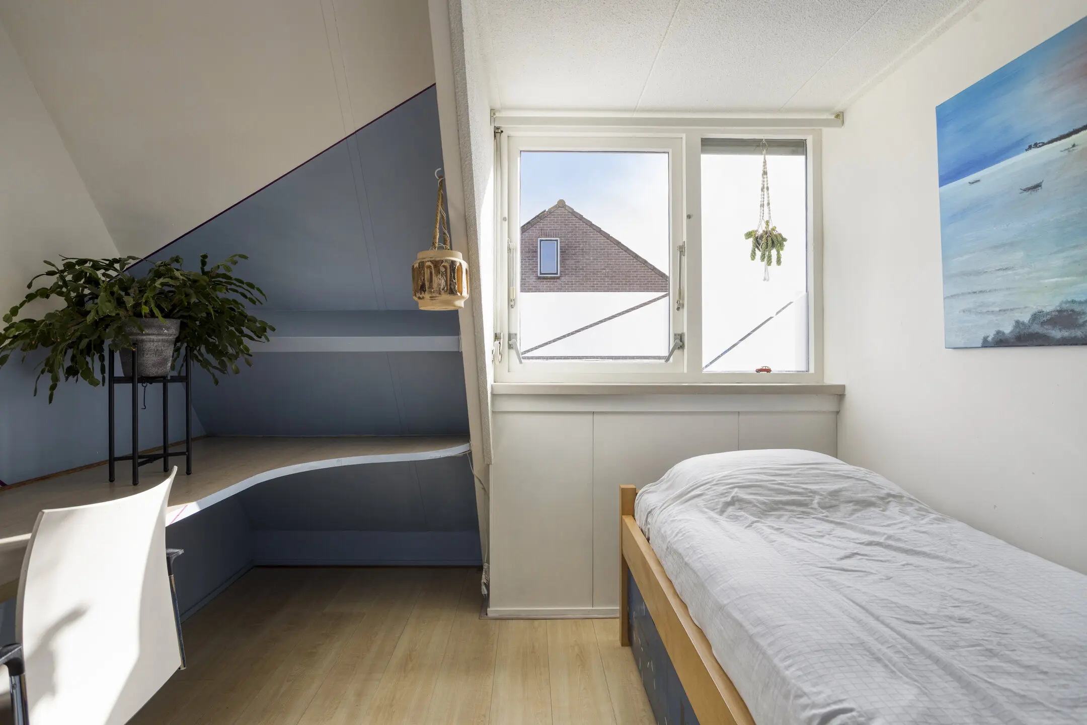 Op de overloop hangt een airco (2021) die zowel kan koelen als verwarmen. Vanaf hier bereik je drie slaapkamers, de badkamer en de trap naar de tweede verdieping. De slaapkamer aan de voorzijde is ruim en licht dankzij de dakkapel. Daarnaast zorgt een vaste kast voor extra opbergruimte. Ook de twee slaapkamers aan de achterzijde zijn voorzien van een dakkapel.