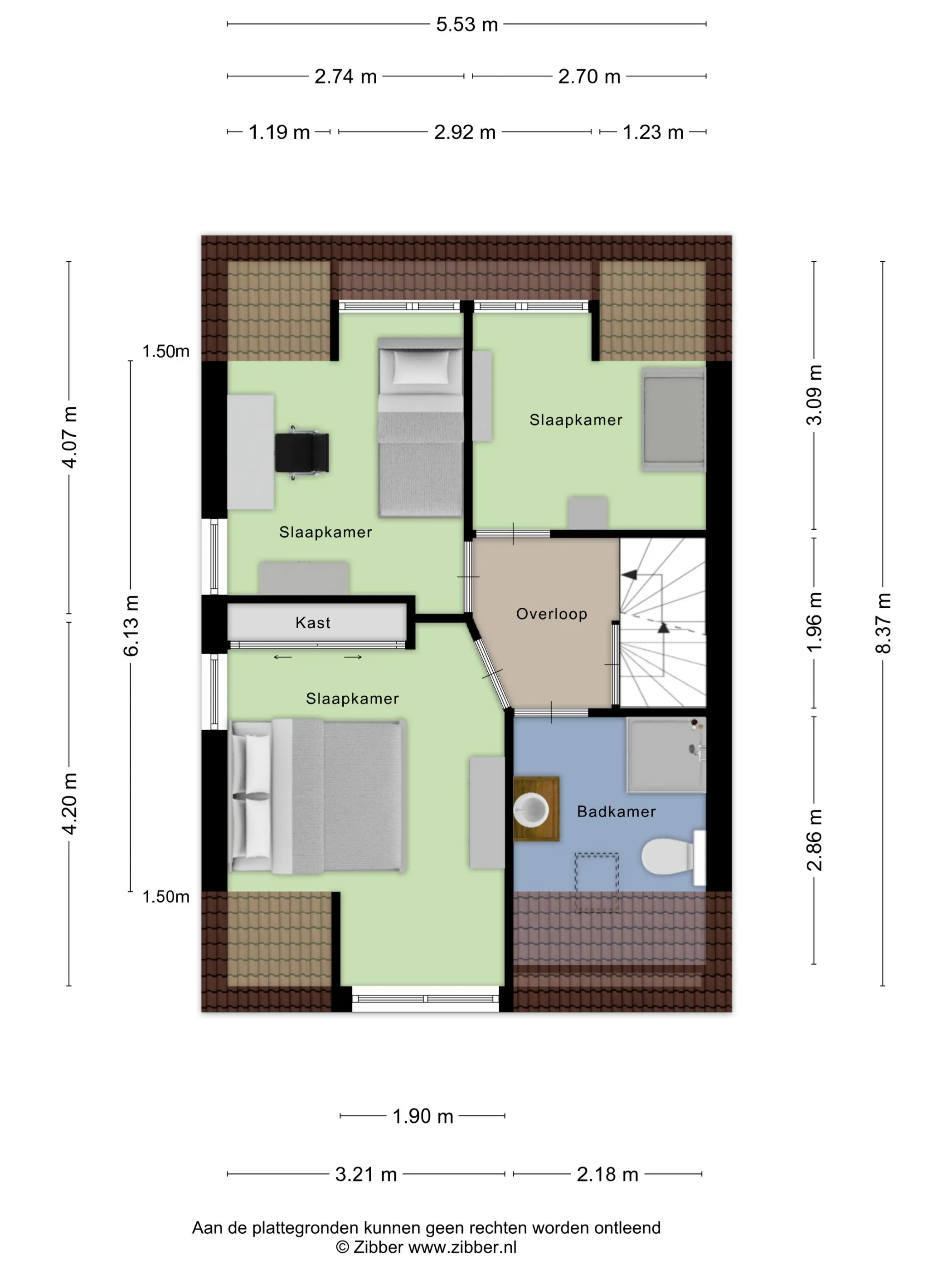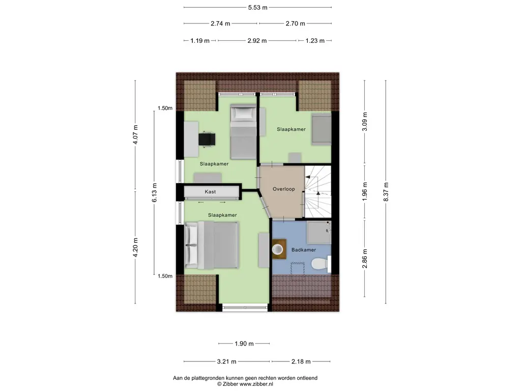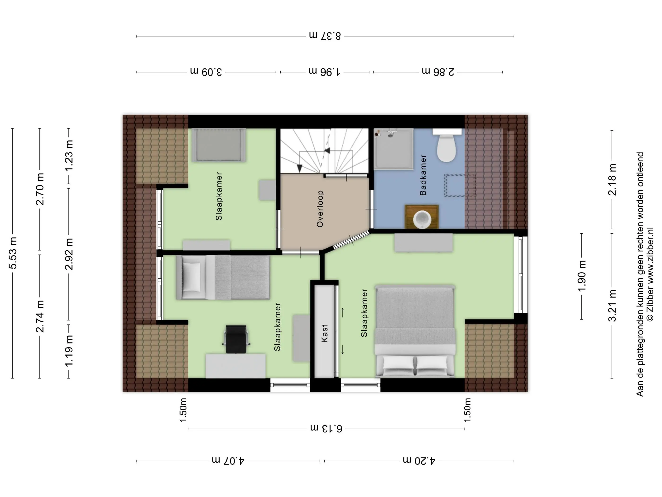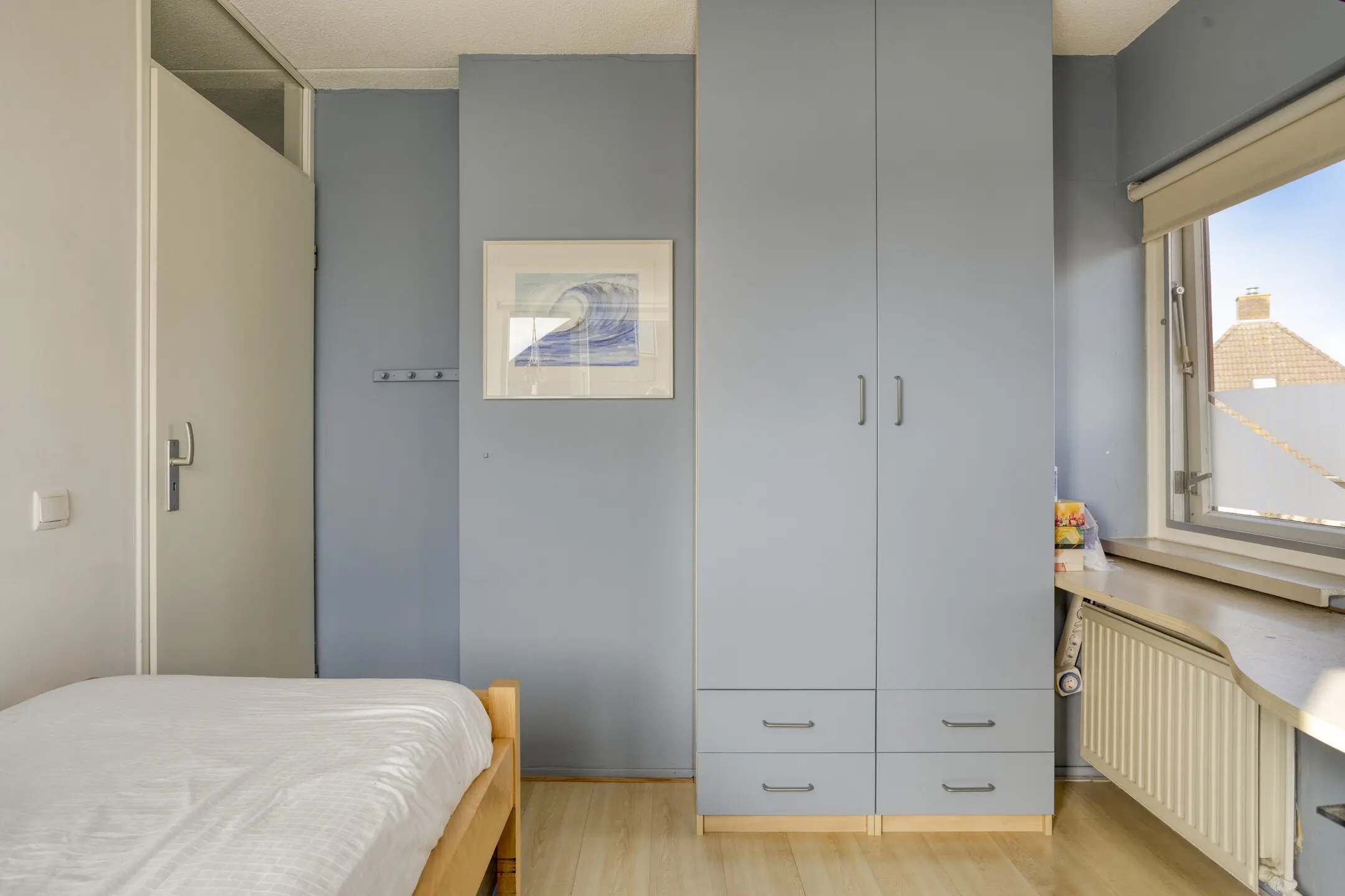 Op de overloop hangt een airco (2021) die zowel kan koelen als verwarmen. Vanaf hier bereik je drie slaapkamers, de badkamer en de trap naar de tweede verdieping. De slaapkamer aan de voorzijde is ruim en licht dankzij de dakkapel. Daarnaast zorgt een vaste kast voor extra opbergruimte. Ook de twee slaapkamers aan de achterzijde zijn voorzien van een dakkapel.