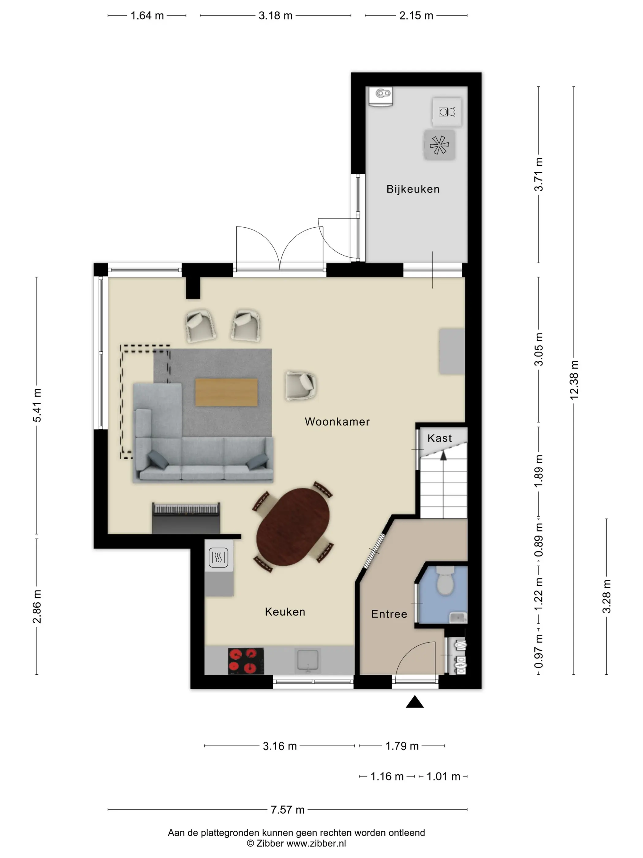 In de woonkamer, keuken en bijkeuken is bovendien vloerverwarming aanwezig.