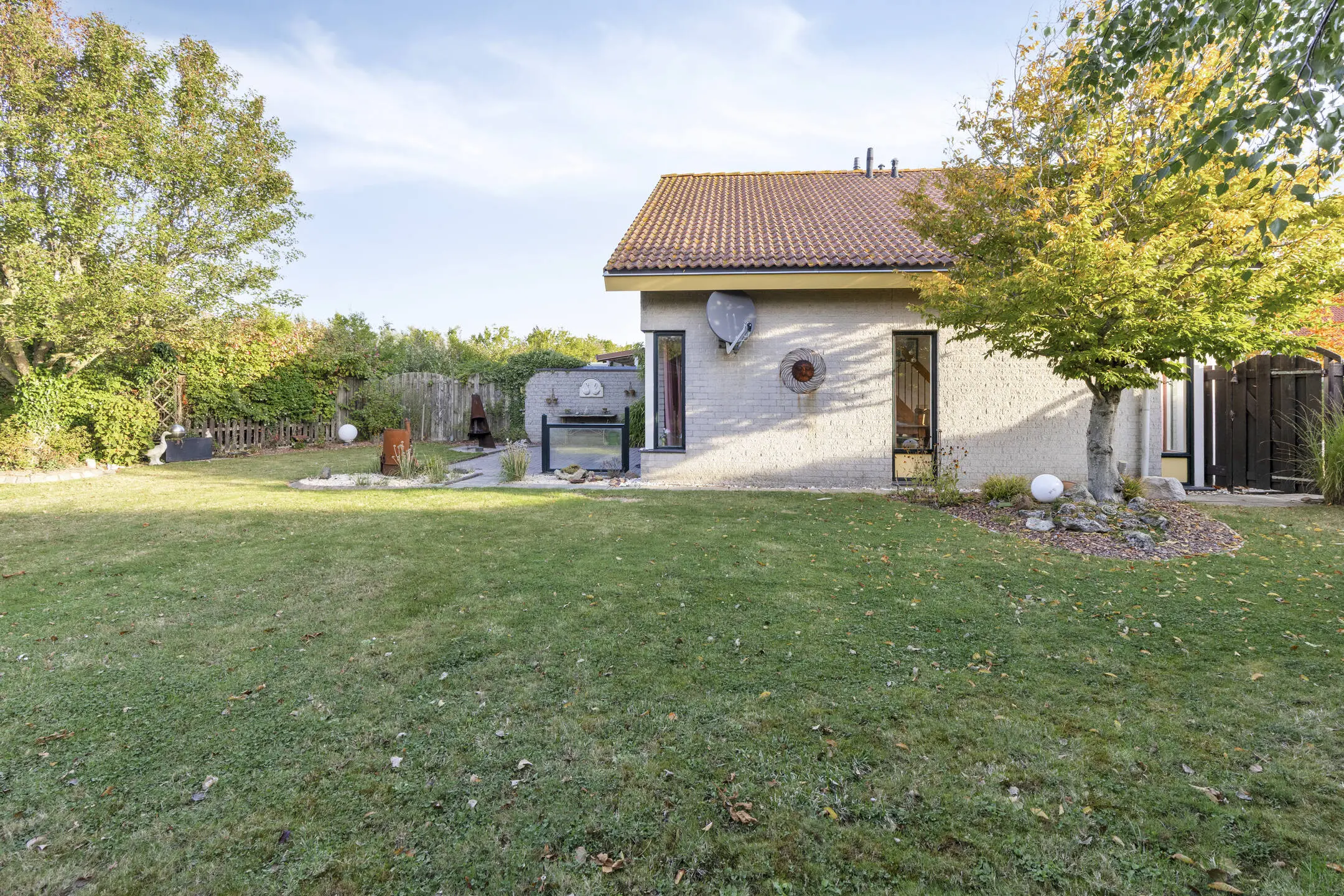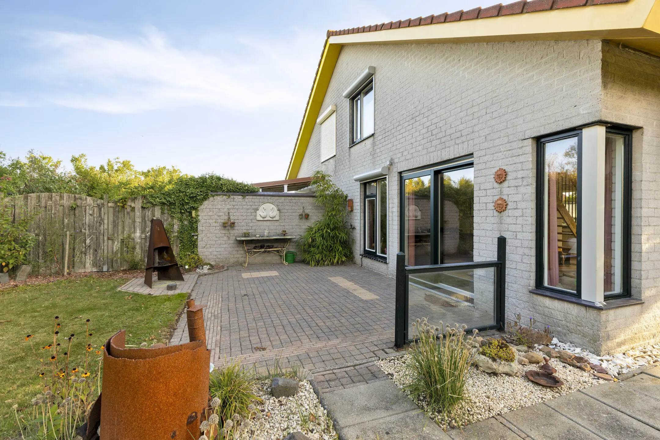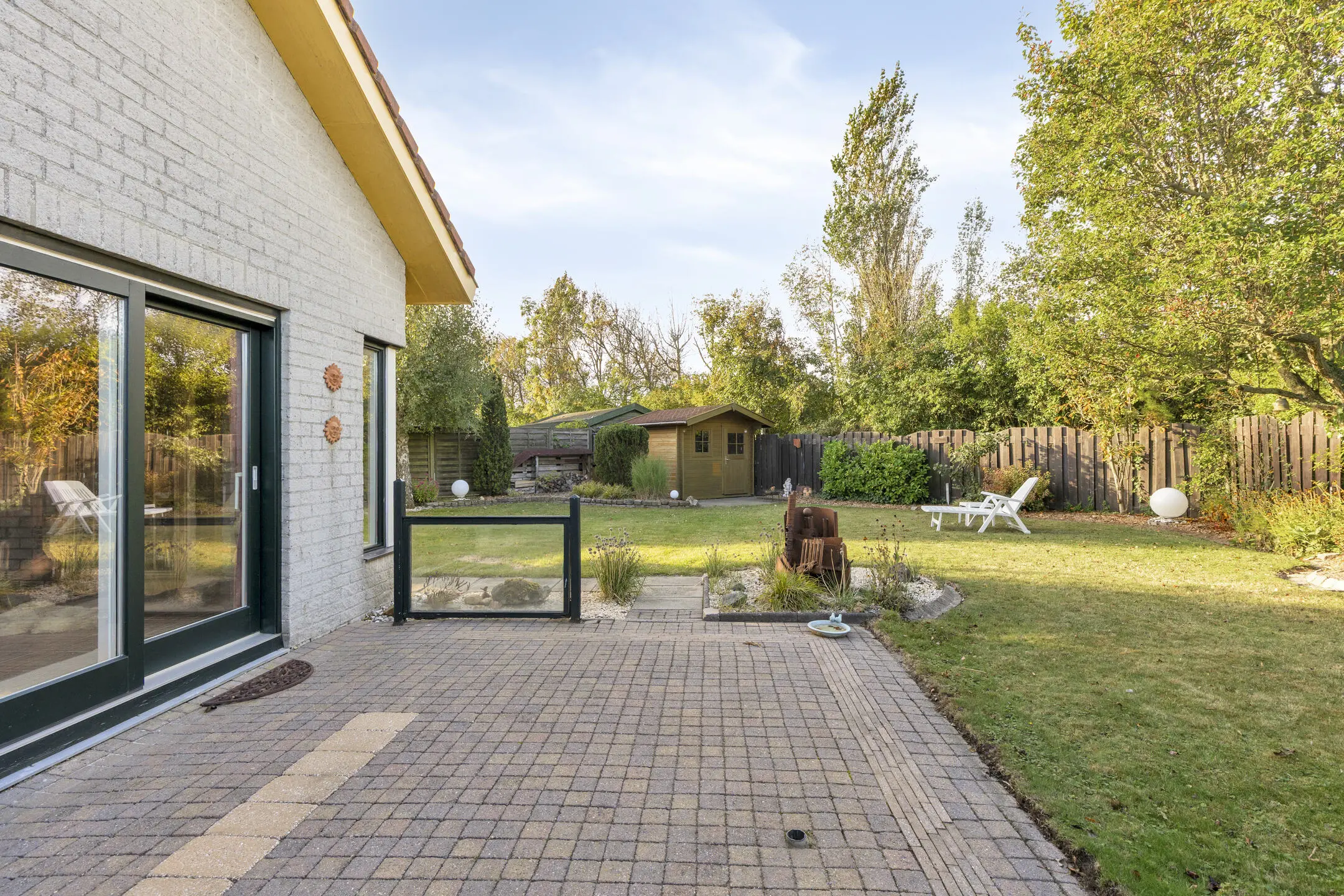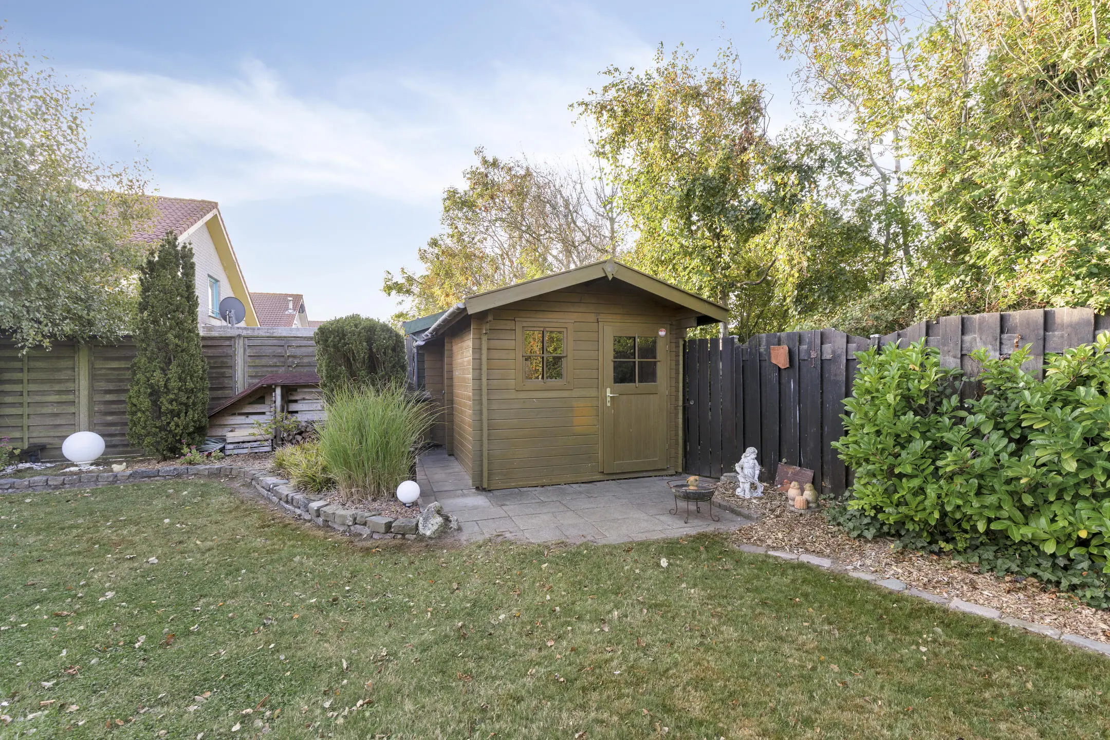 De achtertuin is gelegen op het Westen en is voorzien van sierbestrating, gazon en een vrij achterom. Dankzij de gunstige ligging kun je hier op elk moment van de dag kiezen voor een zonnig of juist schaduwrijk plekje. In de achtertuin staat een ruime berging, perfect voor het opbergen van allerhande spullen.