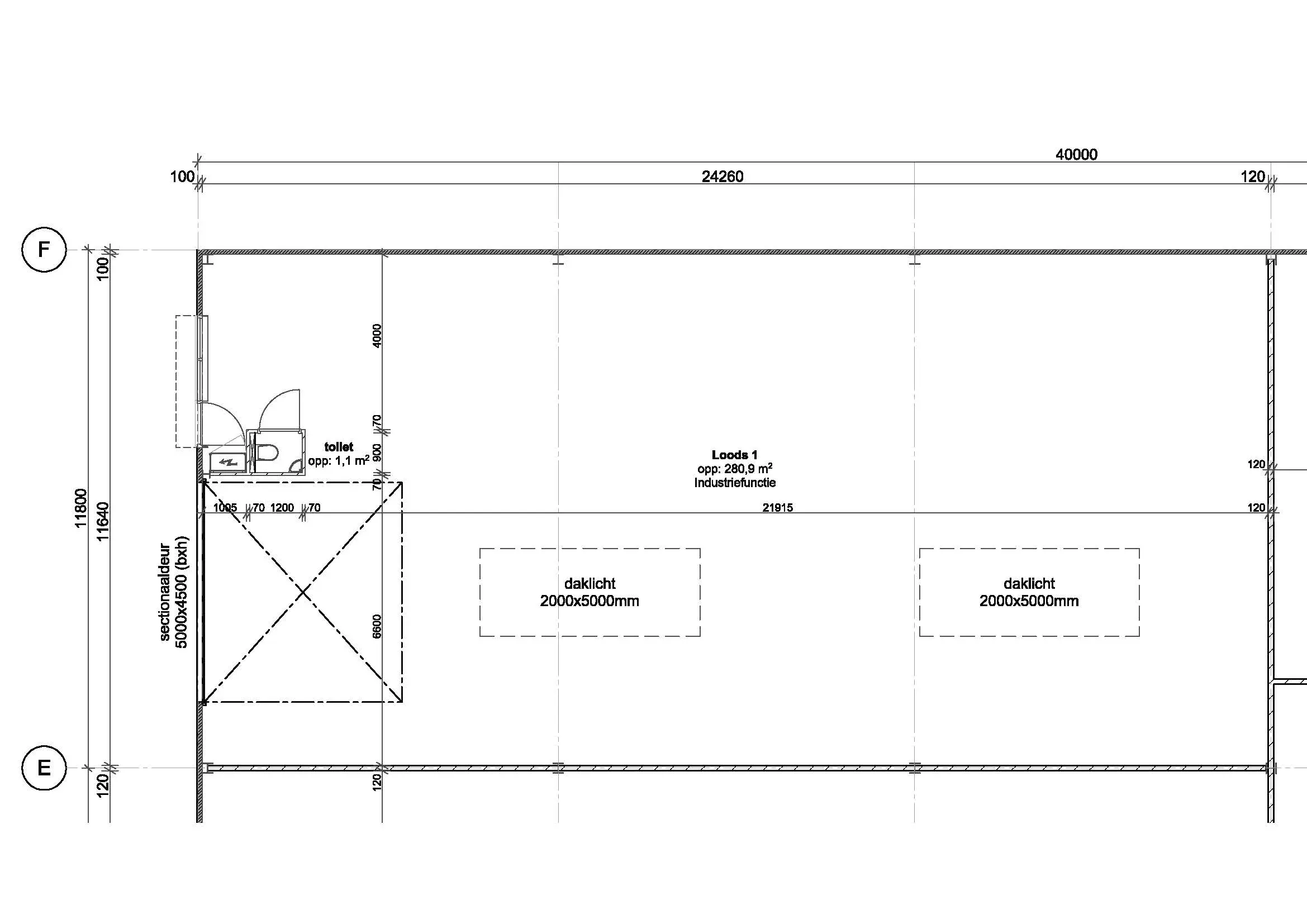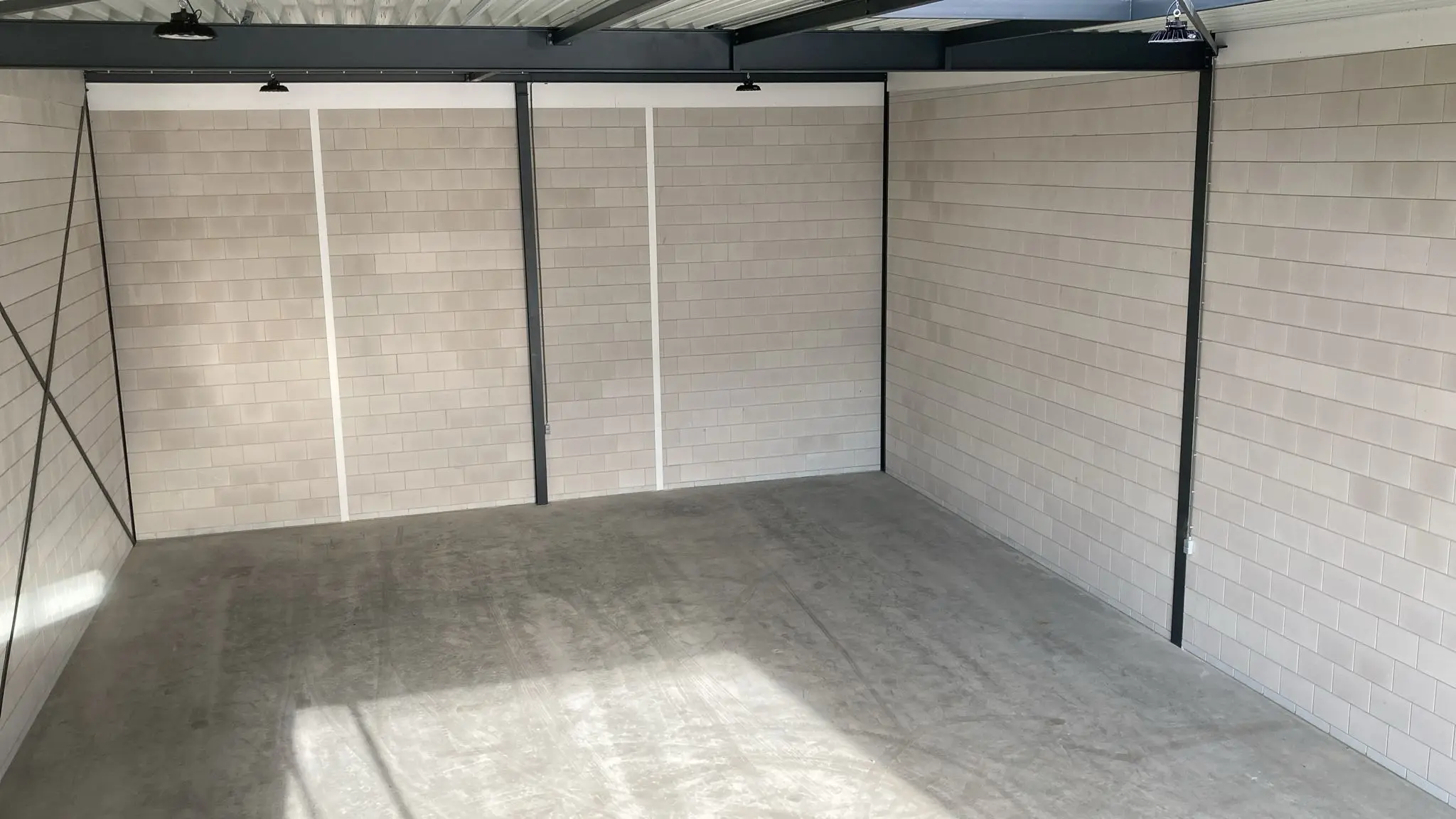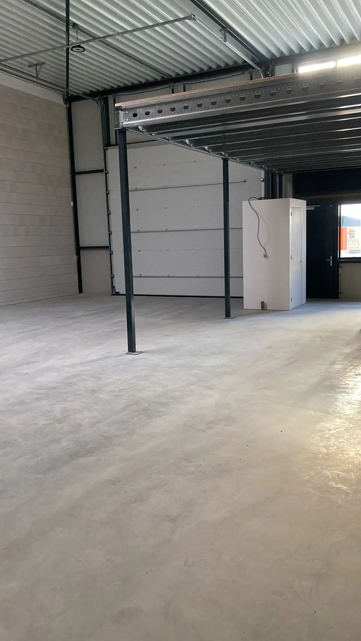 - Lichtstraten, overheaddeuren, krachtstroom, betonvloer, toilet