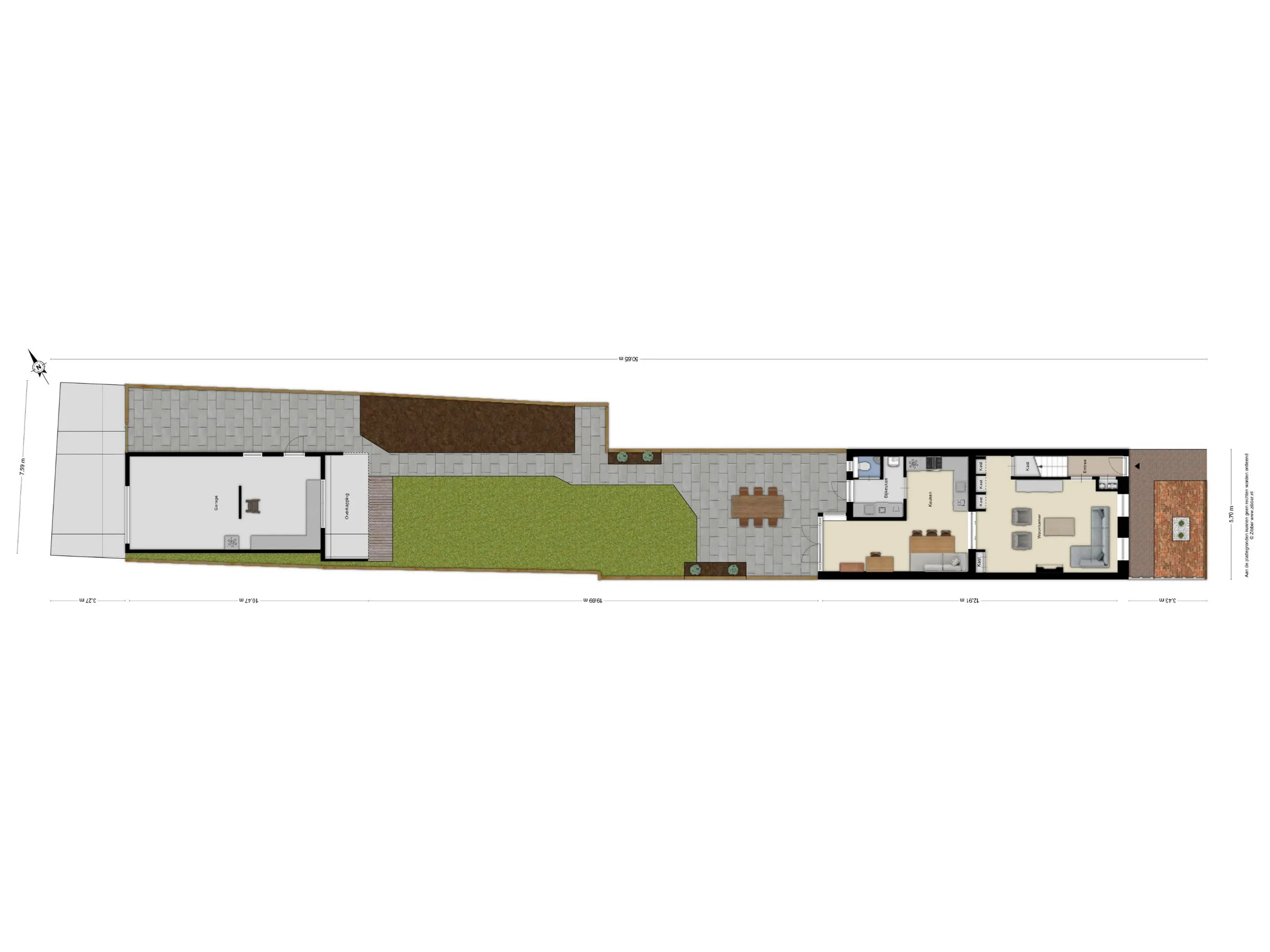 - achtertuin met een oppervlakte van 215 m² en is gelegen op het noordwesten