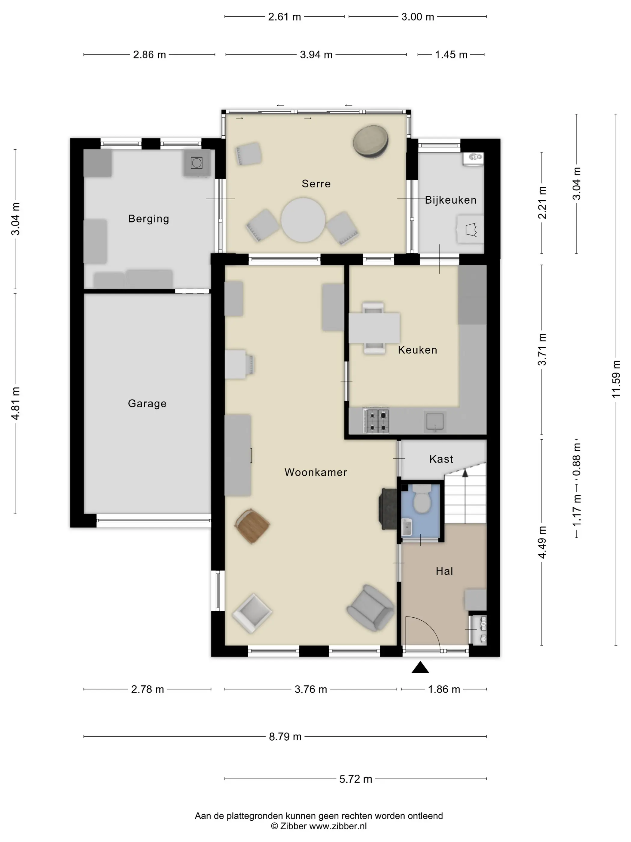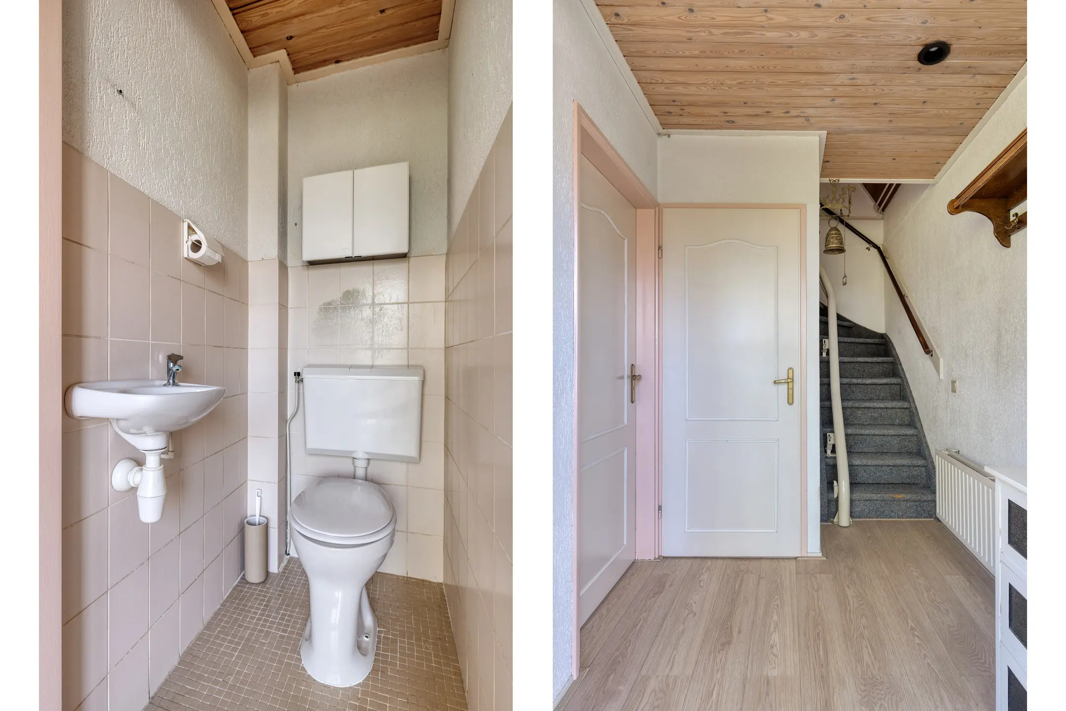 Via de verzorgde aangelegde voortuin komen we bij de voordeur. De hal geeft toegang tot de meterkast, het toilet, de trapopgang naar boven en de woonkamer.