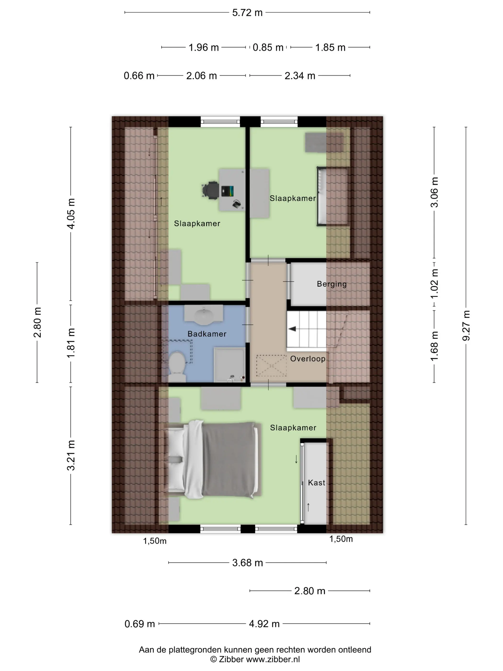 Via de vlizotrap bereik je de bergzolder. Een ideale plek voor het opbergen van spullen die je niet dagelijks nodig hebt. Ook hier is een dakraam aanwezig.