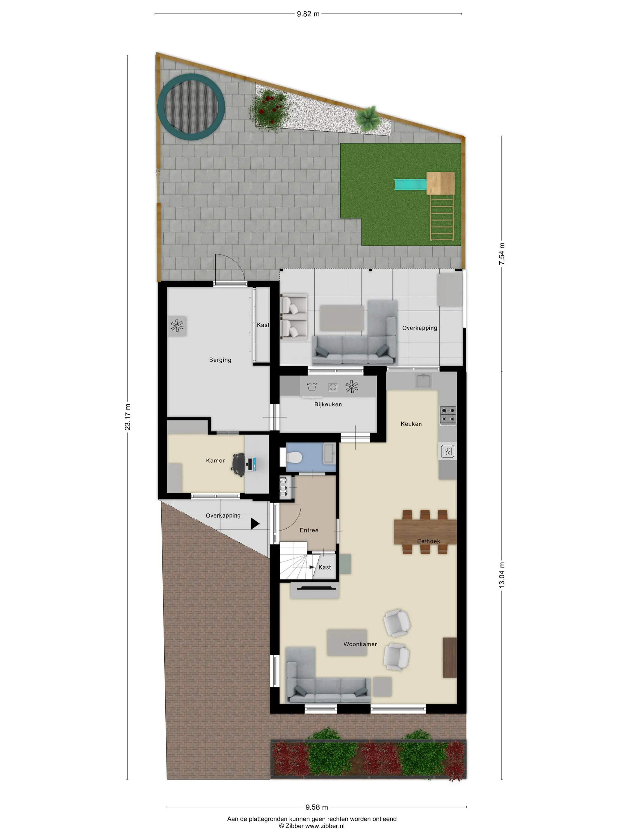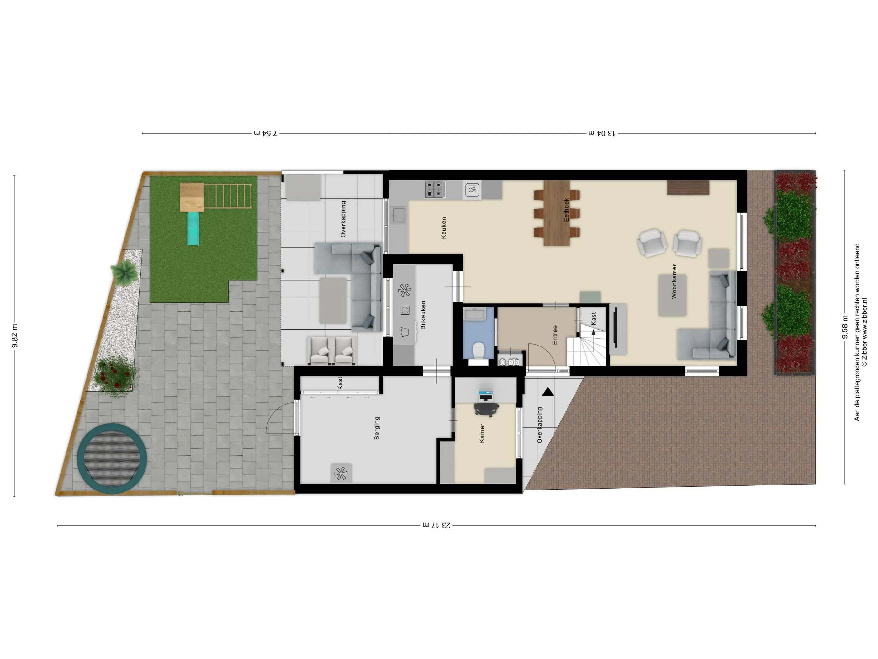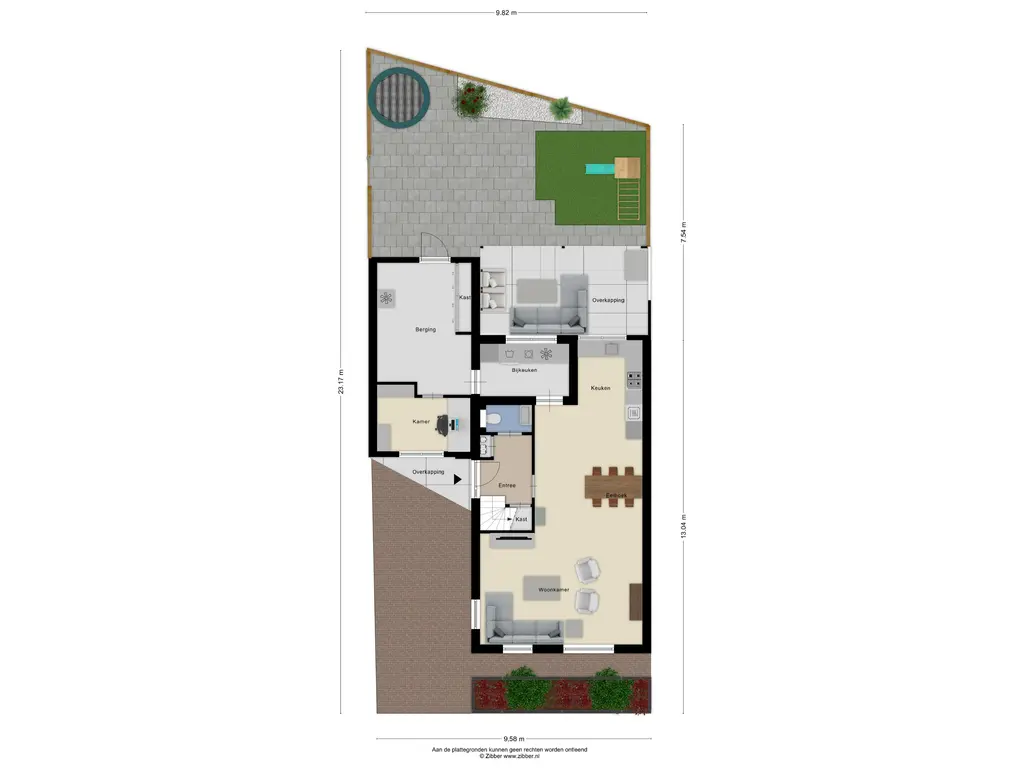 - achtertuin met een oppervlakte van 57 m² en is gelegen op het noordoosten