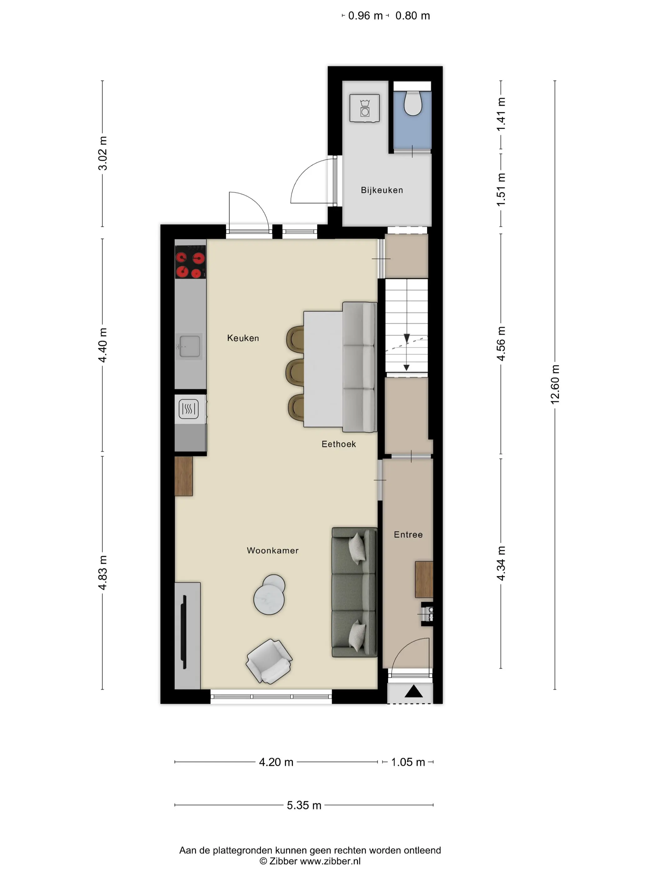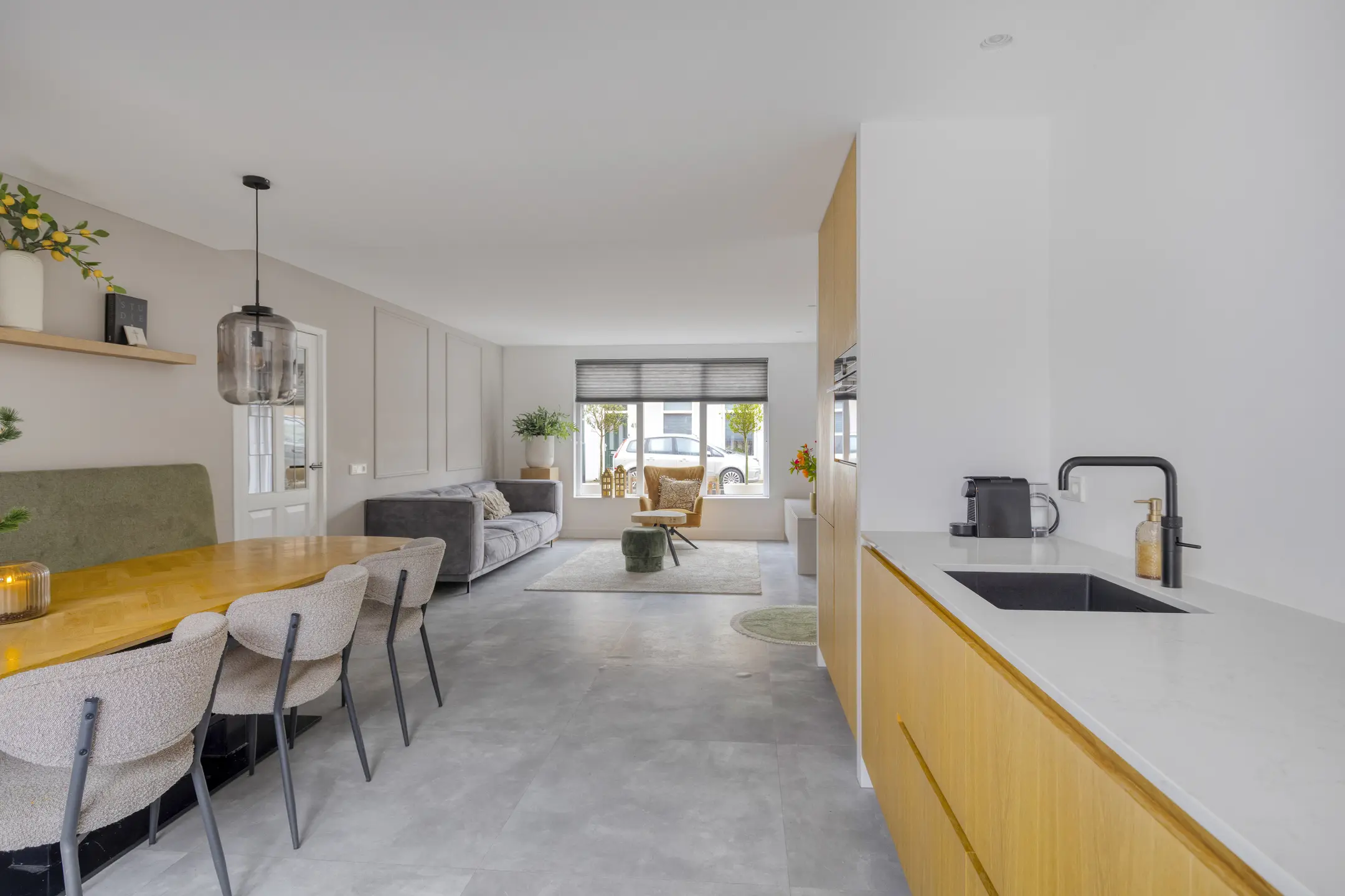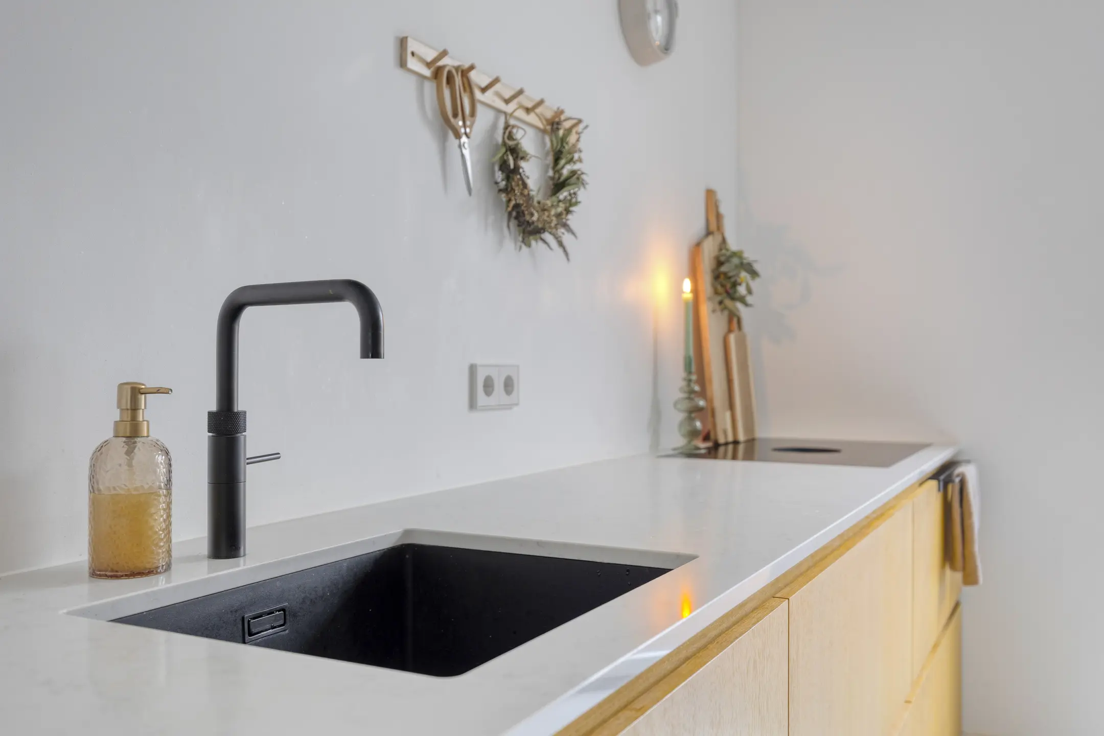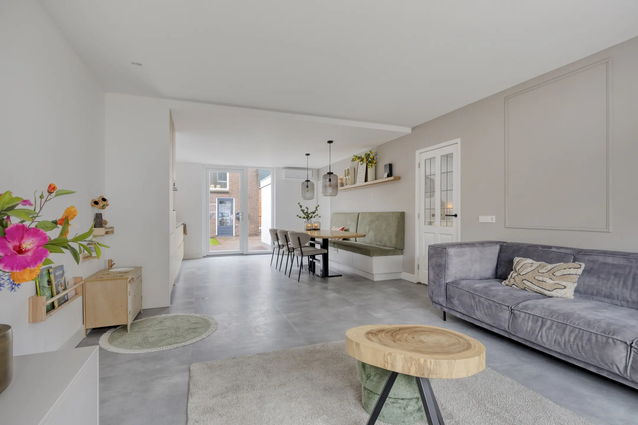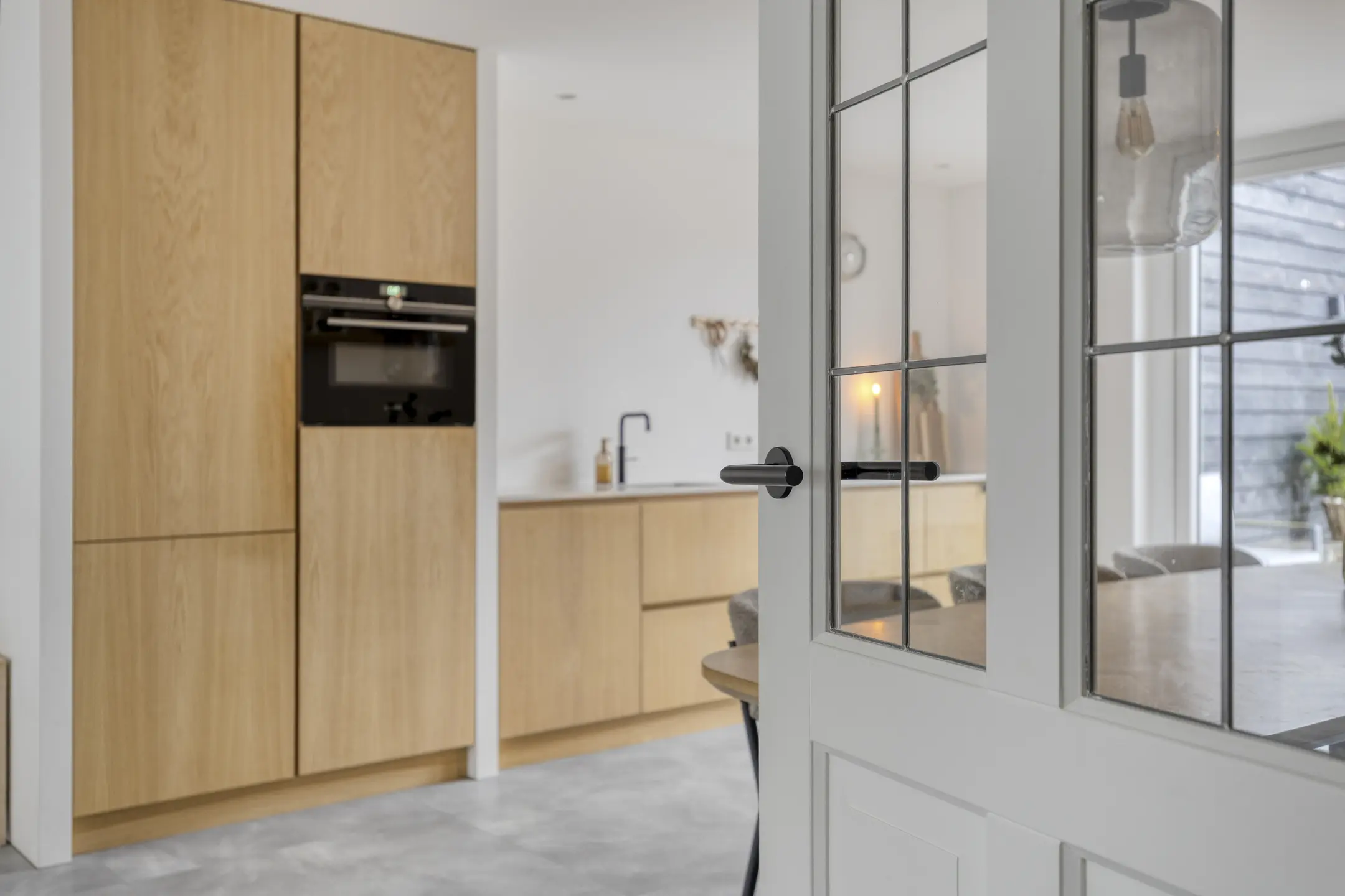 De keuken is in 2024 volledig vernieuwd en dat zie je. Een moderne, rechte opstelling met alles wat je nodig hebt: koelkast, vriezer, combi-oven, vaatwasser (2020), Quooker en een luxe Bora inductiekookplaat met geïntegreerde afzuiging. Via de loopdeur sta je zo in de tuin. De airco uit 2023 zorgt hier het hele jaar door voor een prettig binnenklimaat. Grenzend aan de keuken vind je de praktische bijkeuken en de trap naar boven. Hier is ook het moderne hangtoilet geplaatst, plus ruimte voor de wasmachine en droger. Ook vanuit de bijkeuken kun je direct de tuin in.