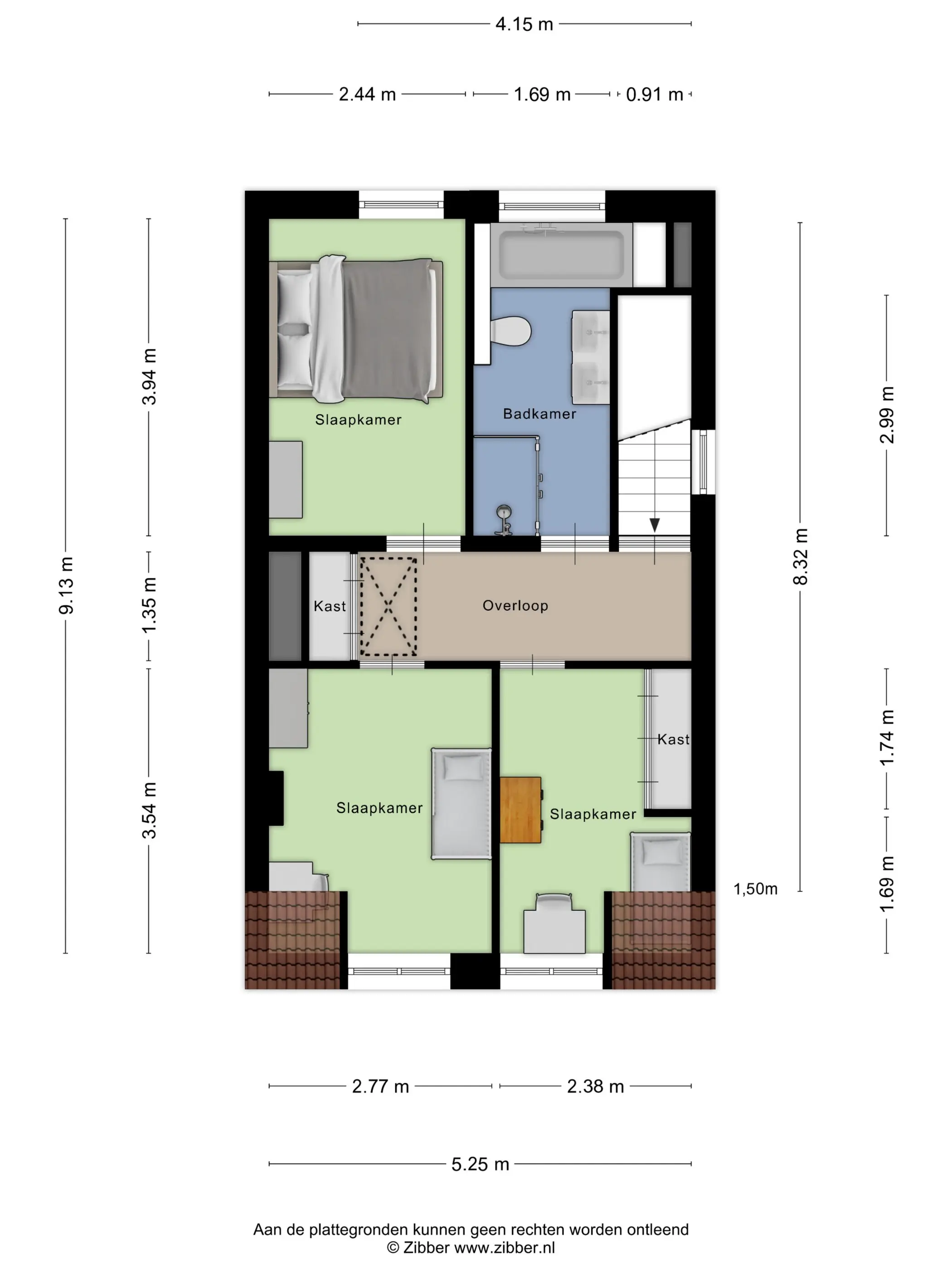Aan de voorzijde bevinden zich nog eens 2 fijne slaapkamers. Dankzij de dakkapel hebben beide kamers een prettig formaat en veel licht. De elektrisch bedienbare rolluiken zorgen voor volledige verduistering en met de elektrische verwarming is het hier altijd comfortabel.