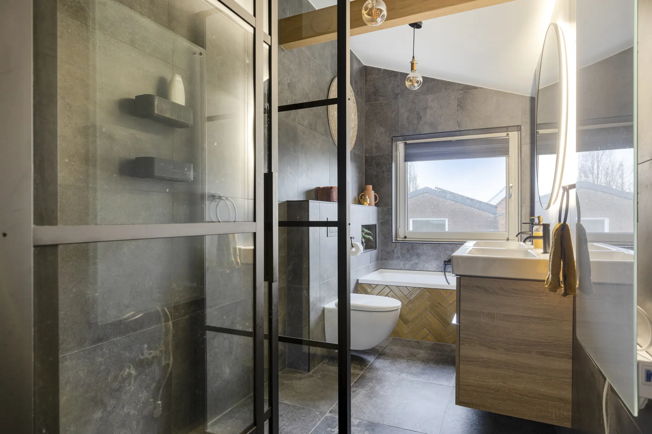De badkamer (2022) is een echte eyecatcher: modern, ruim en compleet uitgerust. Denk aan een luxe inloop regendouche, een heerlijk ligbad, een hangtoilet en een dubbele wastafel met stijlvol meubel. Het grote raam met kunststof kozijn zorgt voor een fijne lichtinval. Verder is er nog mechanische ventilatie.