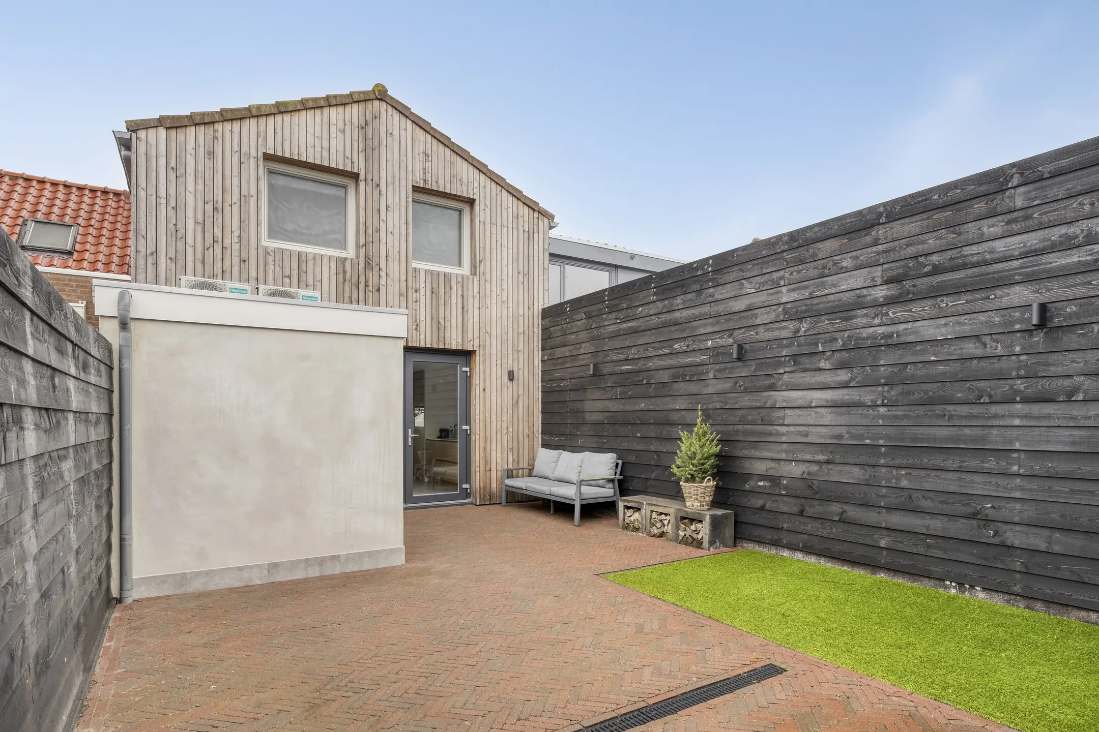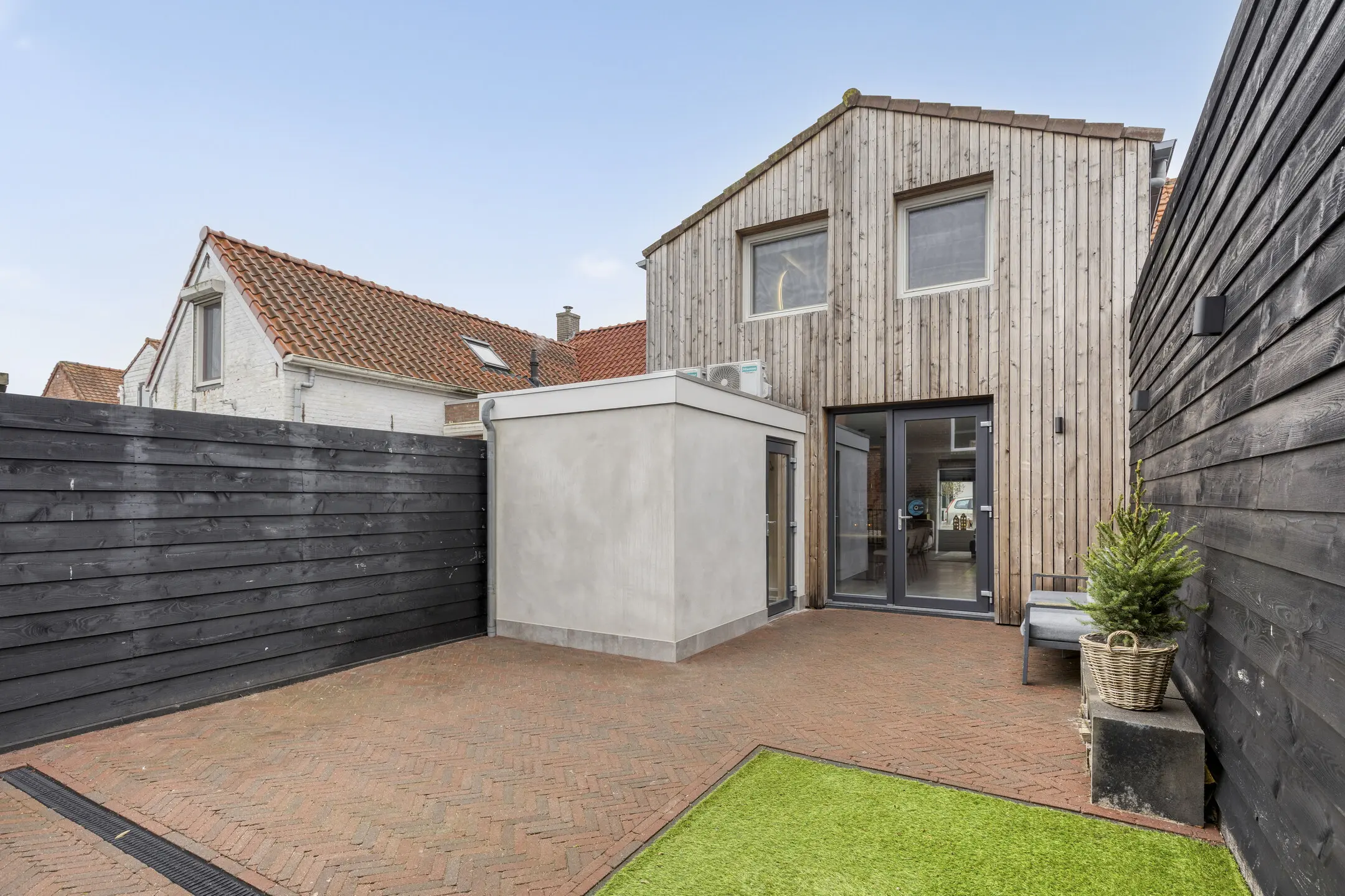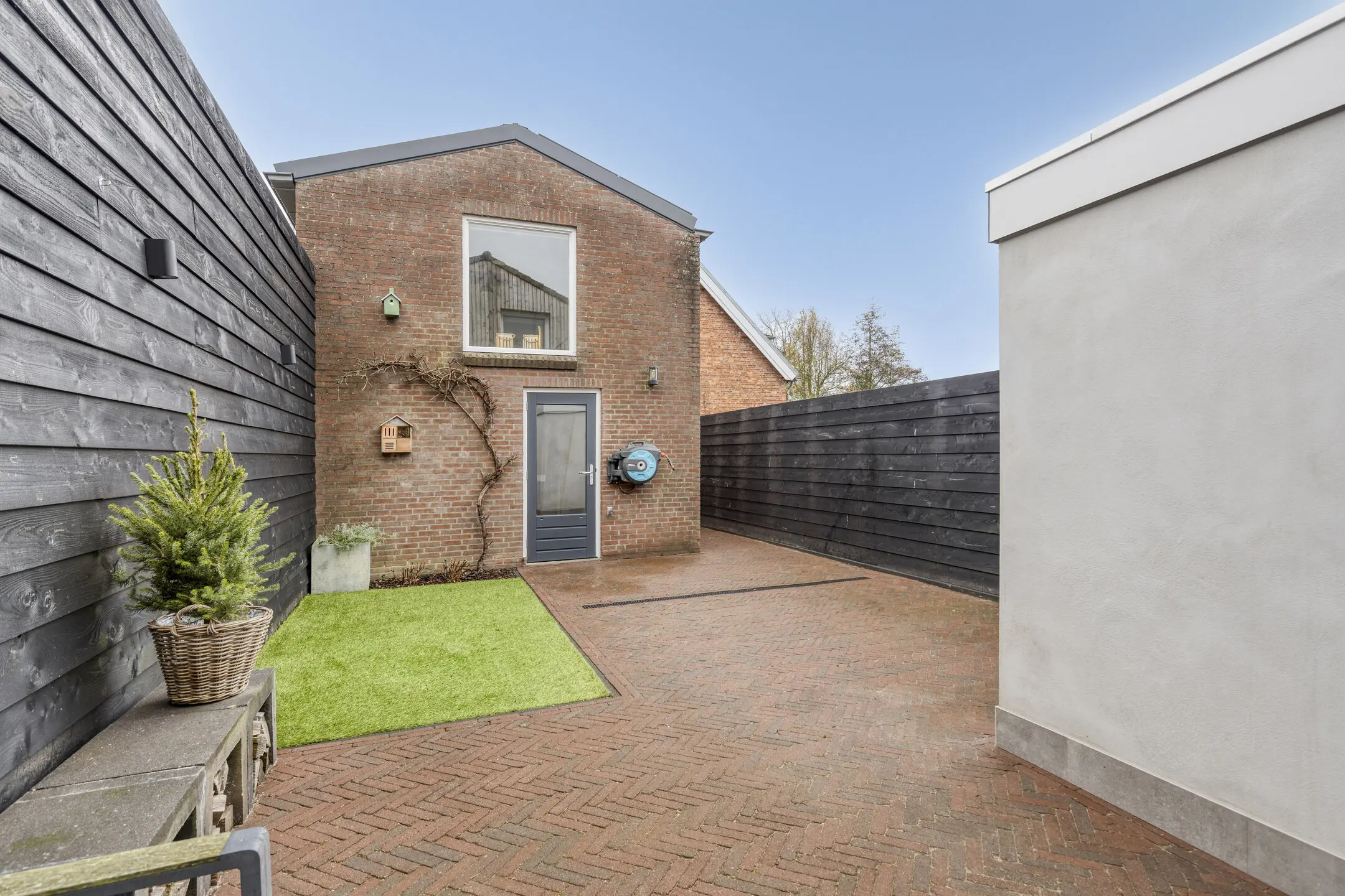 De achtertuin is onderhoudsvriendelijk aangelegd met fraaie sierbestrating en kunstgras, waardoor je vooral kunt genieten in plaats van tuinieren. Dankzij de ligging op het Zuidoosten heb je hier lekker veel zon. Extra praktisch: de tuin heeft een vrije achterom die uitkomt op de oprit.