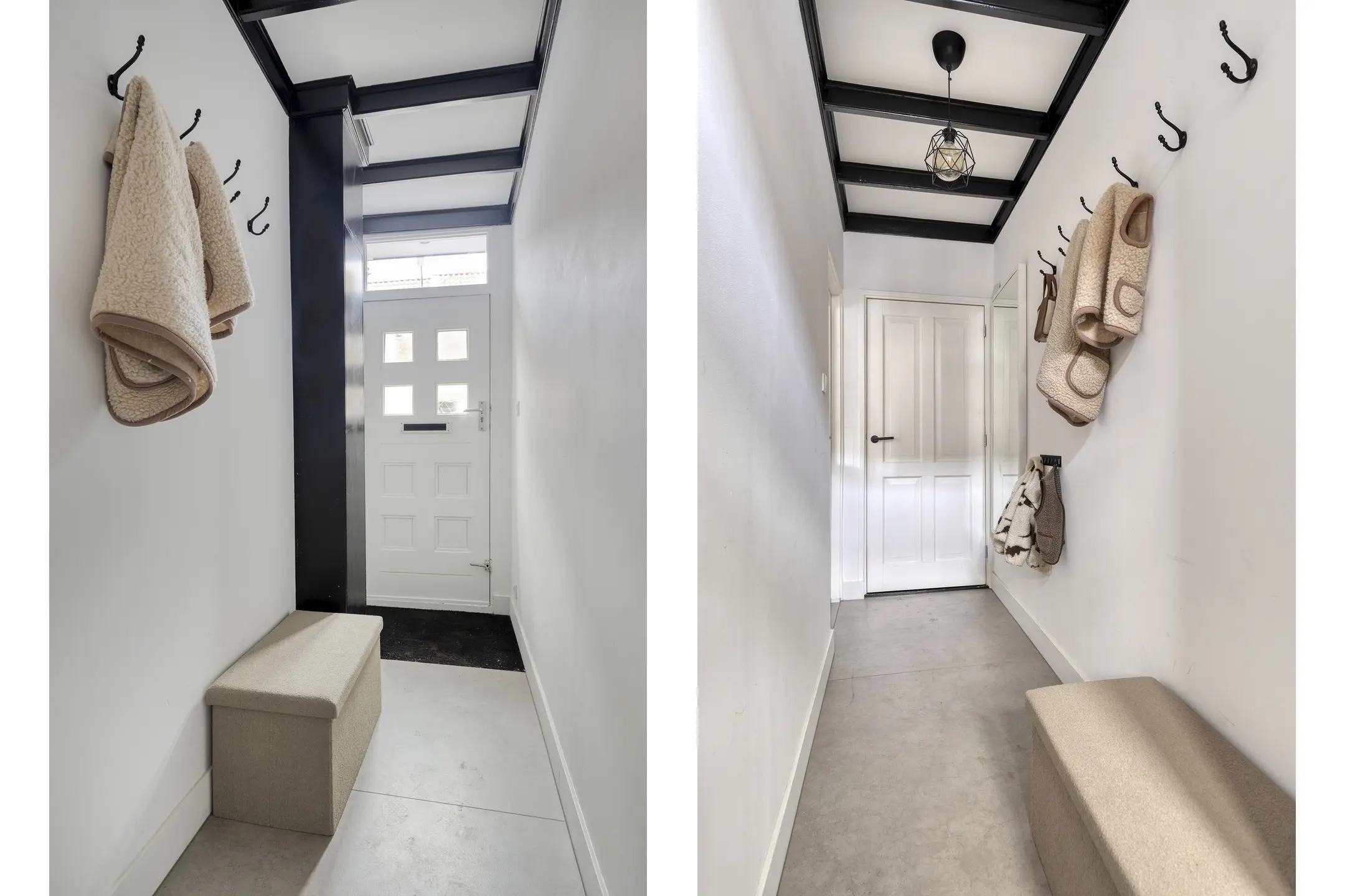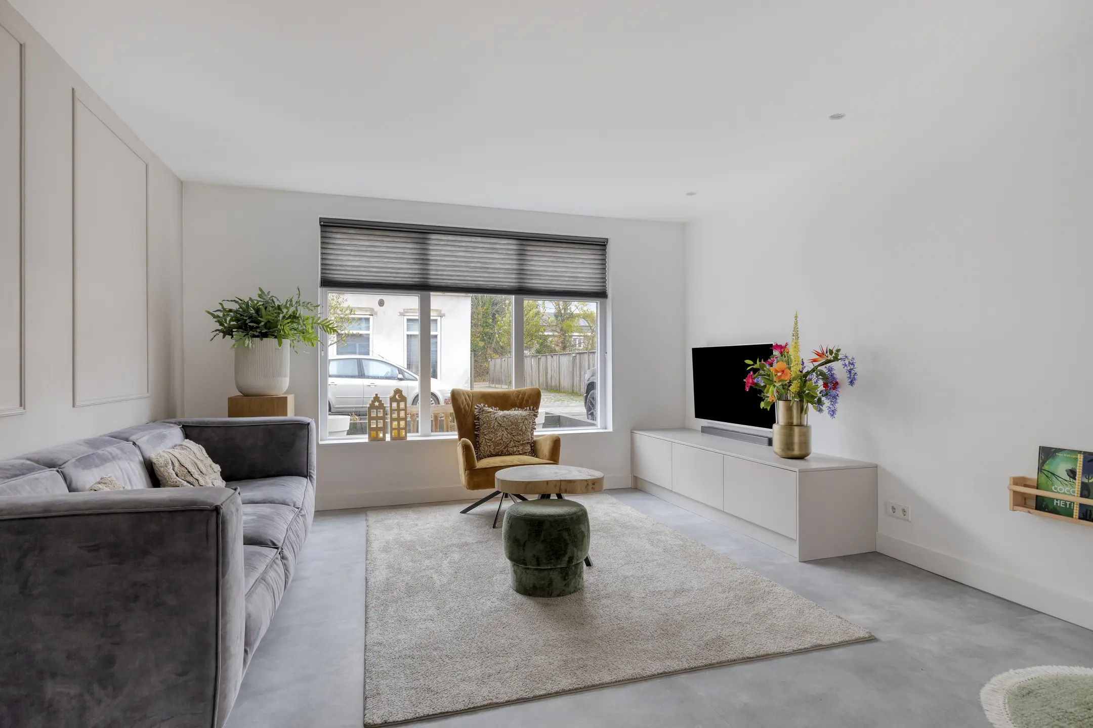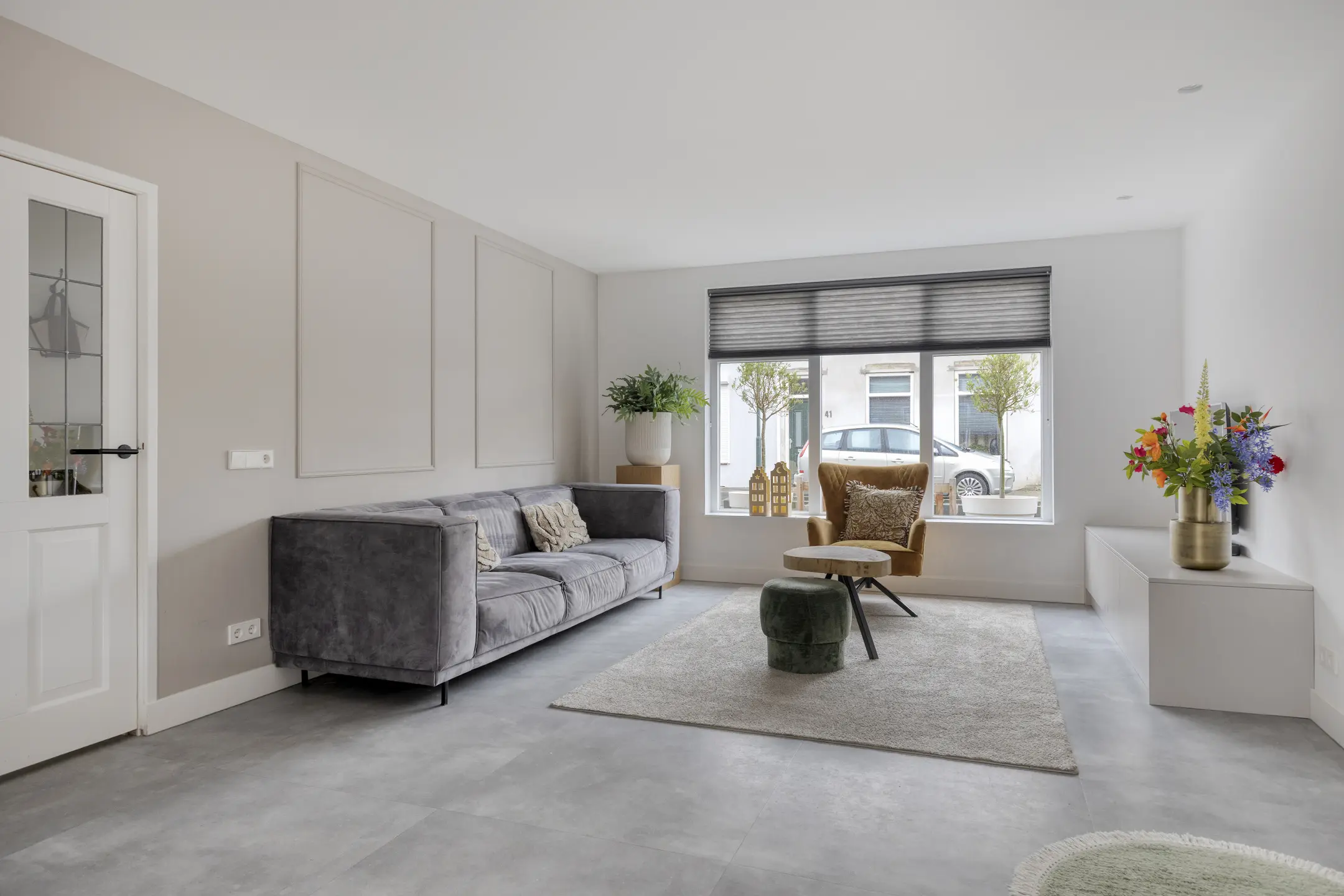 Via de onderhoudsvriendelijke voortuin stap je binnen in een woning die direct een verzorgde indruk maakt. In de hal vallen meteen de strakke wanden, de moderne plavuizen vloer en de authentieke sierbalken op. Vanuit de hal heb je toegang tot de kelder en tot de woonkamer. De woonkamer is een fijne plek om thuis te komen: strak afgewerkt, sfeervol en ingedeeld met aan de voorzijde een royale zithoek met vast tv-meubel. Aan de achterzijde is volop ruimte voor een gezellige eethoek bij de keuken.