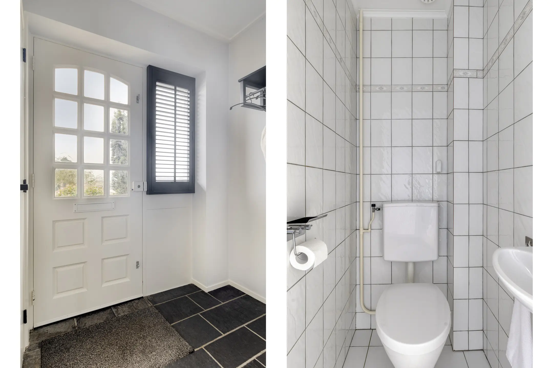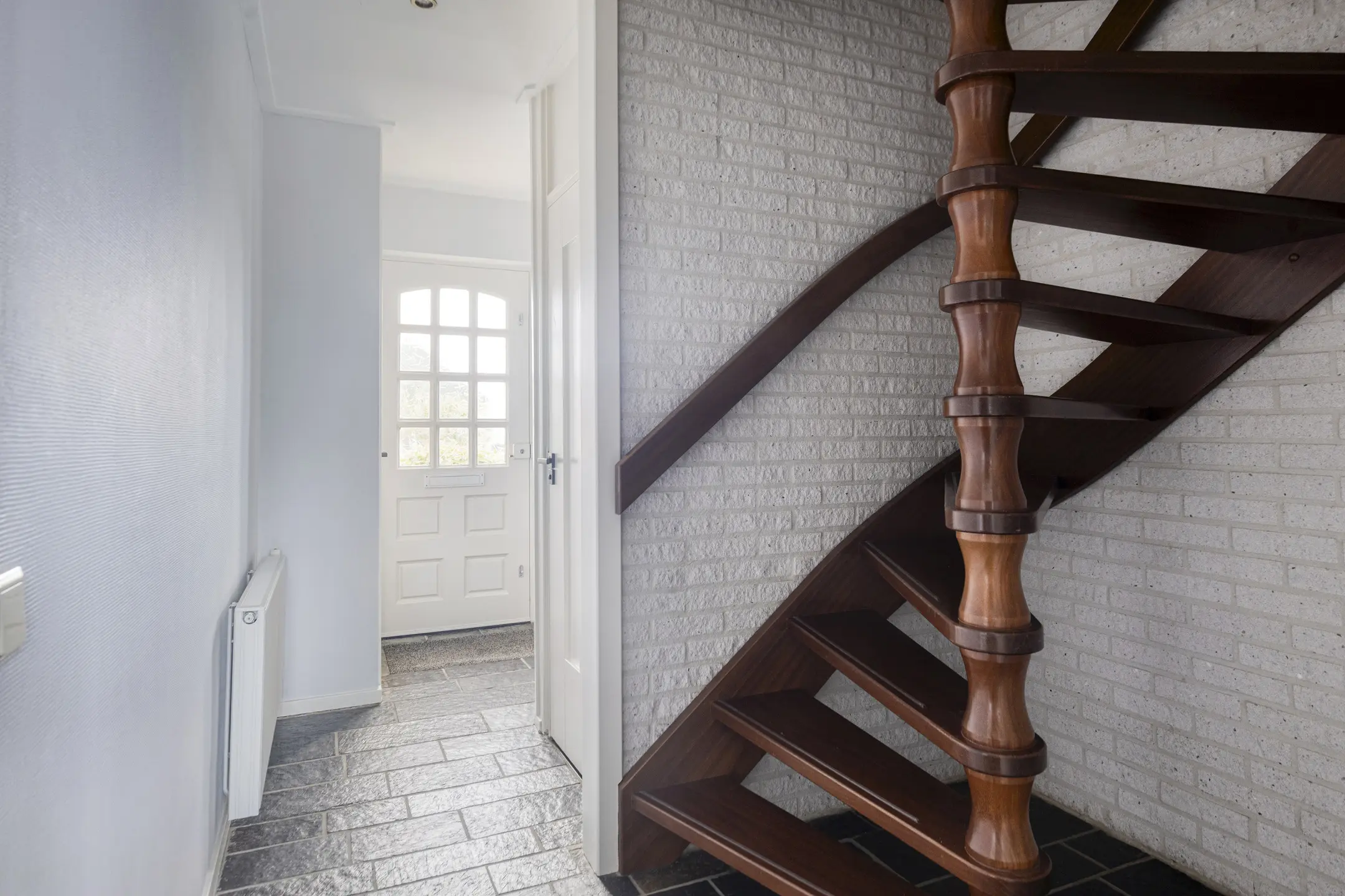 Via de entree stap je binnen in de hal met meterkast, toilet met fonteintje, trapopgang naar de eerste verdieping en toegang tot de woonkamer.