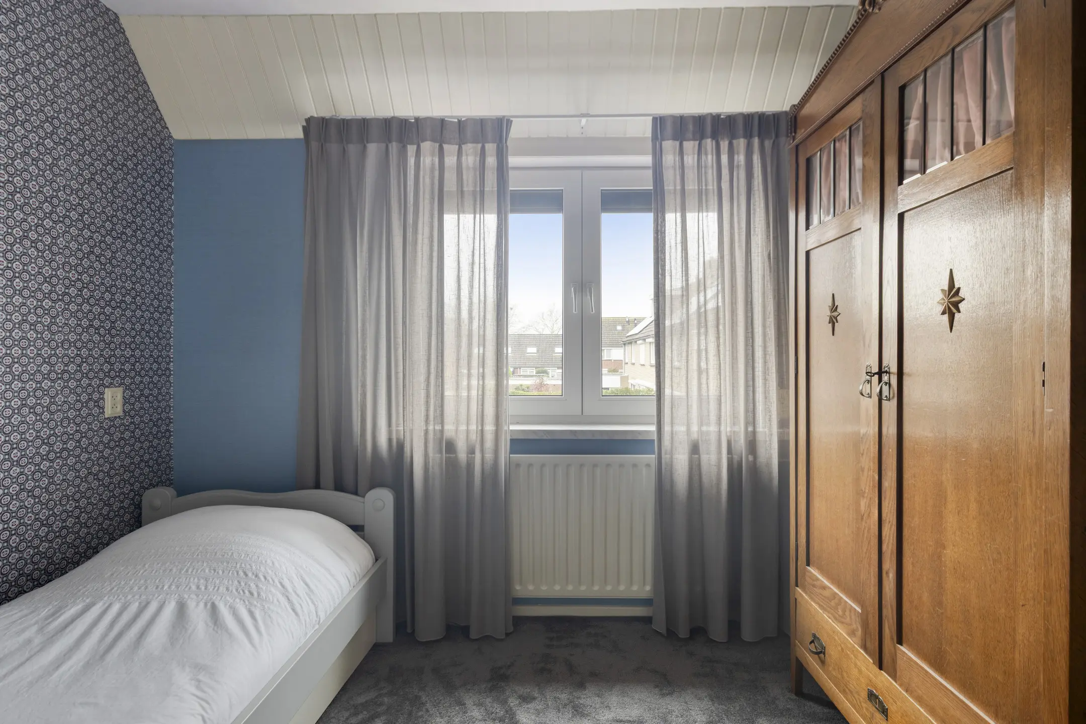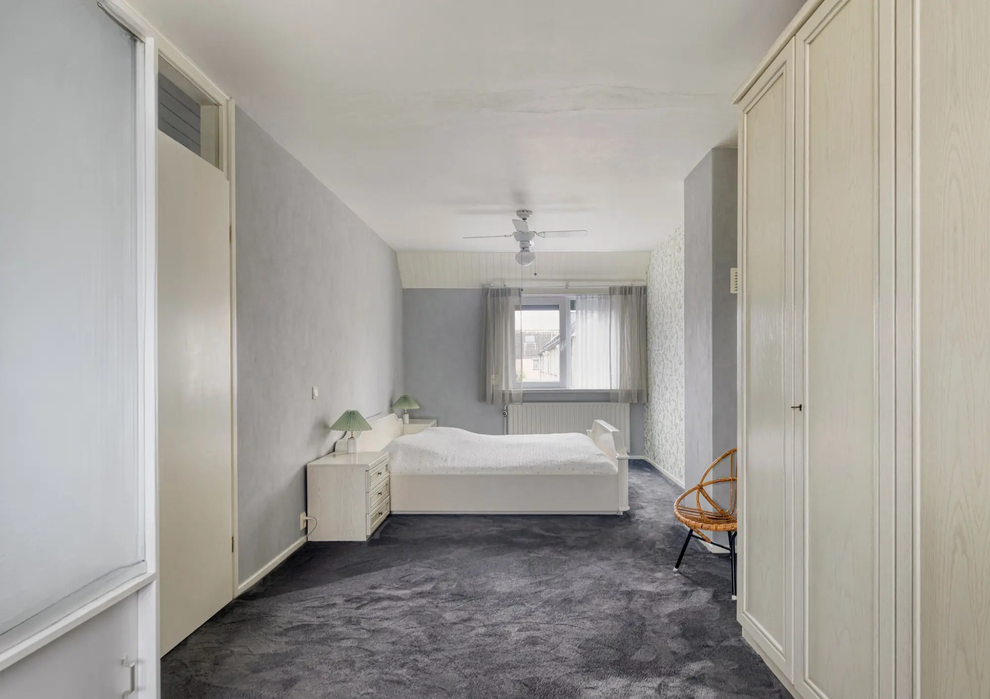 De tweede slaapkamer is eveneens lekker licht en praktisch van formaat. De vaste schuifdeurenkast zorgt voor veel bergruimte. Beide slaapkamers zijn bovendien voorzien van rolluiken.