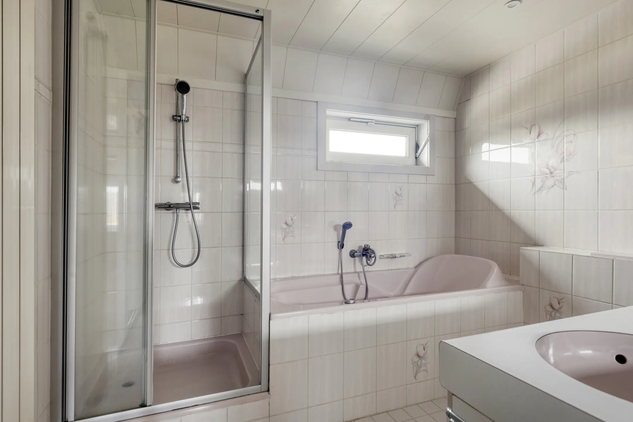 De badkamer bevindt zich aan de voorzijde van de woning en is compleet uitgevoerd. Je vindt hier een toilet, douchecabine, een ligbad, een dubbele wastafel met badmeubel en een design radiator. Het raam zorgt voor natuurlijke ventilatie én prettig daglicht.