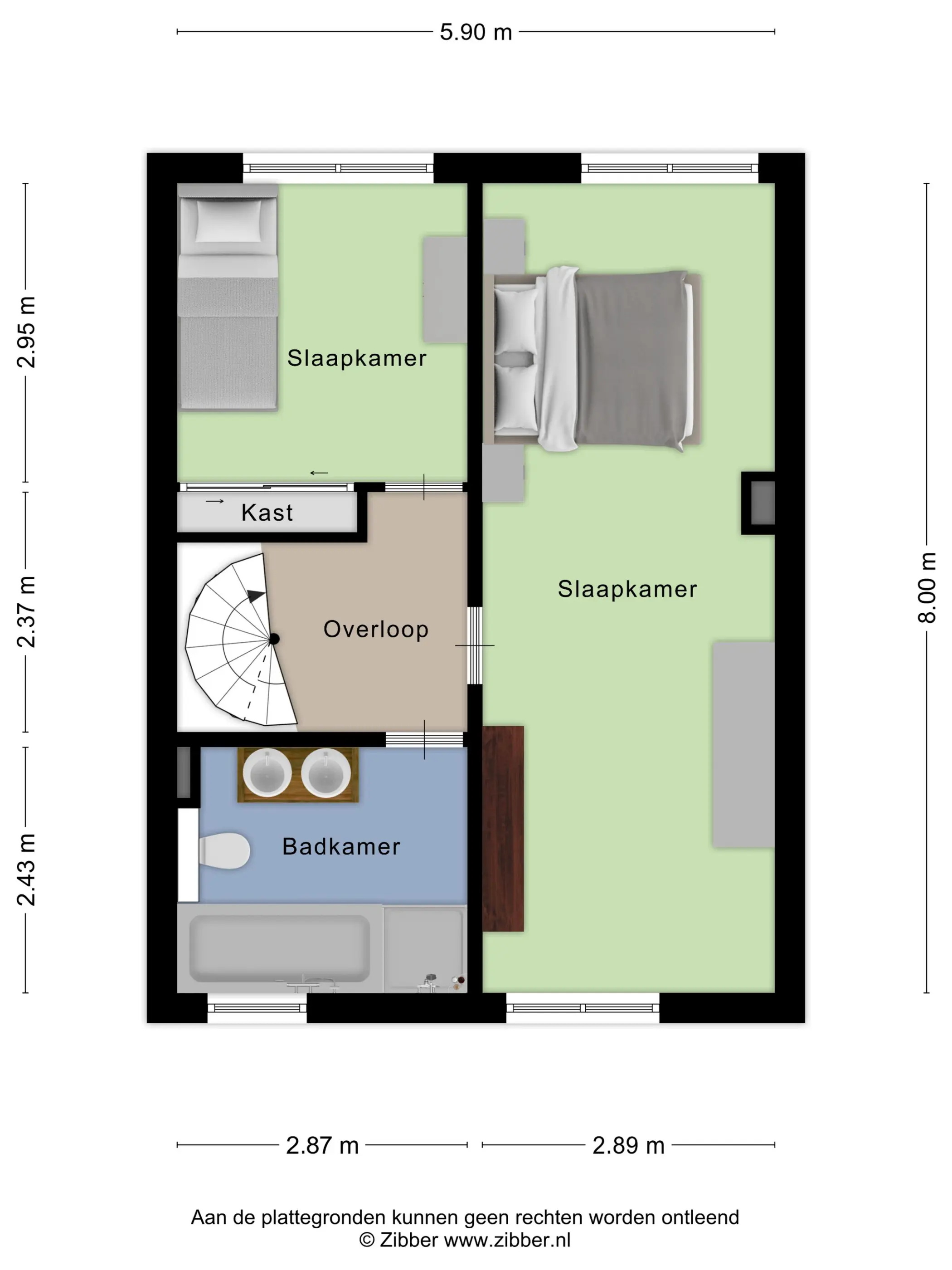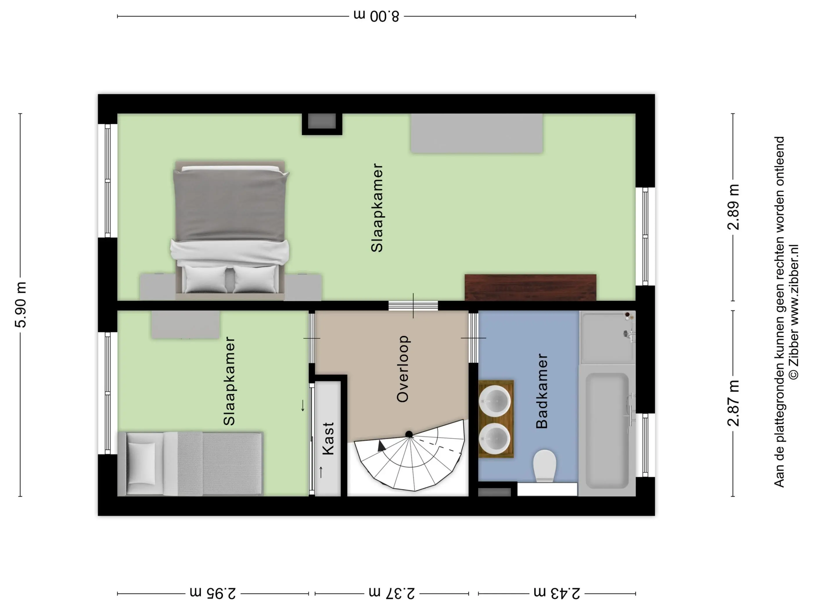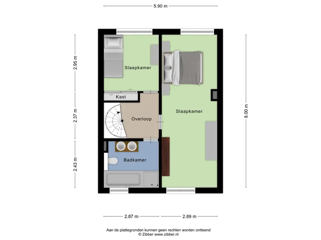 Op de ruime overloop vind je toegang tot twee slaapkamers en de badkamer. De hoofdslaapkamer is een verrassing: deze loopt van de voor- tot aan de achterzijde van de woning en is daardoor bijzonder ruim. Dankzij de ramen aan beide zijden geniet je hier van veel lichtinval. Dit is een echte master bedroom met volop plek. Extra praktisch: de kamer is indien gewenst eenvoudig op te splitsen in twee slaapkamers; ideaal voor wie een extra kinder-, werk- of hobbykamer nodig heeft.