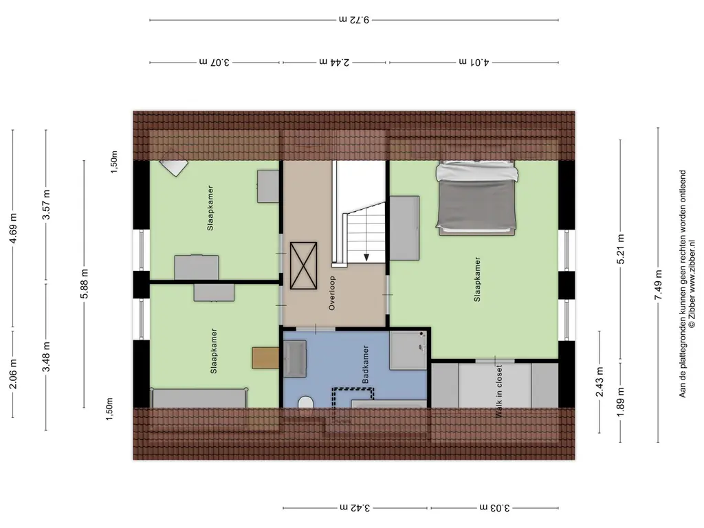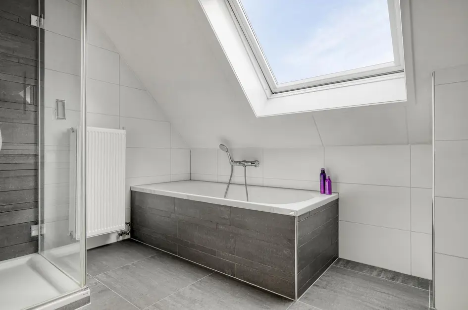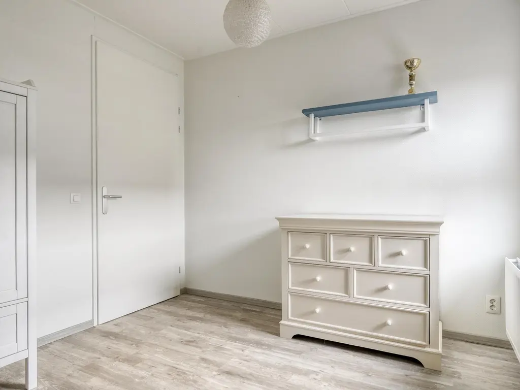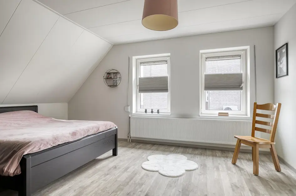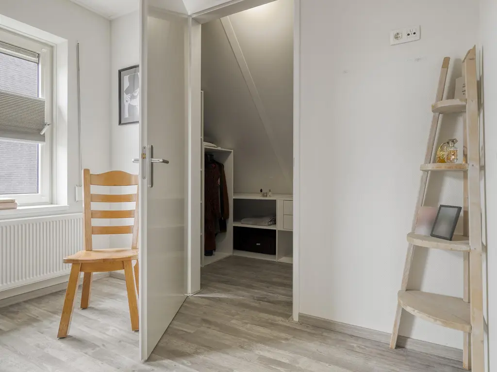 Via de overloop heb je toegang tot drie royale slaapkamers. Eén van de slaapkamers is voorzien van een ruime inloopkast. De moderne badkamer is compleet uitgerust met een ligbad, aparte douchecabine, tweede hangtoilet, wastafelmeubel en een Velux dakraam voor extra lichtinval.