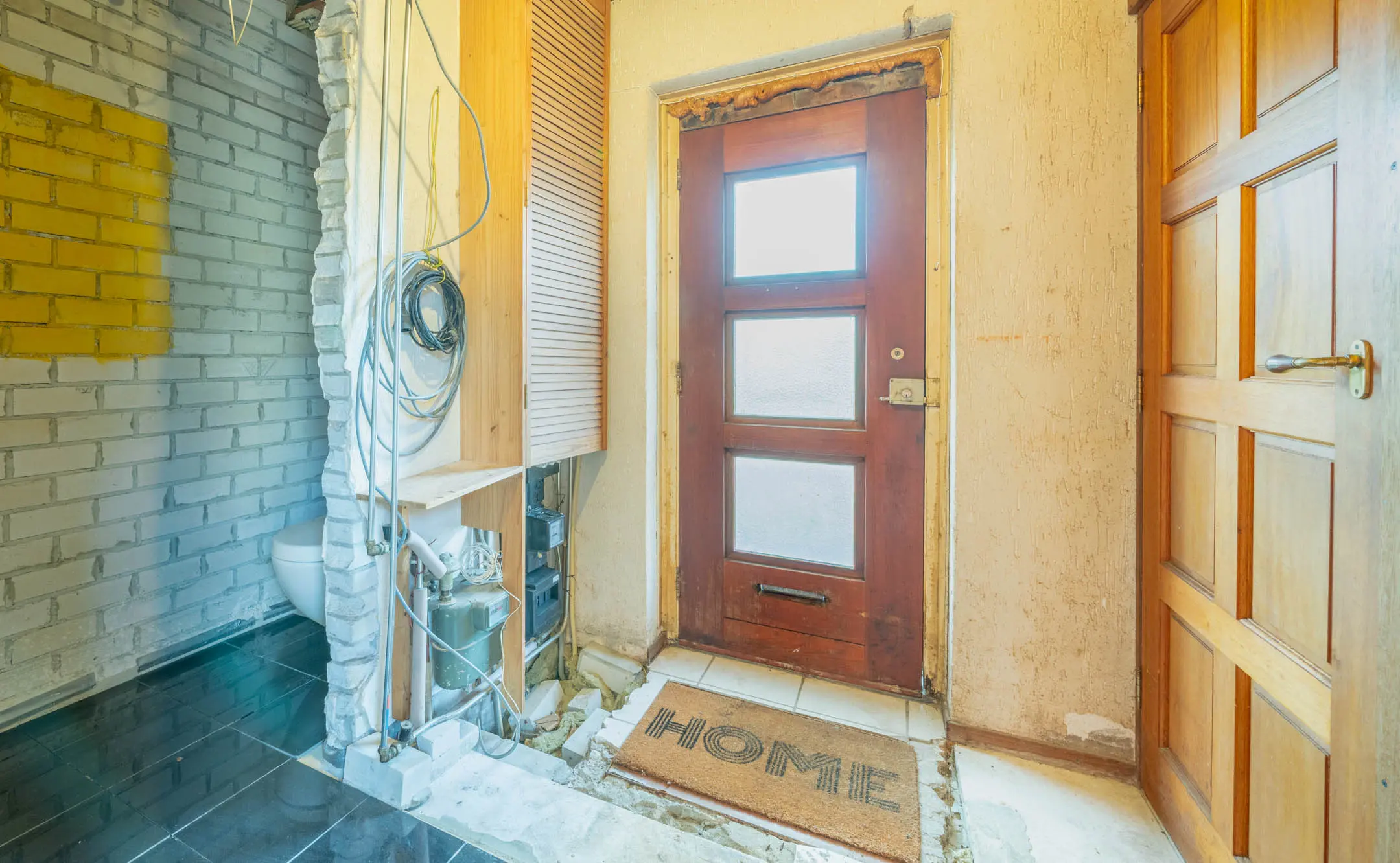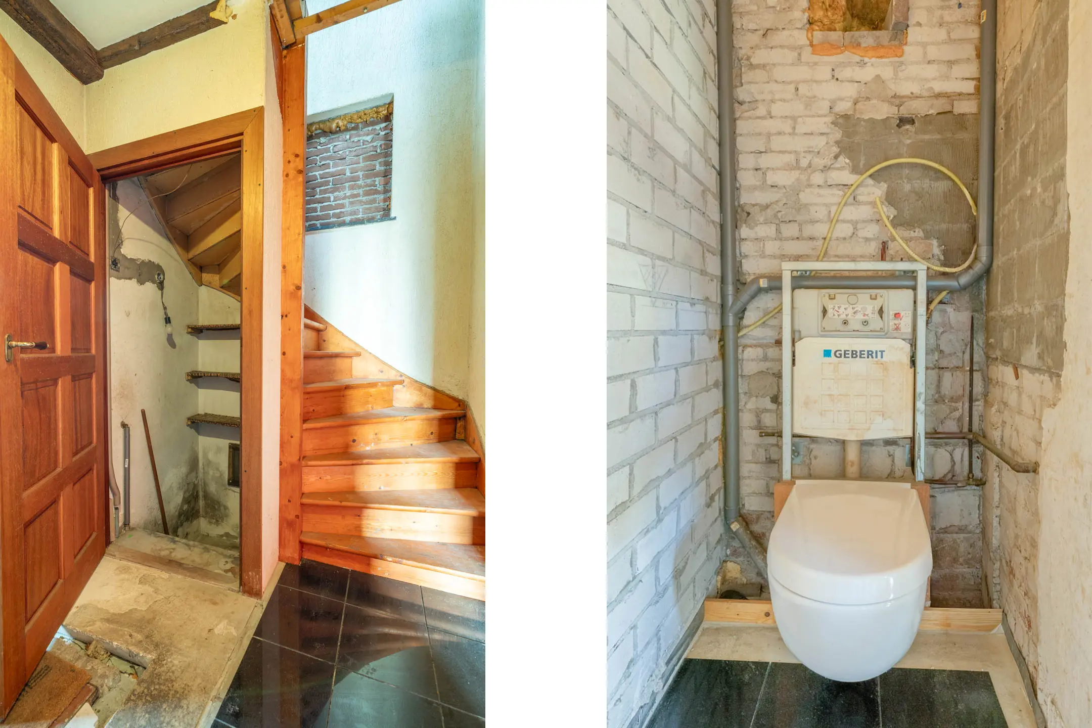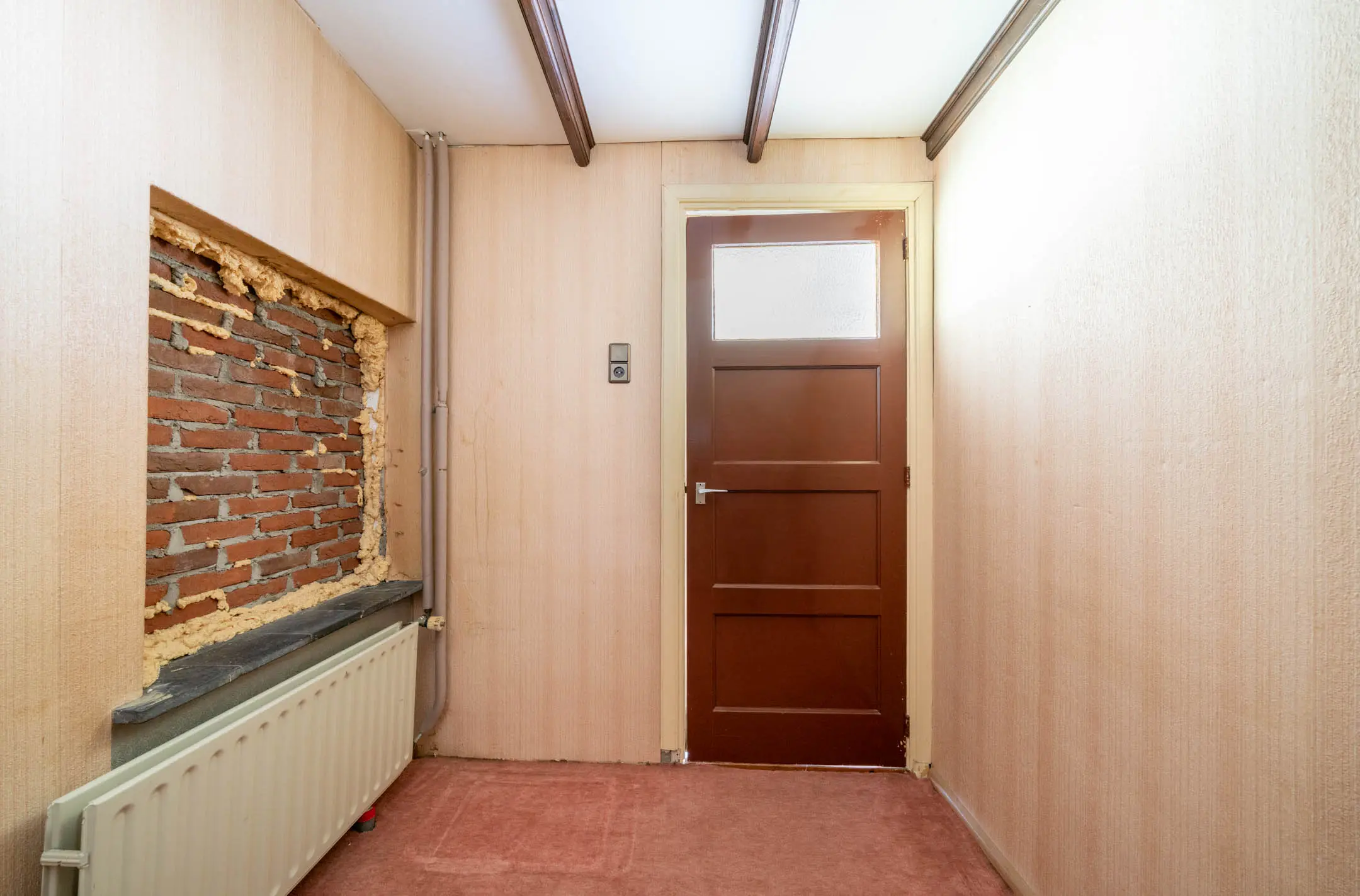 Via de zijkant van de woning stap je binnen in een ruime hal met de meterkast en omvormer voor de zonnepanelen, het toilet, de trap naar boven met daaronder een handige trapkast en de doorgang naar de woonkamer.