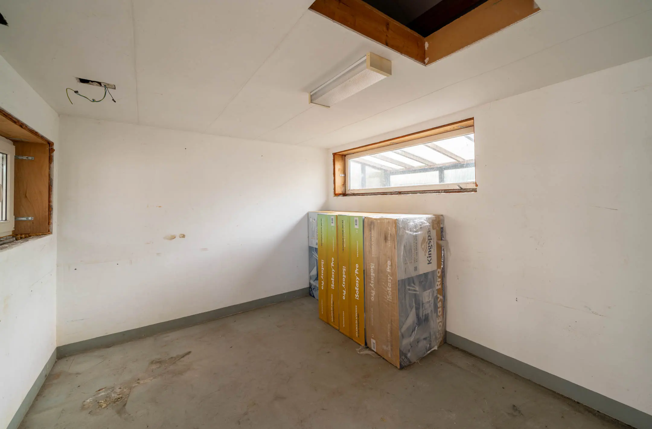 Via een vlizotrap op de overloop is de bergzolder bereikbaar. Deze strekt zich uit over de volledige breedte van de woning en biedt volop bergruimte. Hier bevindt zich ook de CV-ketel (2012).