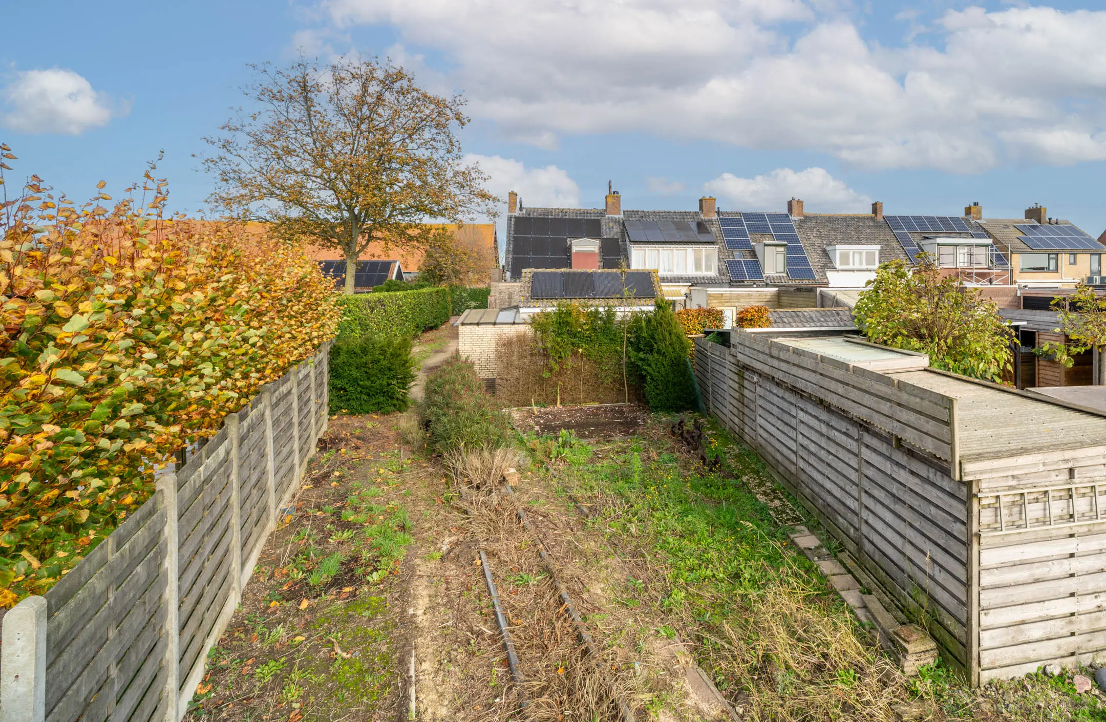 De achtertuin is gunstig gelegen op het Zuidwesten en grotendeels voorzien van sierbestrating. Achterin de tuin staat een mooie vrijstaande stenen berging met een leuke overstek aan de voorzijde. De berging is voorzien van kunststof kozijnen, muur- en dakisolatie, elektra en verwarming. Bovendien is er een praktische steekzolder aanwezig voor extra opbergruimte. Dankzij de vrije achterom is de tuin goed bereikbaar.