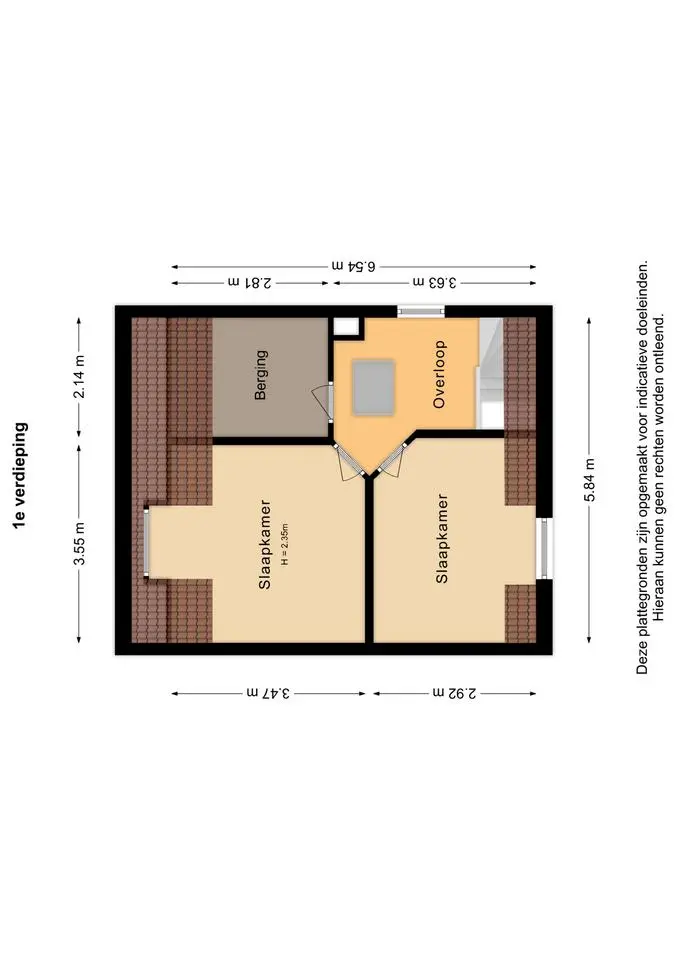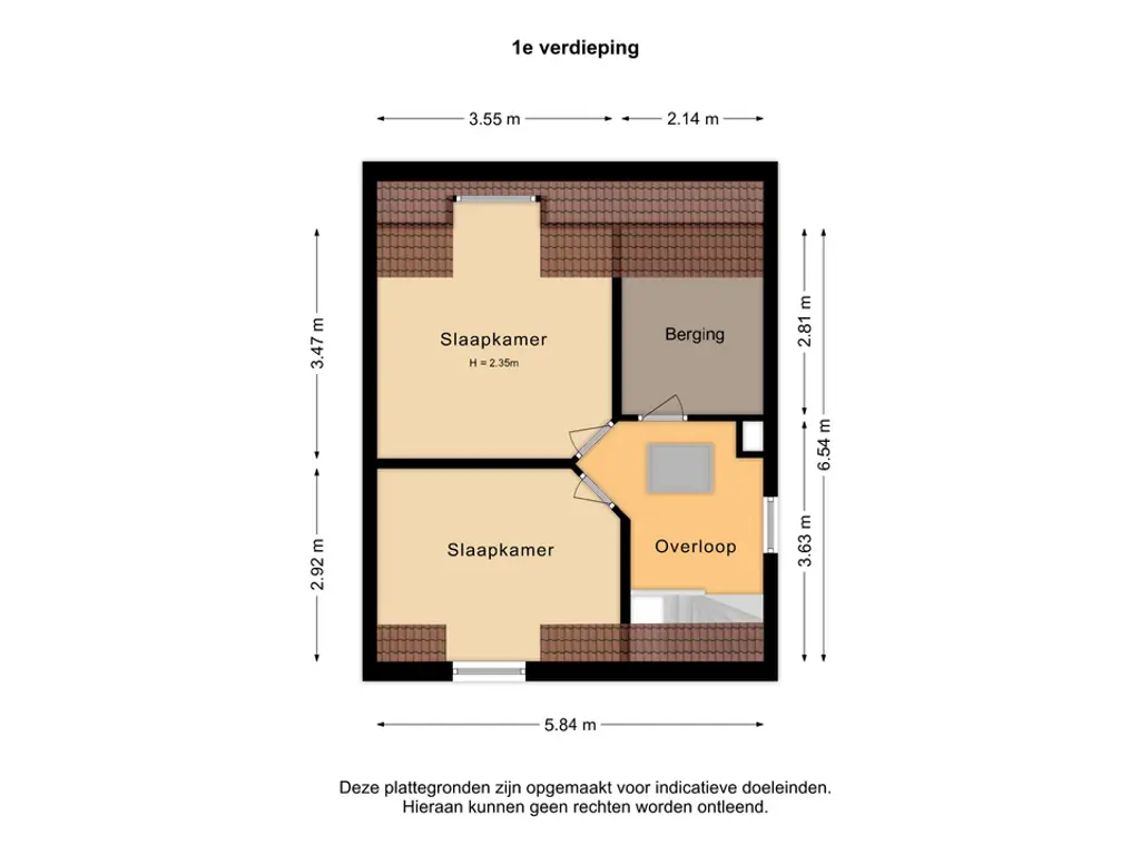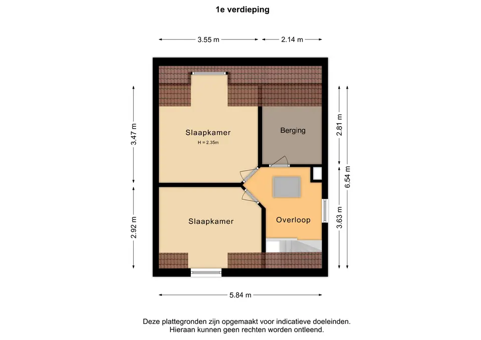 De ruime overloop geeft toegang tot drie kamers. Alle kamers bieden mogelijkheden om naar eigen wens in te richten of te verbouwen. Desgewenst kan uiteraard in één van de kamers een badkamer worden gerealiseerd.