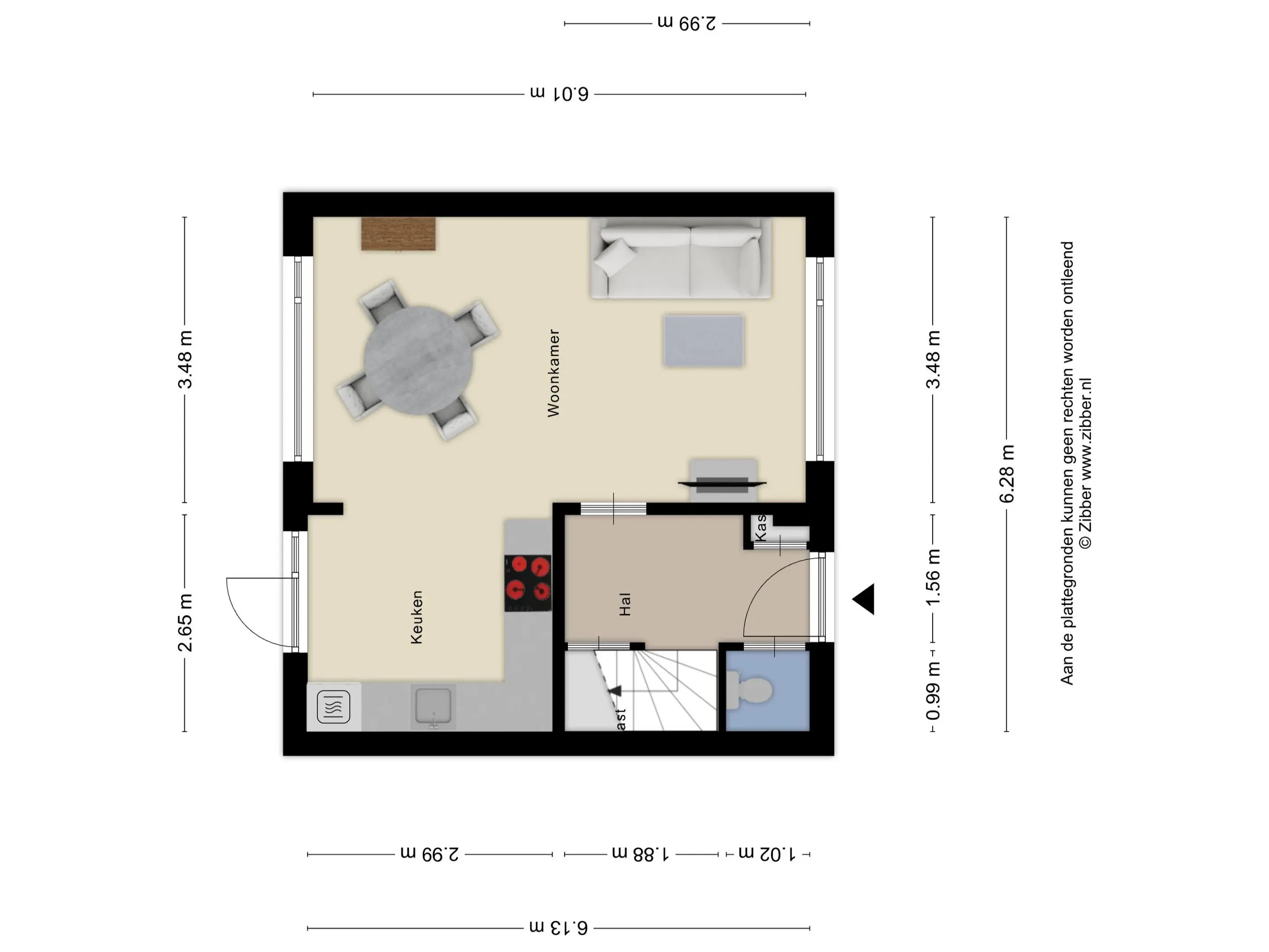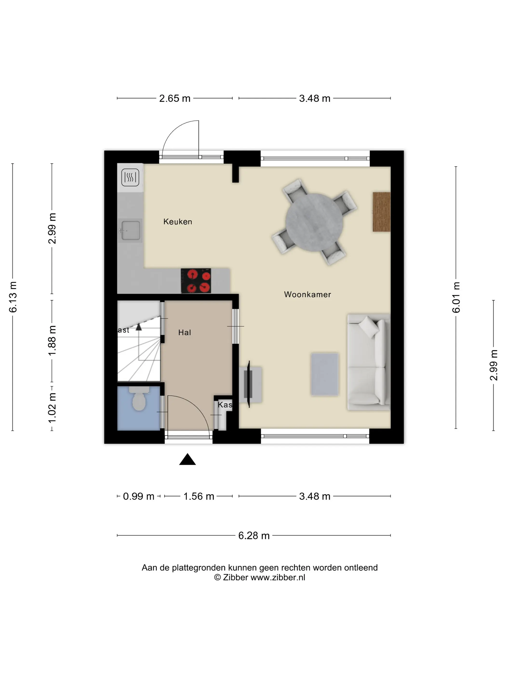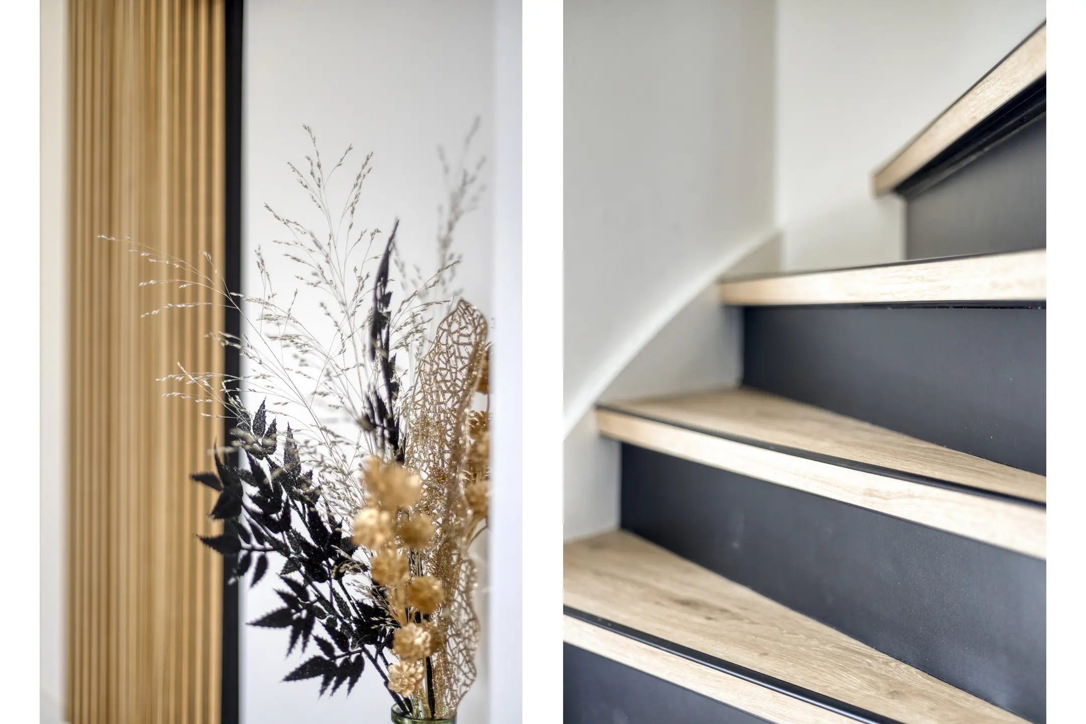 Via de nette voortuin kom je binnen in de hal, waar direct de verzorgde afwerking opvalt. De pvc visgraatvloer zorgt voor een warme en moderne uitstraling. In de hal vind je de vernieuwde meterkast, het toilet, een praktische trapkast en de trap naar boven, die recent een mooie make-over heeft gehad.