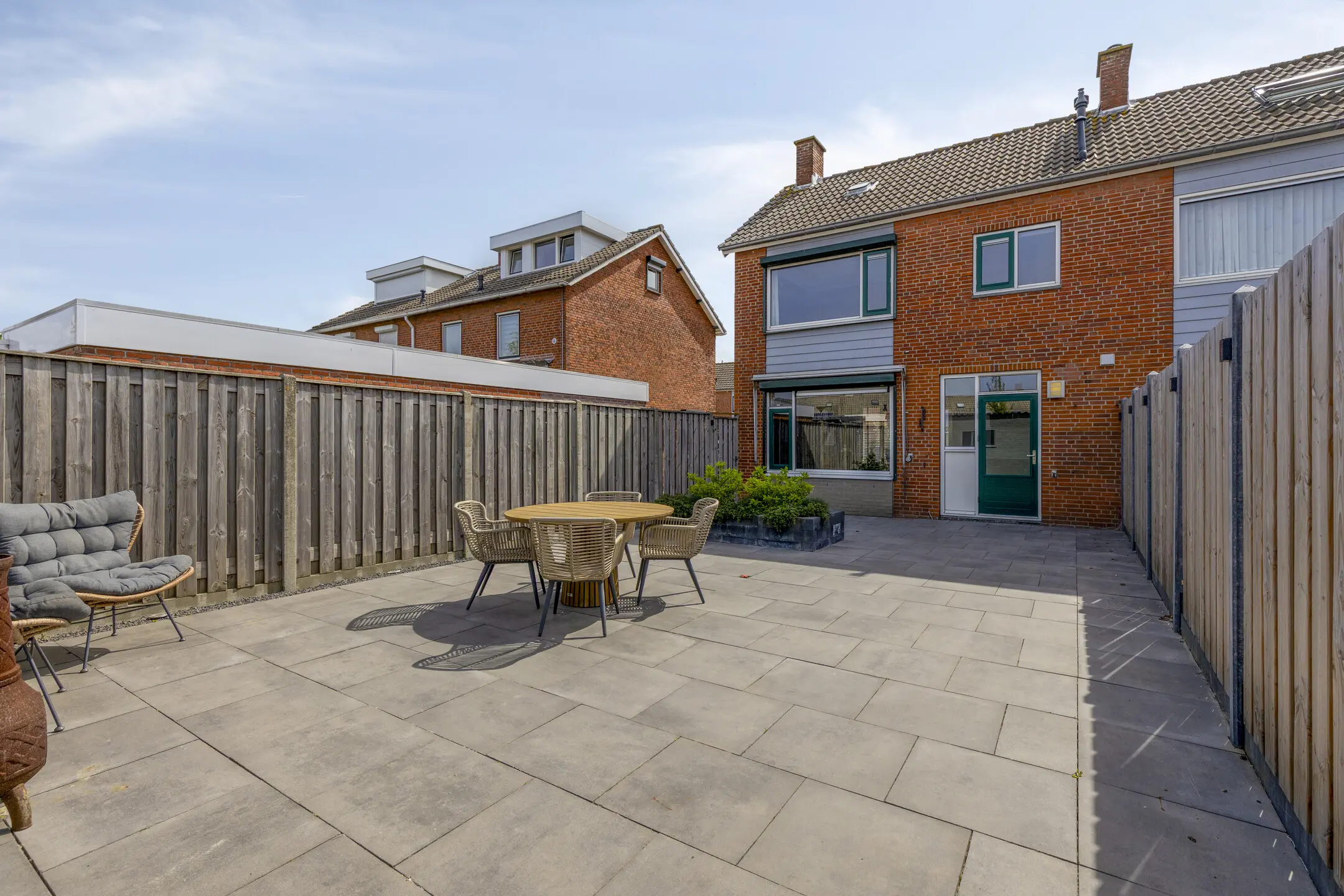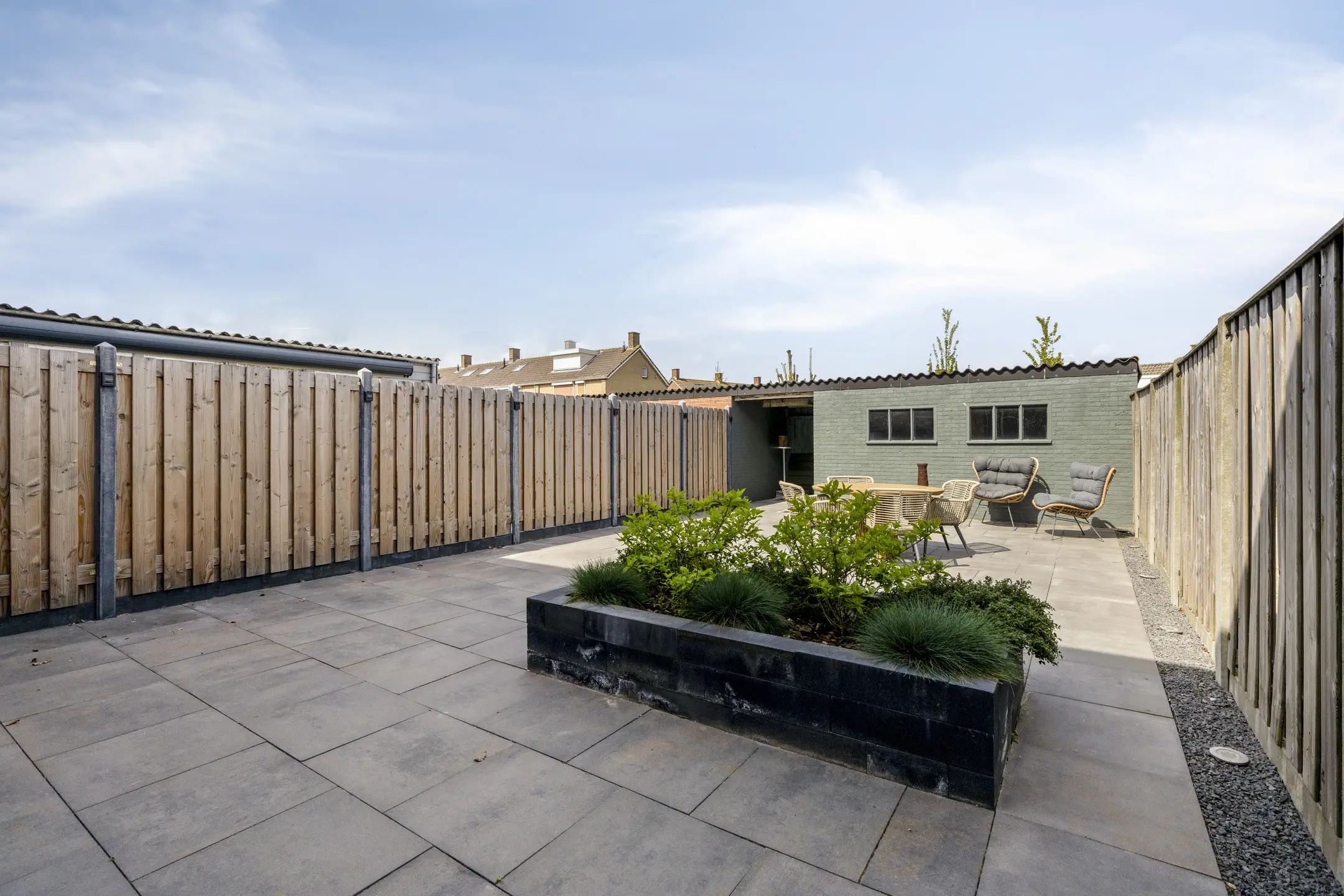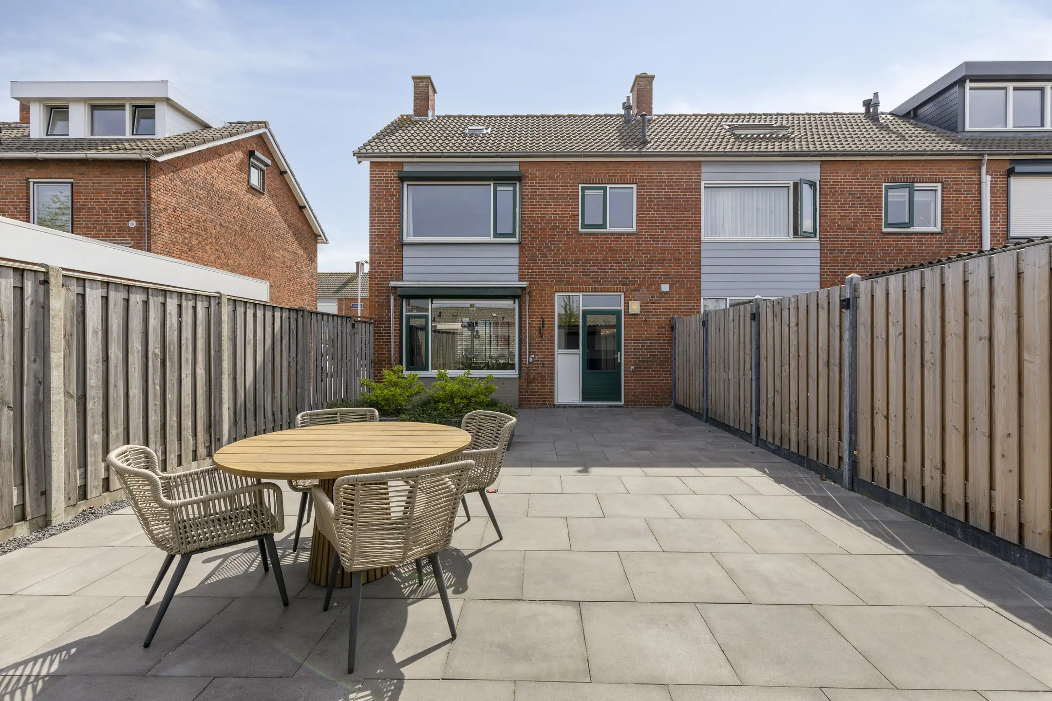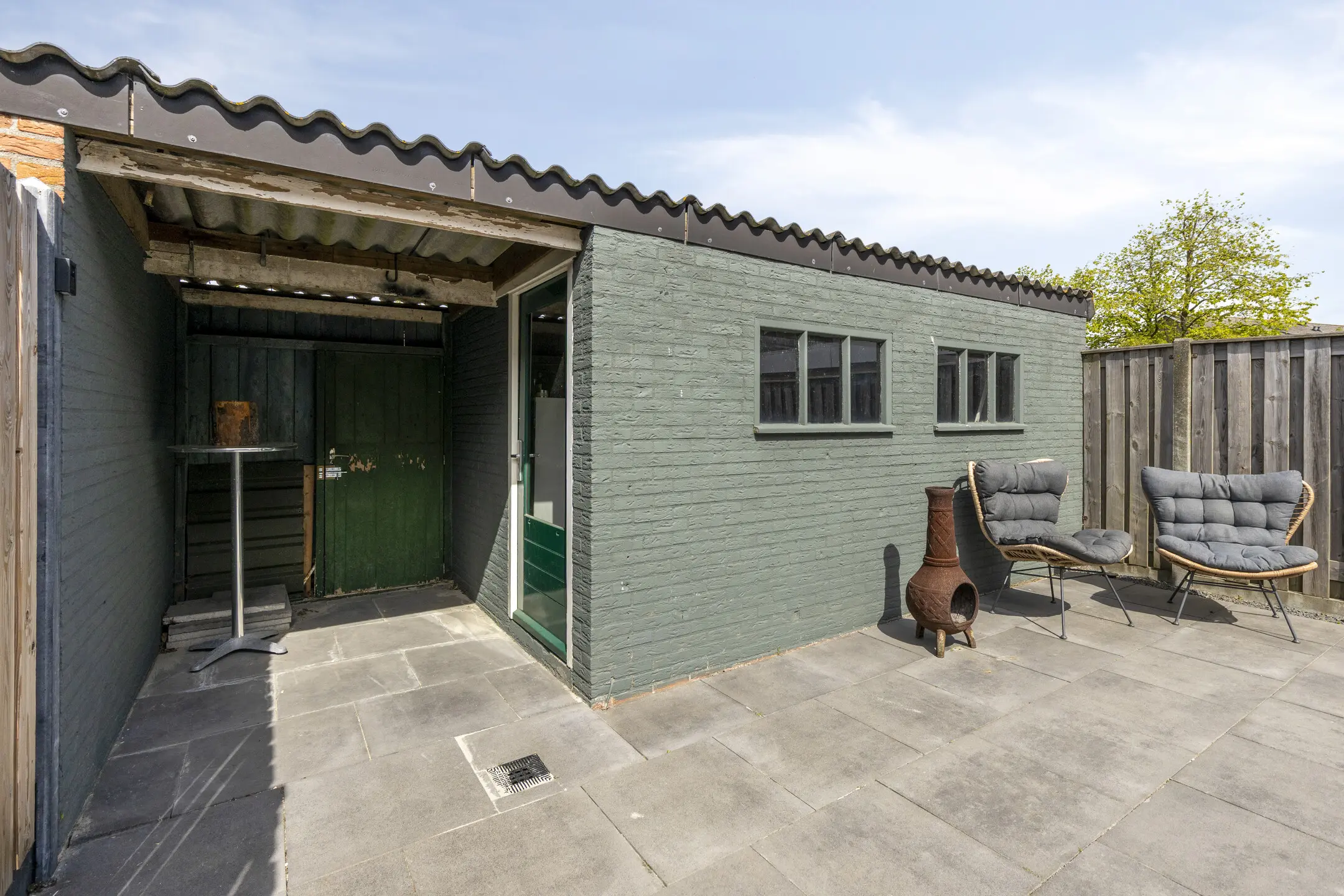 De achtertuin is onderhoudsvriendelijk aangelegd middels fraaie sierbestrating en biedt verrassend veel ruimte. Dankzij de ligging op het noordwesten kun je hier op verschillende momenten van de dag van de zon genieten. Extra prettig: geen directe inkijk van achterburen. Achterin de tuin staat een praktische stenen berging met elektra. Via de overkapping bereik je de vrije achterom aan de zijkant is ook een poort aanwezig.