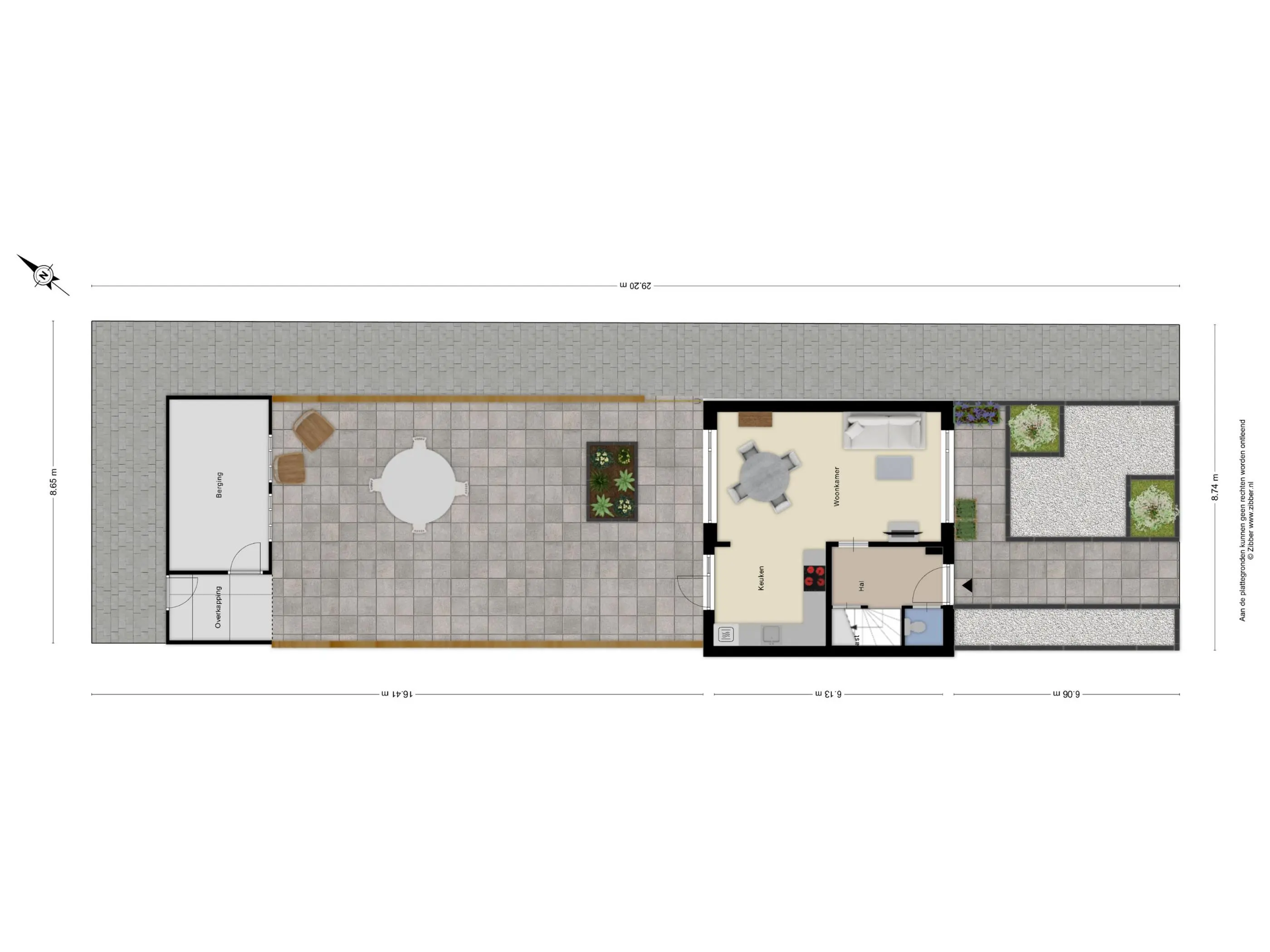 - achtertuin met een oppervlakte van 92 m² en is gelegen op het noordwesten