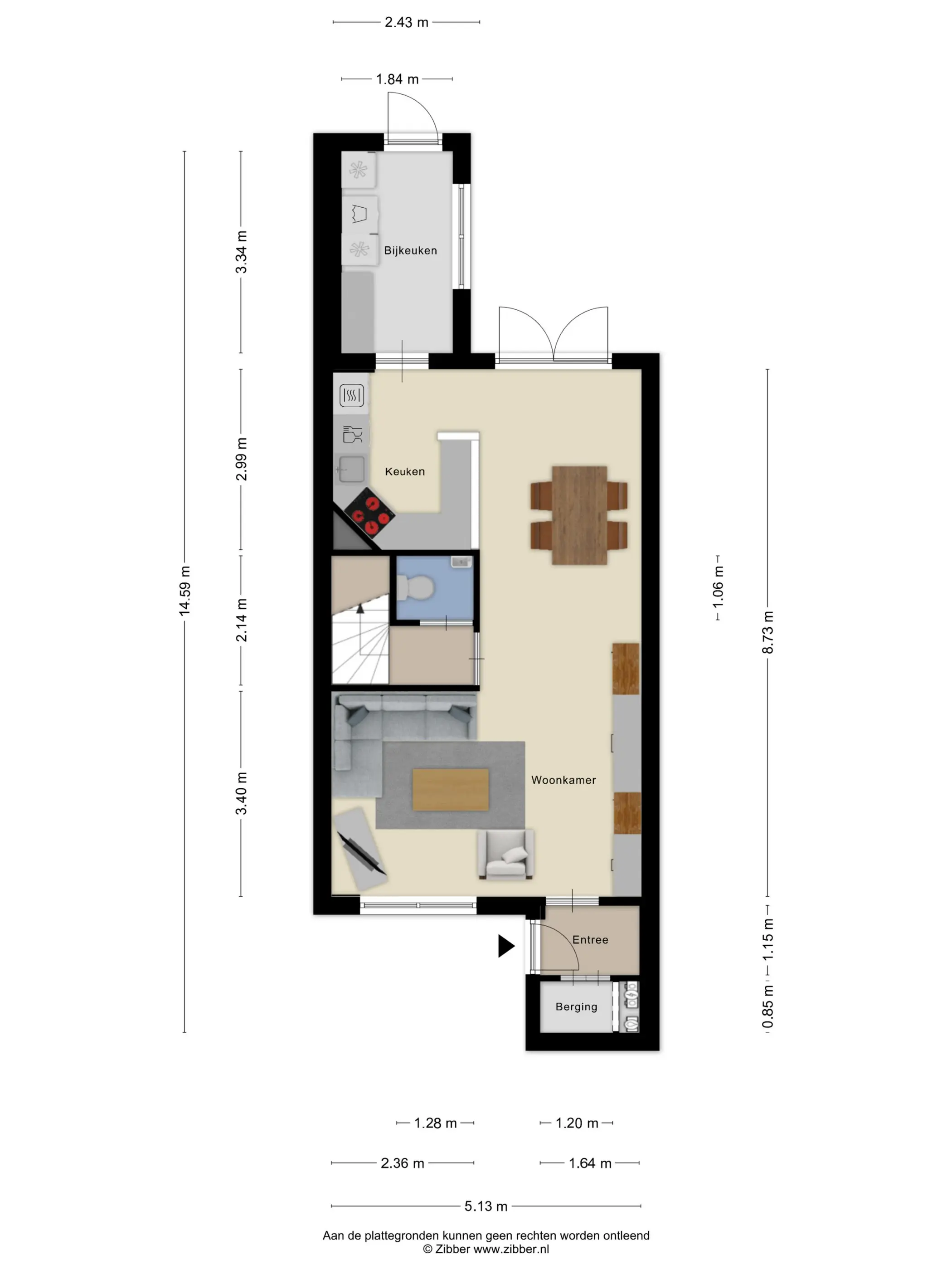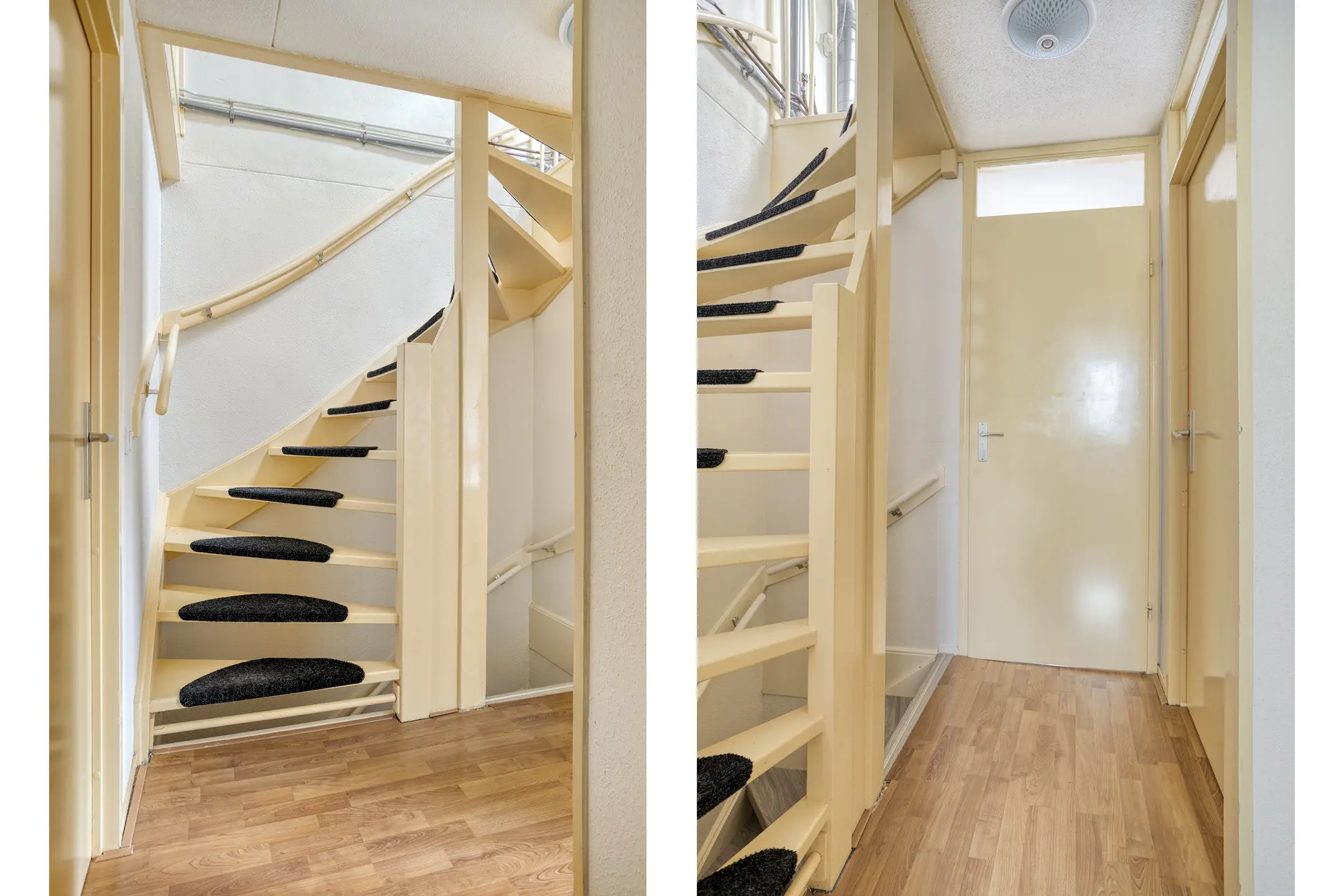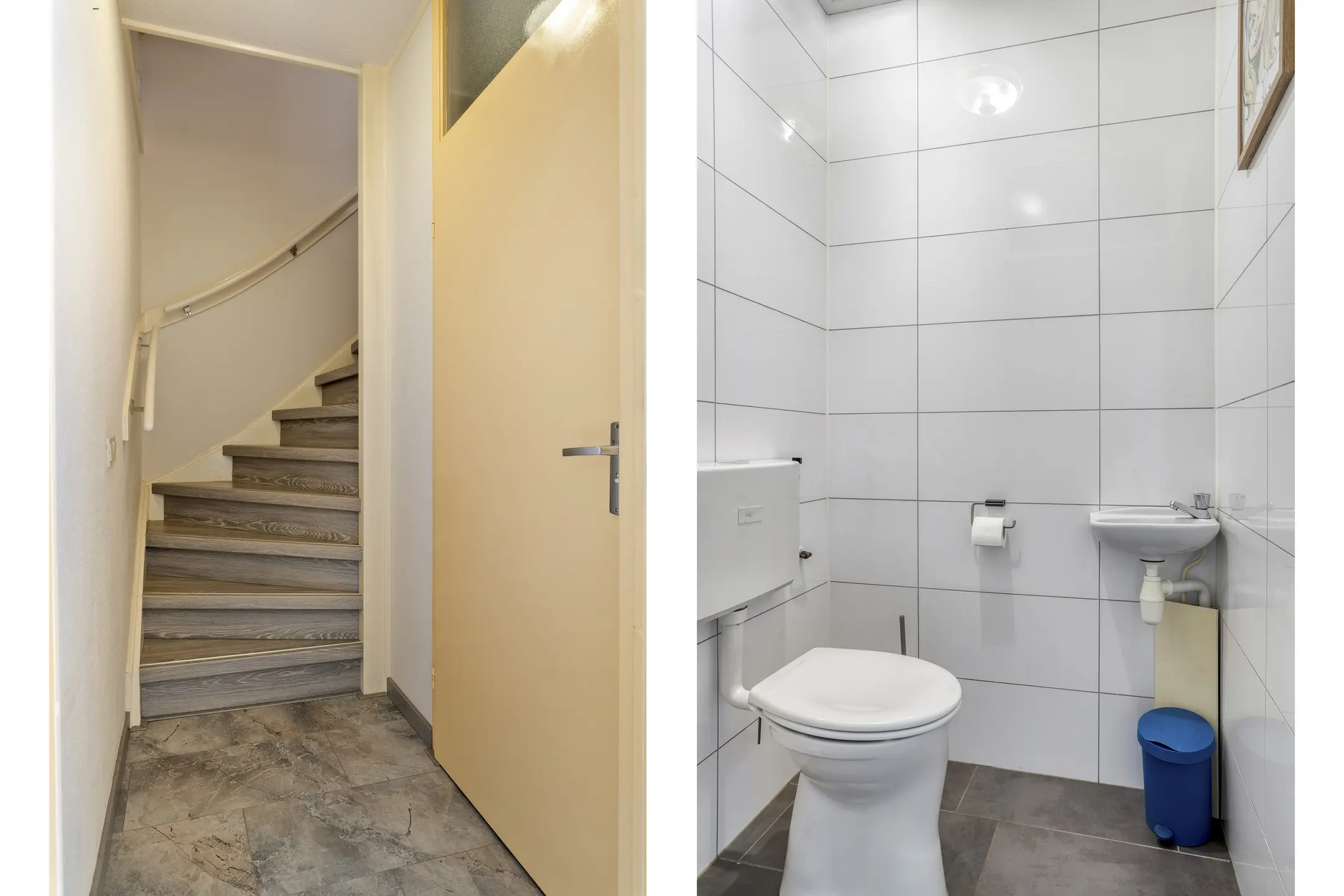 In de tussenhal bevinden zich het toilet en de trapopgang naar de eerste verdieping. De trap is recent vernieuwd en geeft een nette, verzorgde uitstraling.