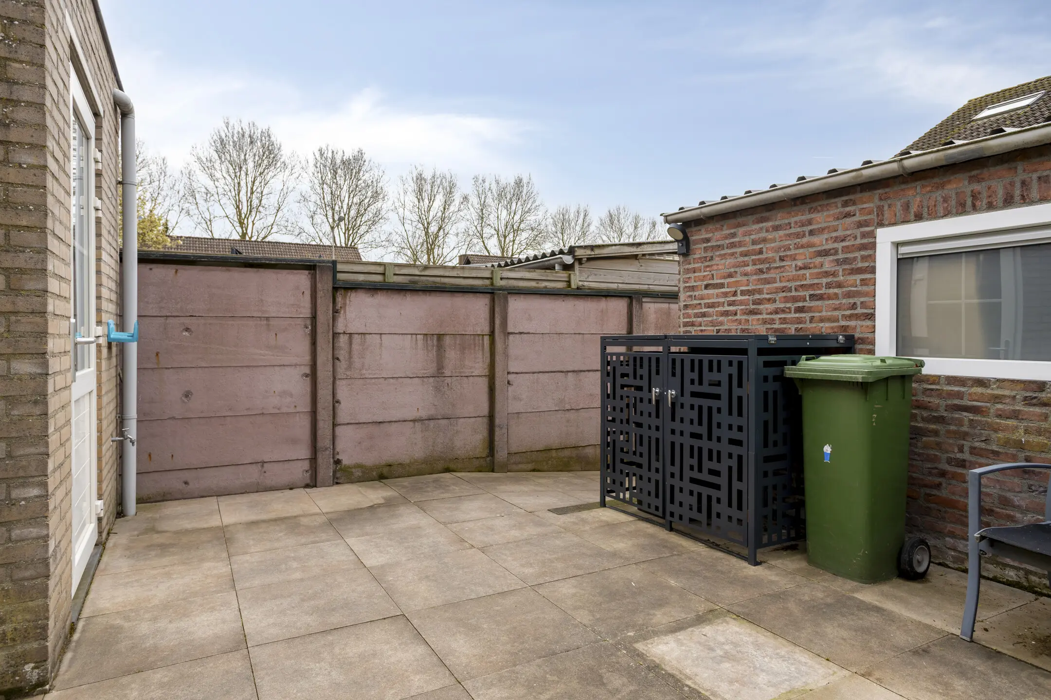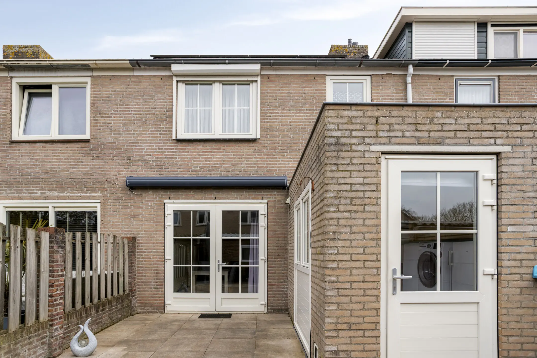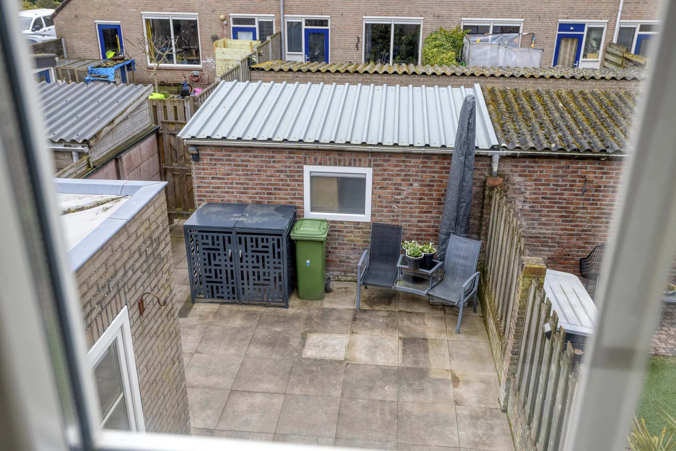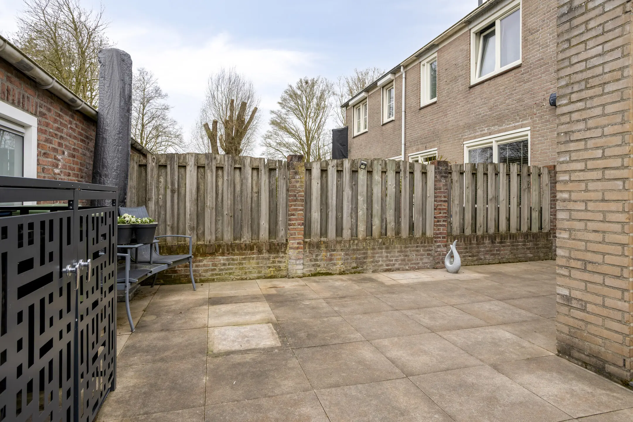 De achtertuin is onderhoudsvriendelijk aangelegd met sierbestrating en gelegen op het zuid-westen. Aan de achtergevel is een elektrische zonwering (2025) geplaatst, waardoor je hier ook op zonnige dagen comfortabel buiten kunt zitten.