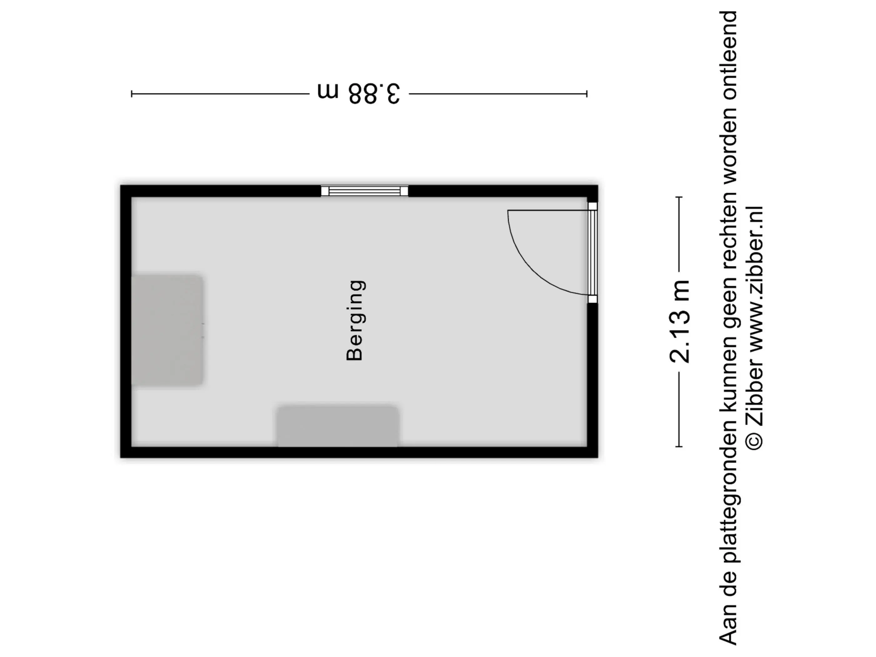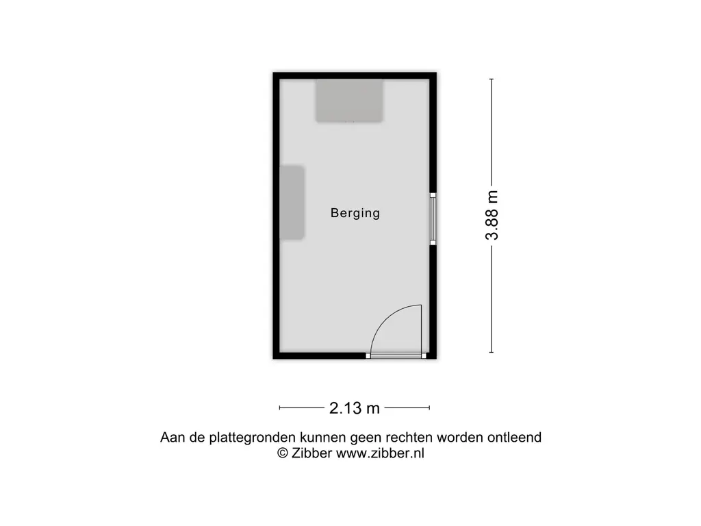 Achterin de tuin staat een stenen berging, uitgevoerd met kunststof kozijnen en voorzien van een geïsoleerd dak met damwandplaten.