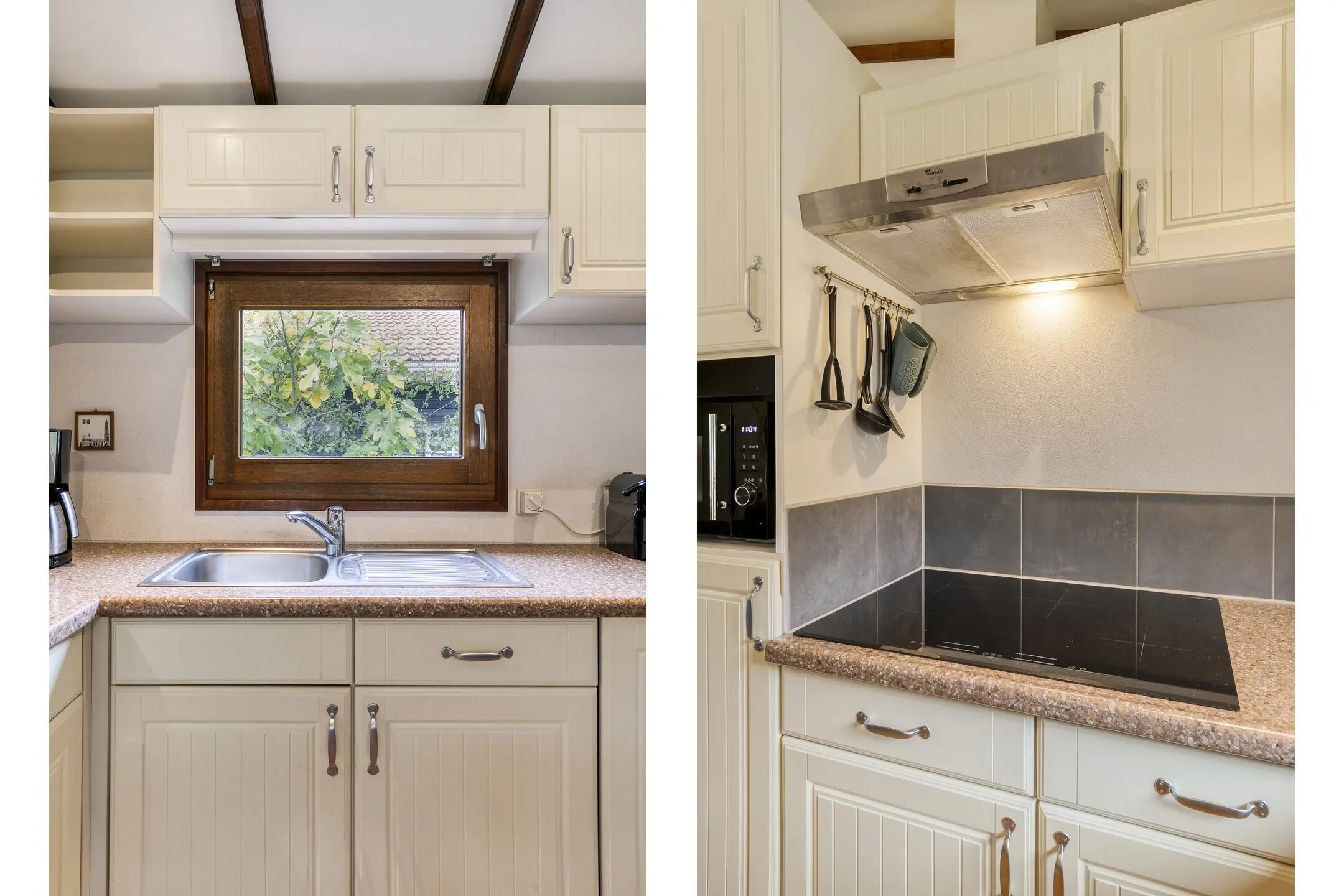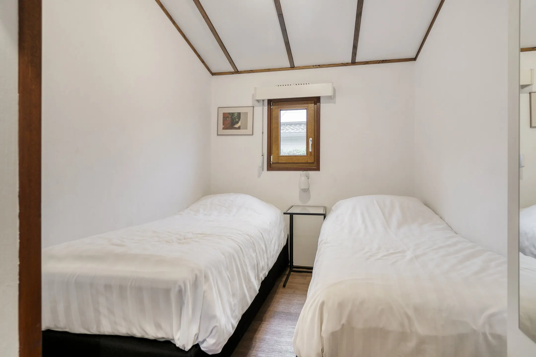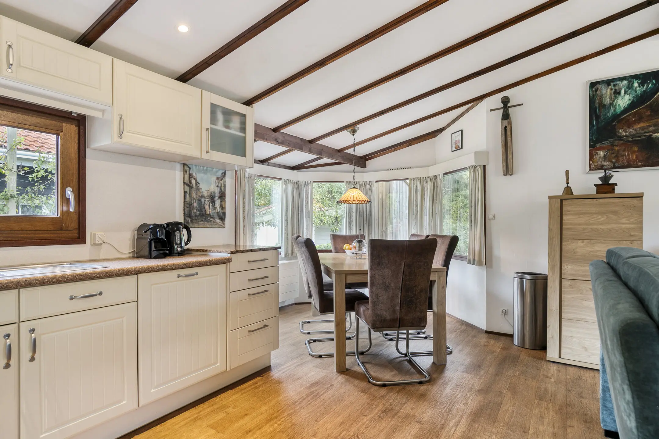 Je betreedt de woning via de ruime hal met meterkast en toilet. Vanuit hier kom je in de lichte woonkamer met airco en openslaande deuren naar de veranda en de tuin. De open keuken (uit 2009) is praktisch ingedeeld en voorzien van diverse vernieuwde apparatuur. Dankzij de gezellige erker is er volop ruimte voor een eethoek waar je met familie of gasten kunt genieten van het uitzicht op de tuin. De woning beschikt over drie slaapkamers & ruime recent verbeterde badkamer, geschikt voor een comfortabel verblijf van totaal zes gasten. Buiten, in de ruime en heerlijk zonnige tuin, vind je een ruime berging met sauna en wasmachine – een heerlijke extra voor ontspanning en gemak. De woning wordt volledig gemeubileerd en gestoffeerd verkocht, zodat je er direct van kunt genieten of verder kunt verhuren.