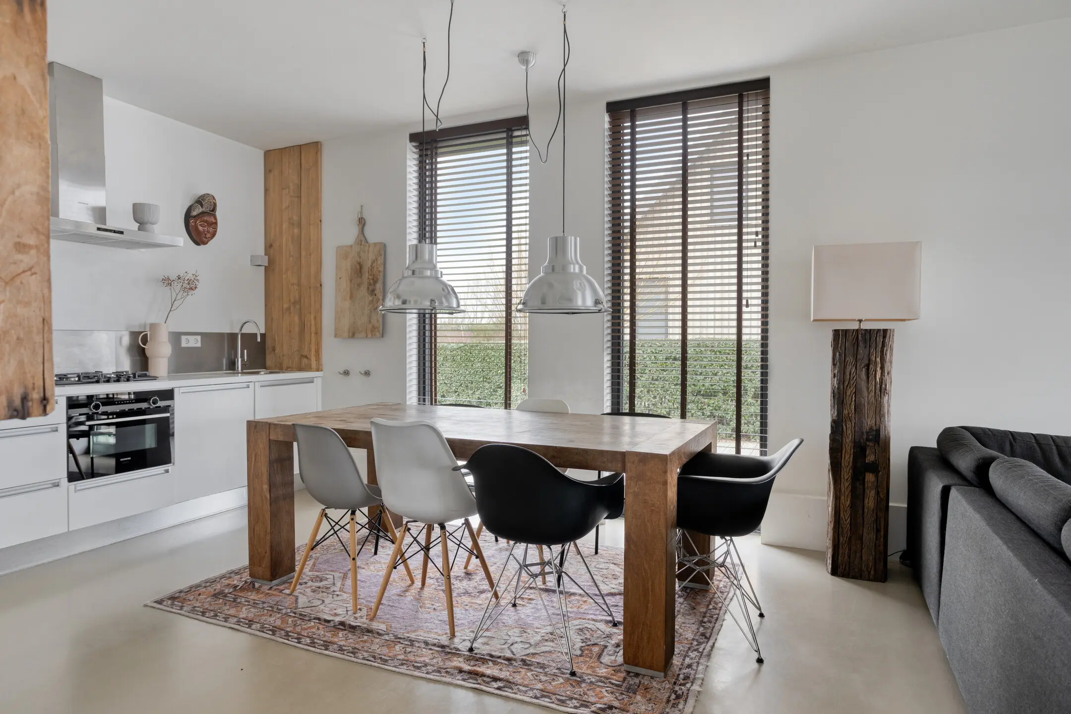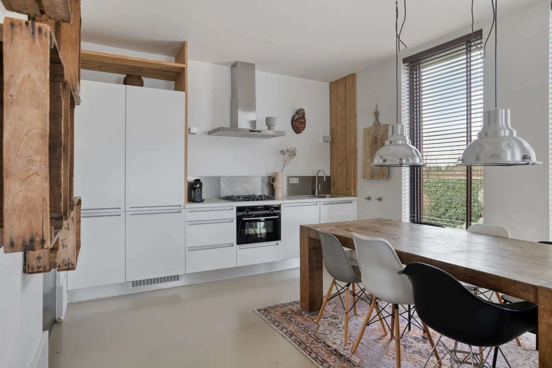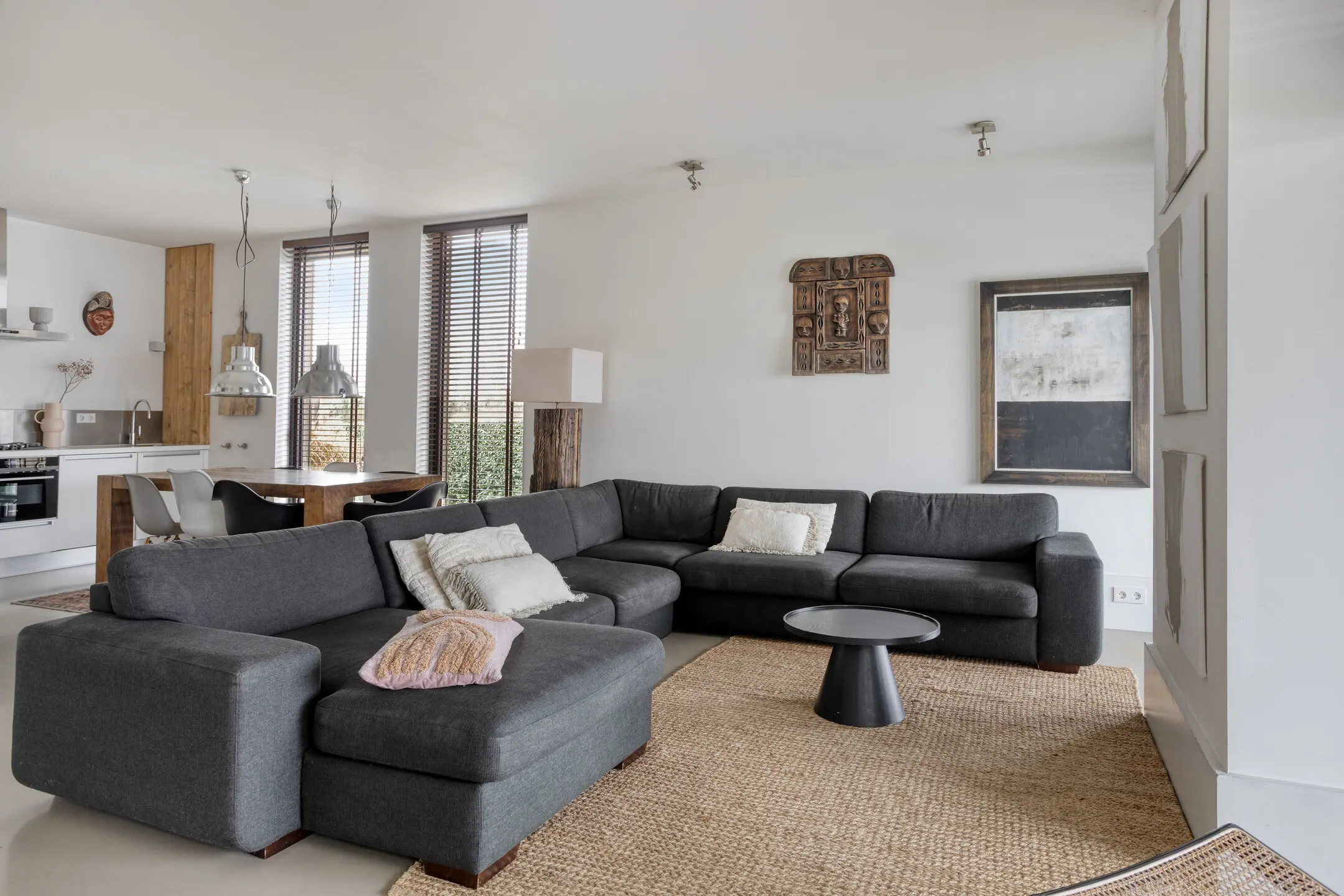 De royale woonkeuken met modern keukenblok vormt het hart van de villa en staat in open verbinding met de sfeervolle woonkamer.