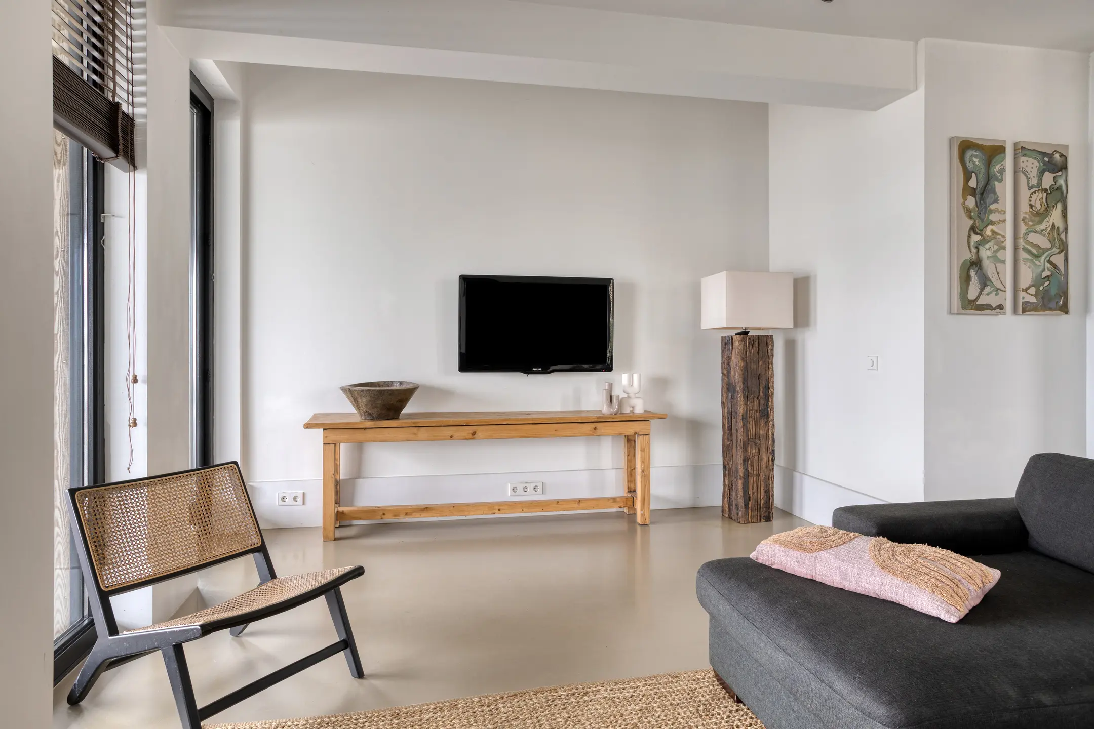 De woonkamer geeft direct toegang tot de luxe aangebouwde overkapping van 29 m², voorzien van heaters.