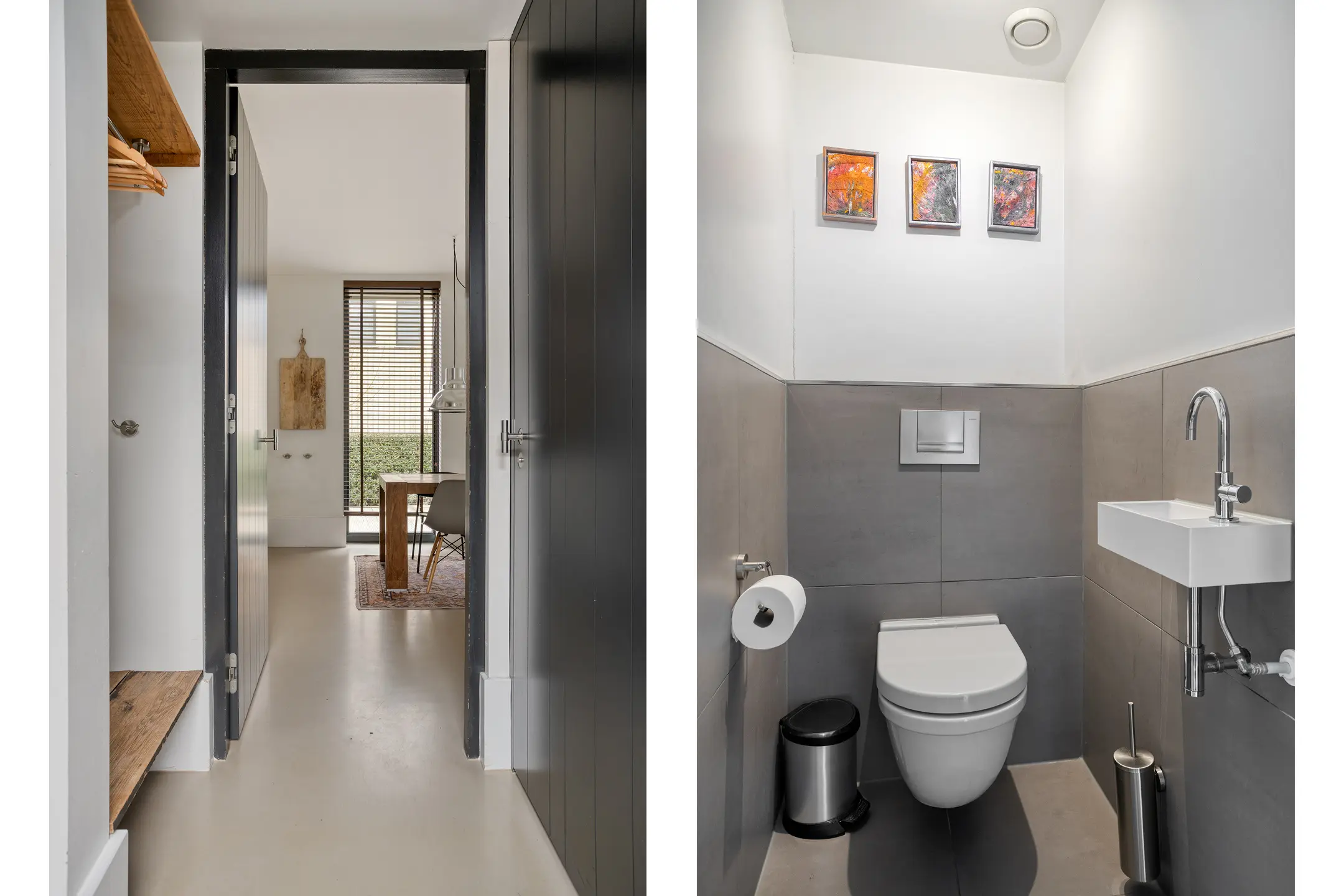 Via de ruime hal met toilet en meterkast betreedt u de woning.
