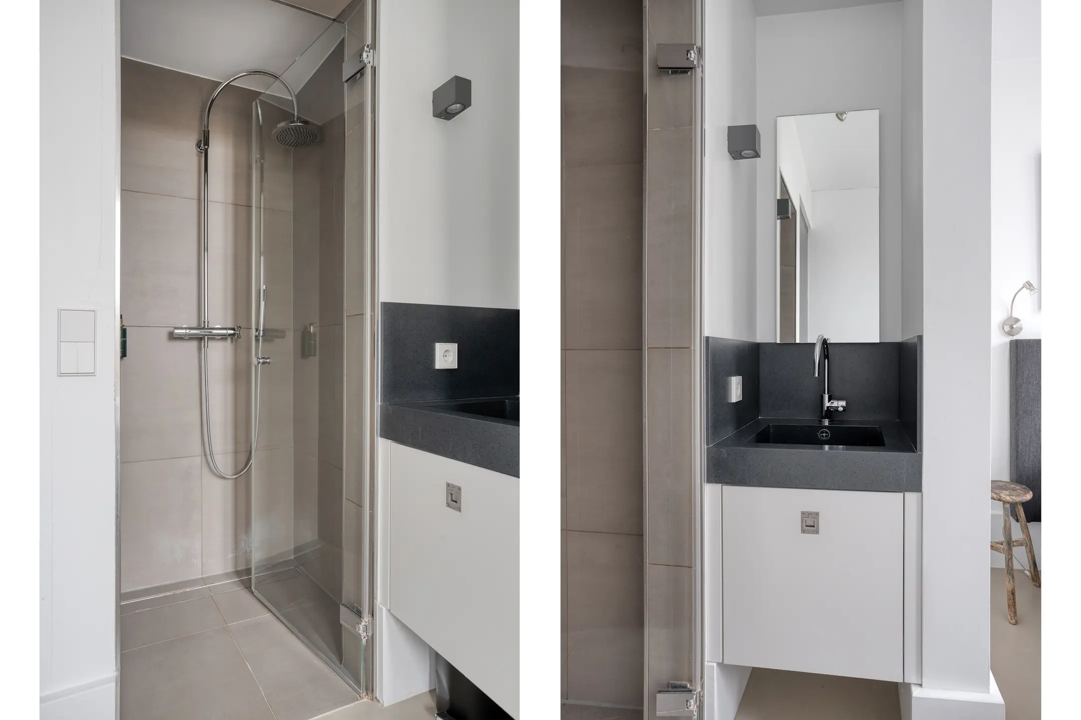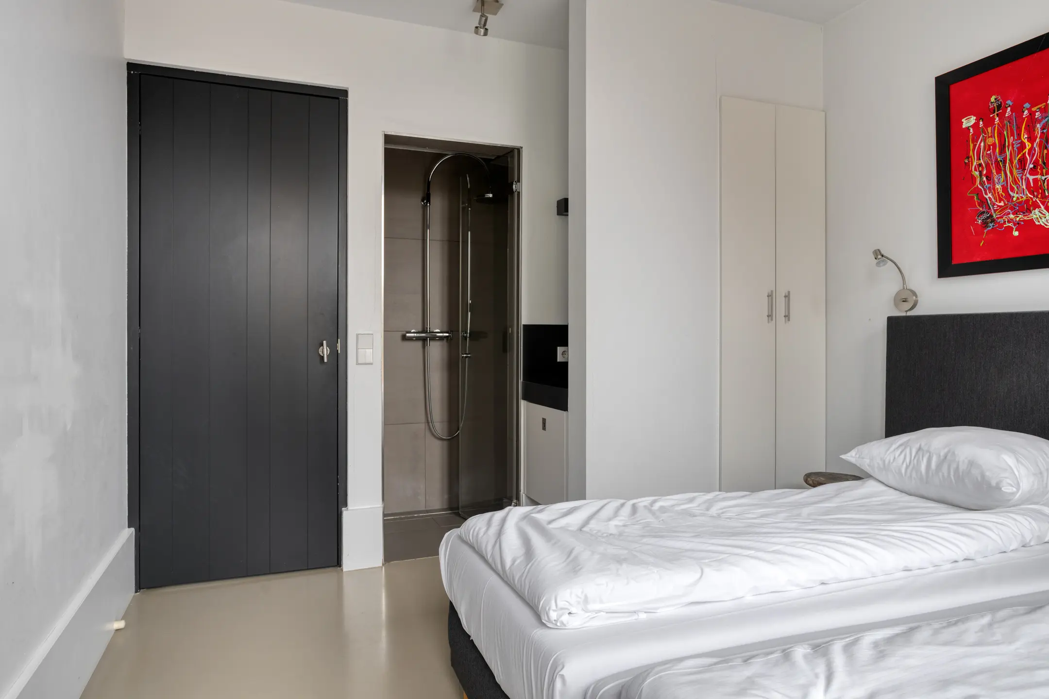 Aan de voorzijde bevindt zich een royale slaapkamer met en suite douche – ideaal voor gelijkvloers gebruik. Daarnaast beschikt de woning over meerdere praktische inpandige bergingen.