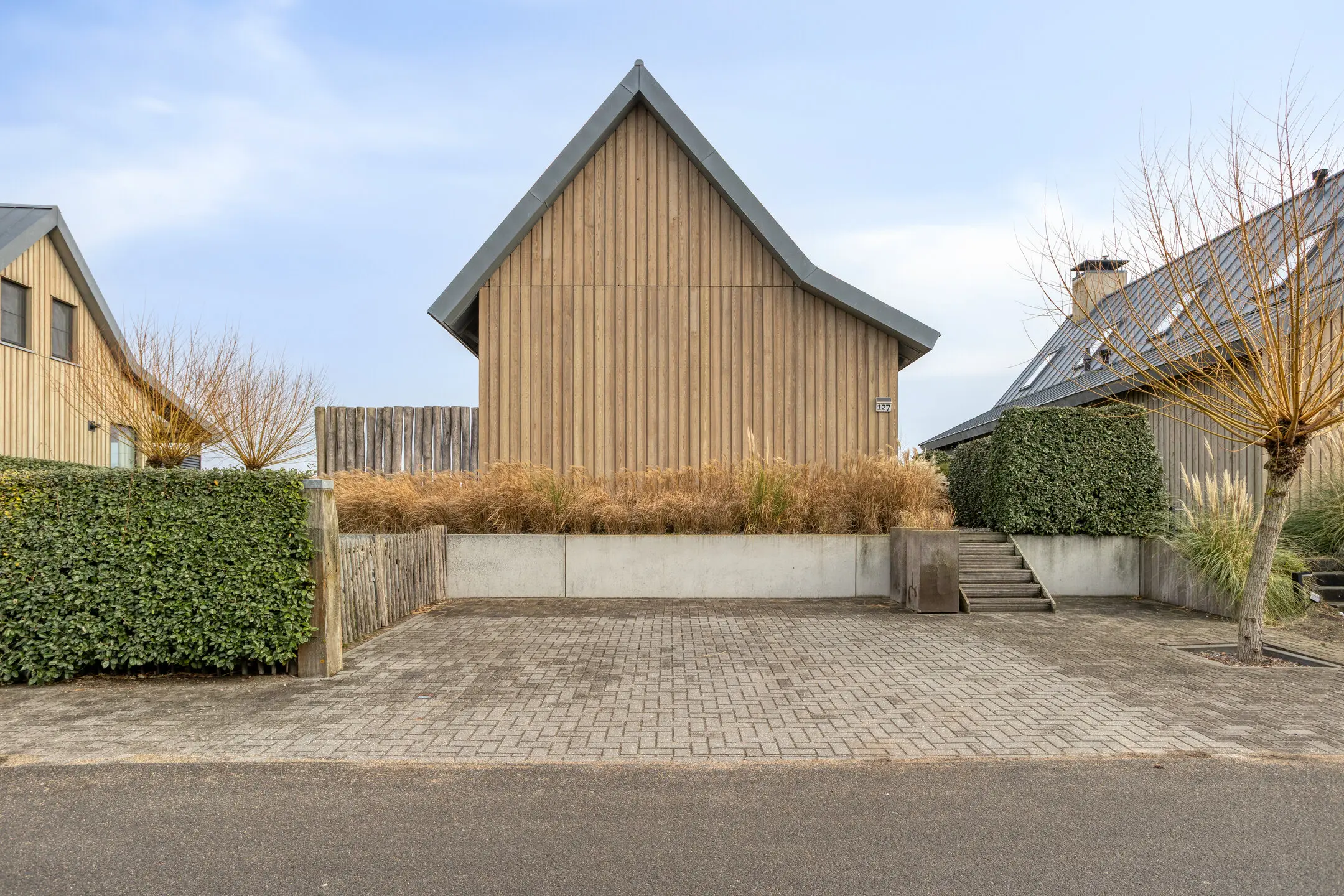 De oprit biedt ruimte voor circa twee auto’s. De riante tuin op het noordoosten beschikt over meerdere zonneterrassen, zodat u op elk moment van de dag een fijne plek in de zon of schaduw vindt.