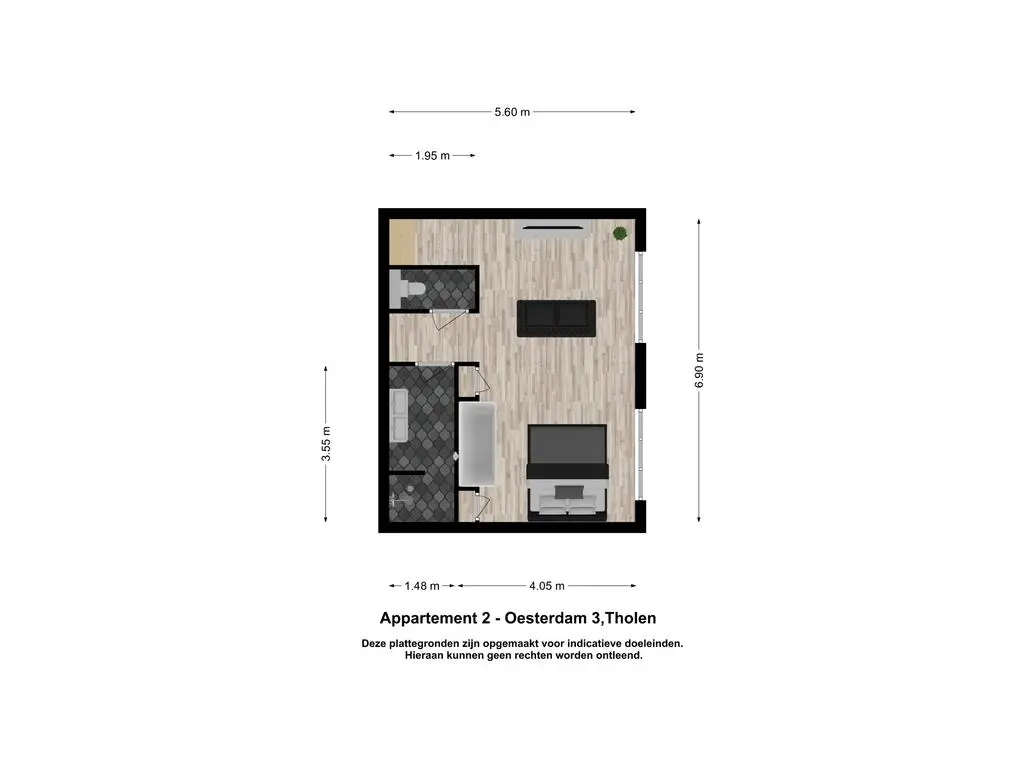 Kamernummer 1106, 46,1 m², € 286.500,-- k.k., btw belast