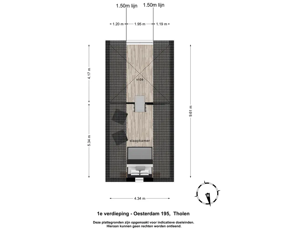 Tweede slaapkamer bereikbaar via een trap in de woonkamer