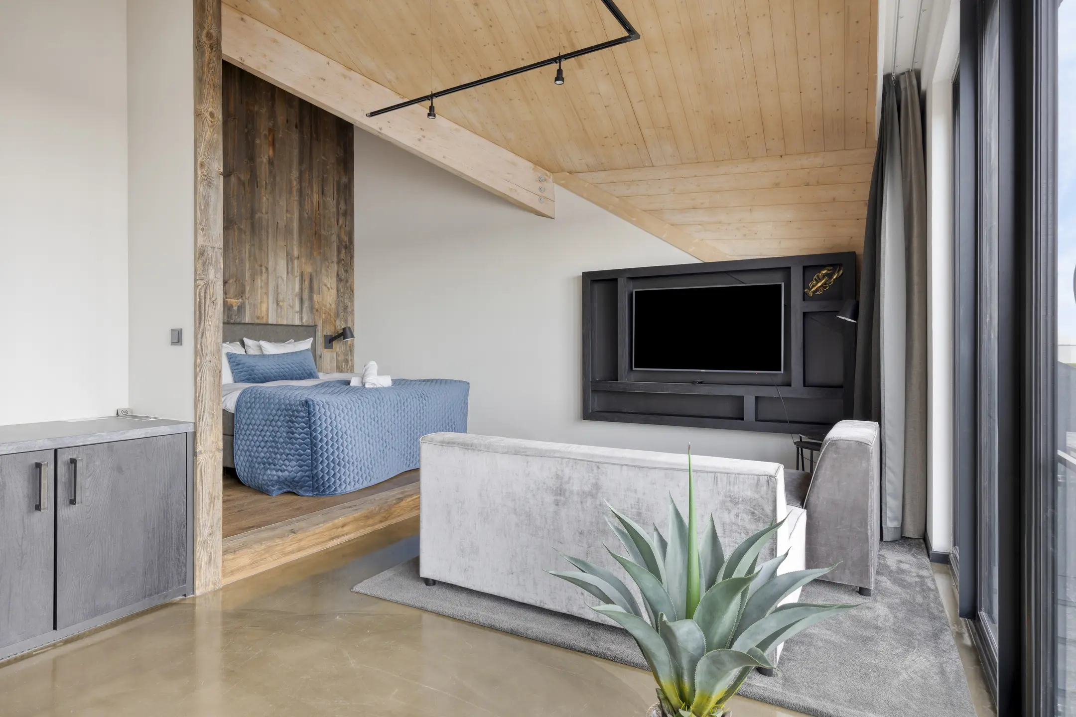 De moderne hotelappartementen in Waterrijk Oesterdam zijn ontworpen voor de veeleisende gast van vandaag: stijlvol, ruim en met oog voor comfort. De suite is voorzien van een kingsize bed, luxe badkamer, toilet, airco, minibar én biedt toegang tot de wellnessfaciliteiten van het resort. Daarnaast geniet u van een prachtig uitzicht over het water vanuit uw suite in de Marina Beachclub.