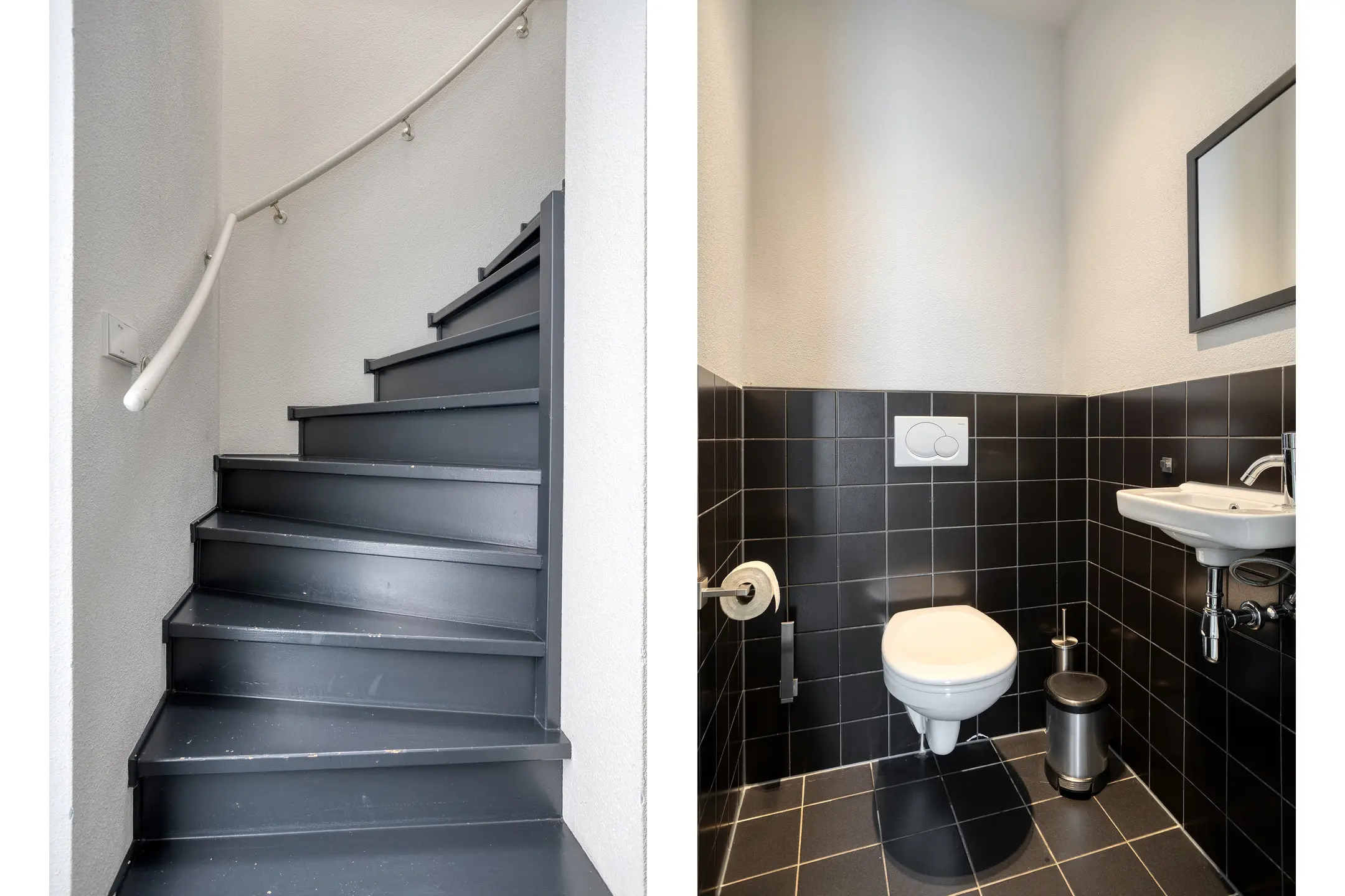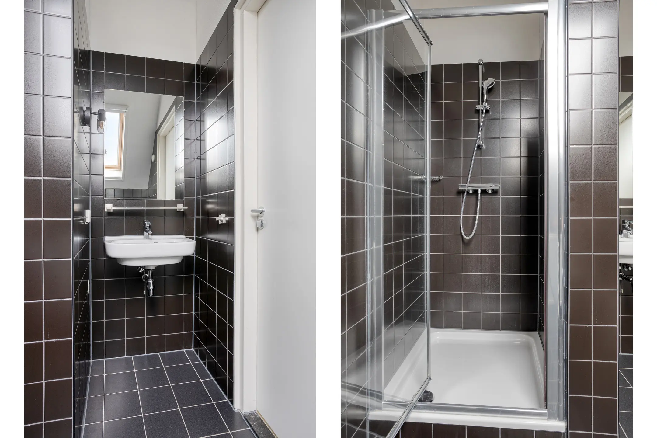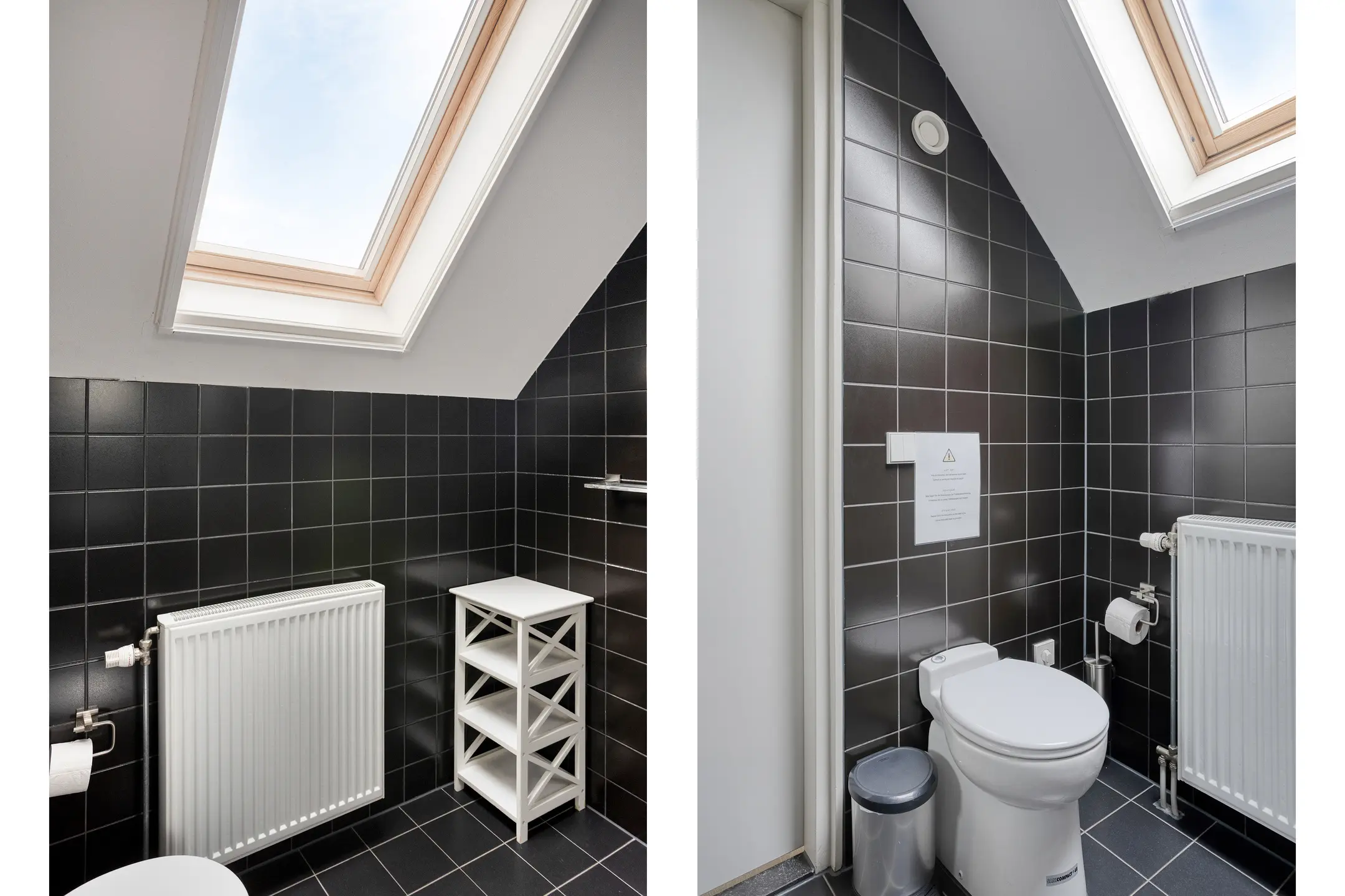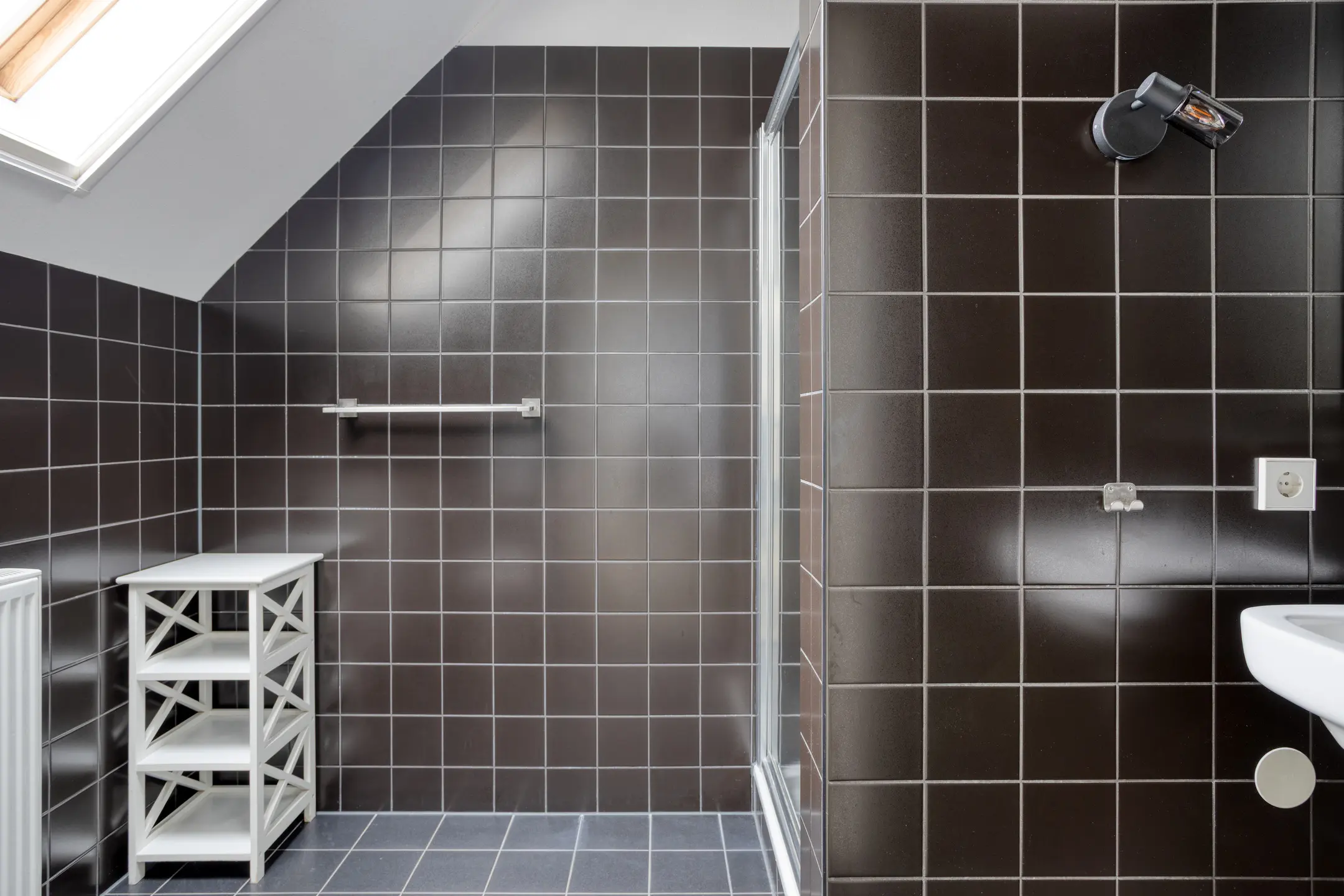 De ruime overloop beschikt over een praktische vaste kast en biedt toegang tot een tweede royale slaapkamer. Ook op deze verdieping is een badkamer aanwezig, compleet met douchecabine, wastafel en toilet – ideaal voor gasten of kinderen.