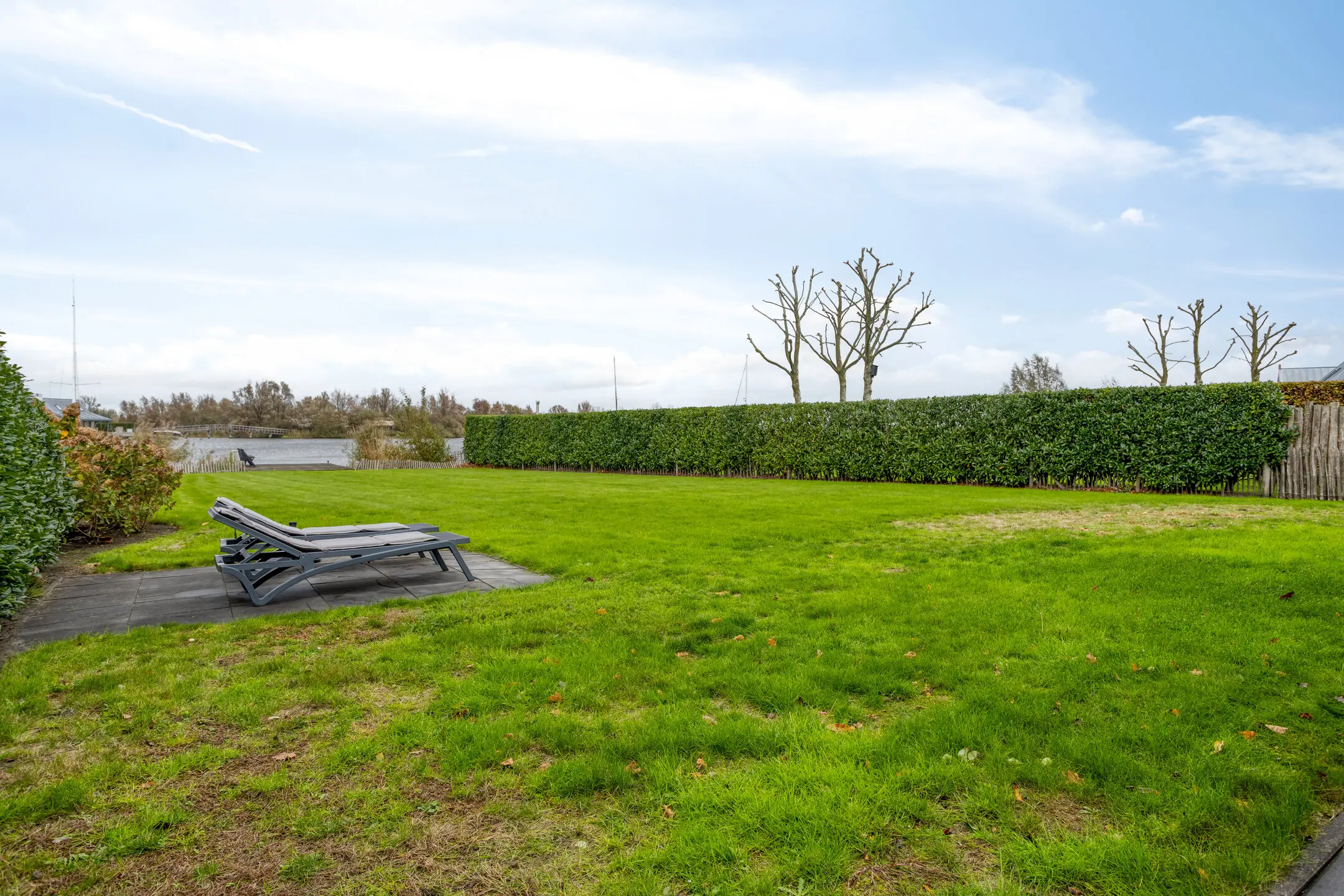 Bij binnenkomst treft u een ruime hal met meterkast en modern toilet. De lichte woonkamer biedt directe toegang tot de veranda en kijkt prachtig uit over de tuin en het water. De halfopen woonkeuken is voorzien van diverse inbouwapparatuur en eveneens verbonden met de veranda – perfect voor lange zomeravonden aan het water. Verder bevindt zich op de begane grond een ruime slaapkamer met vaste linnenkast en een loopdeur naar de tuin, evenals een royale badkamer met dubbele wastafel, ligbad en douchecabine.