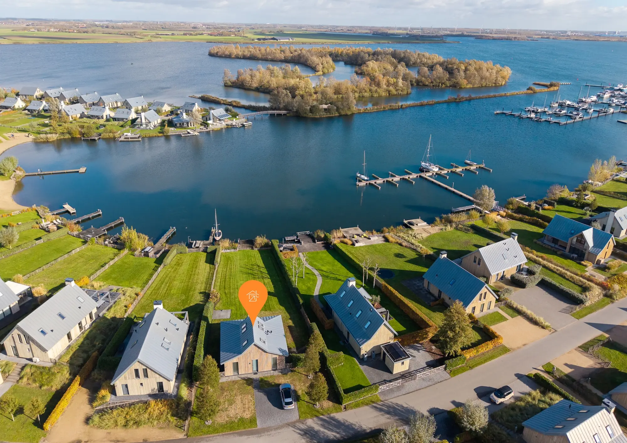 Onder architectuur van Piet Boon gebouwde vrijstaande 4-persoons recreatievilla op een unieke locatie aan het Zoommeer. Met een eigen ligplaats, 1.148 m² eigen grond, energielabel B en bouwjaar 2010 is dit een buitenkans voor wie houdt van water, natuur en comfort. De woning wordt volledig gestoffeerd en gemeubileerd verkocht en beschikt over 84 m² woonoppervlakte plus een aangebouwde veranda van 29 m². Aan de voorzijde is een ruime oprit met plaats voor meerdere auto’s.