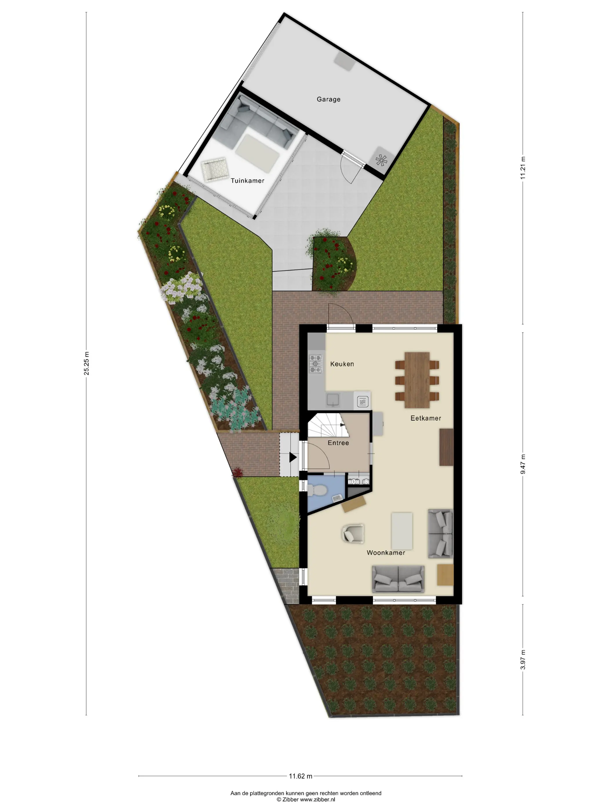 Via de tuin is de garage gemakkelijk bereikbaar, die is uitgerust met een aluminium kanteldeur. Handig voor het stallen van je auto, maar ook perfect te gebruiken als hobby- of werkruimte – de mogelijkheden zijn eindeloos!