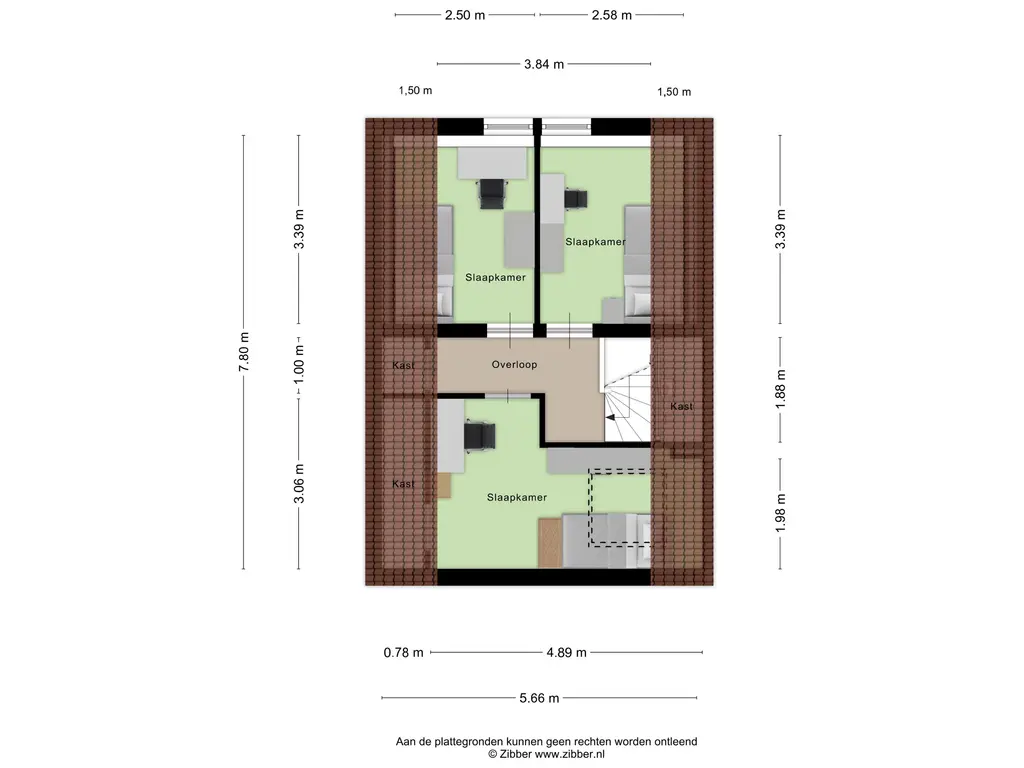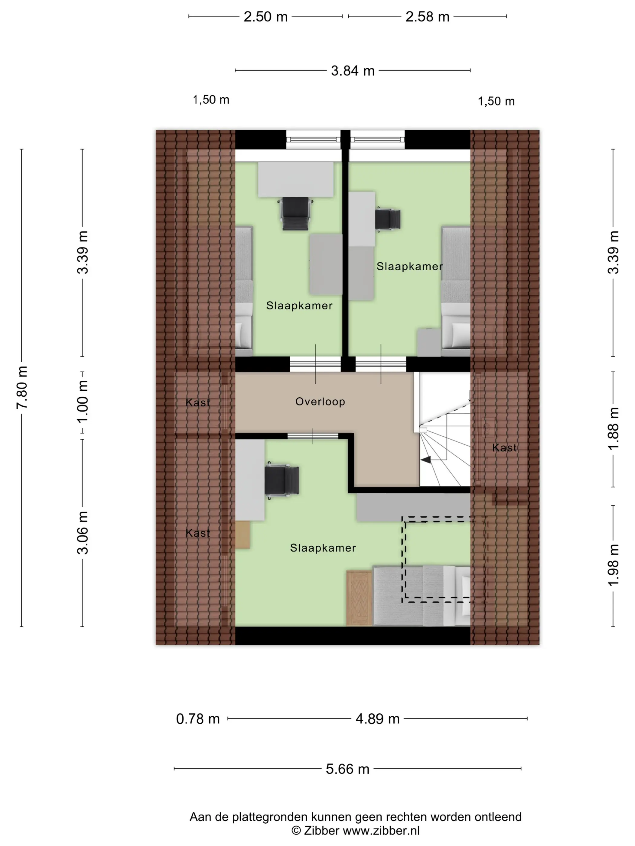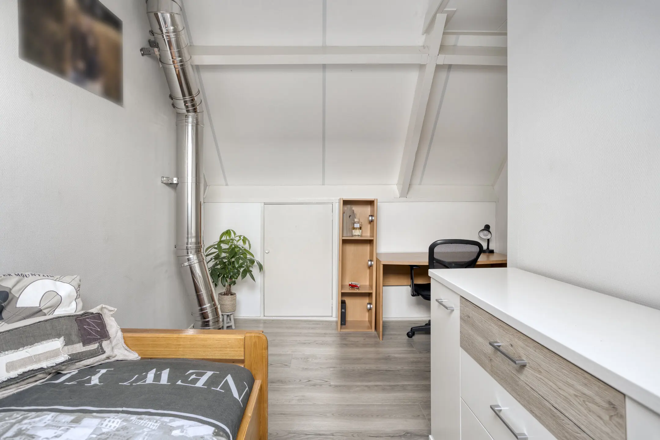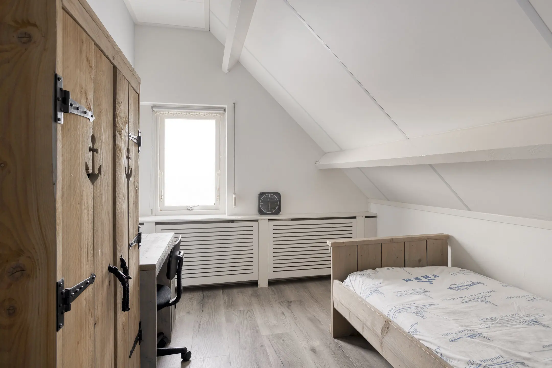 Er zijn drie slaapkamers, stuk voor stuk van een prettig formaat en daardoor ideaal als slaapkamer, speelkamer of werkruimte. De grootste kamer heeft een Velux-dakraam en extra opbergruimte achter de knieschotten. De twee andere slaapkamers beschikken over een rolluik, wat zorgt voor fijne verduistering en een koele kamer in de zomer.