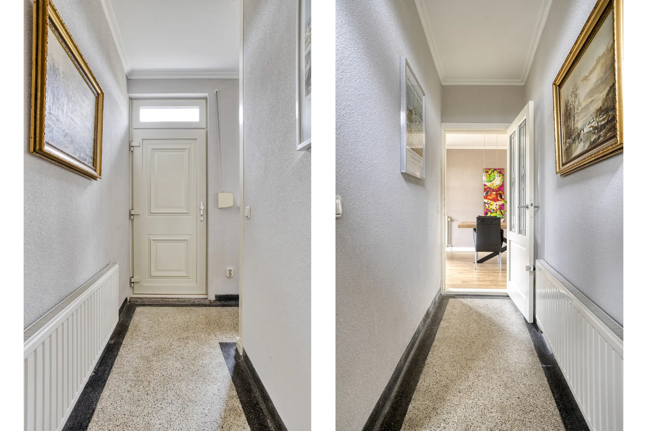 Via de entree betreed je de woning, waar zich direct de trapopgang naar de eerste verdieping bevindt. Vanuit hier is er toegang tot de eetkamer, die in open verbinding staat met de keuken & woonkamer. De keuken is uitgerust met diverse inbouwapparatuur en biedt een prettige werk- en leefruimte.