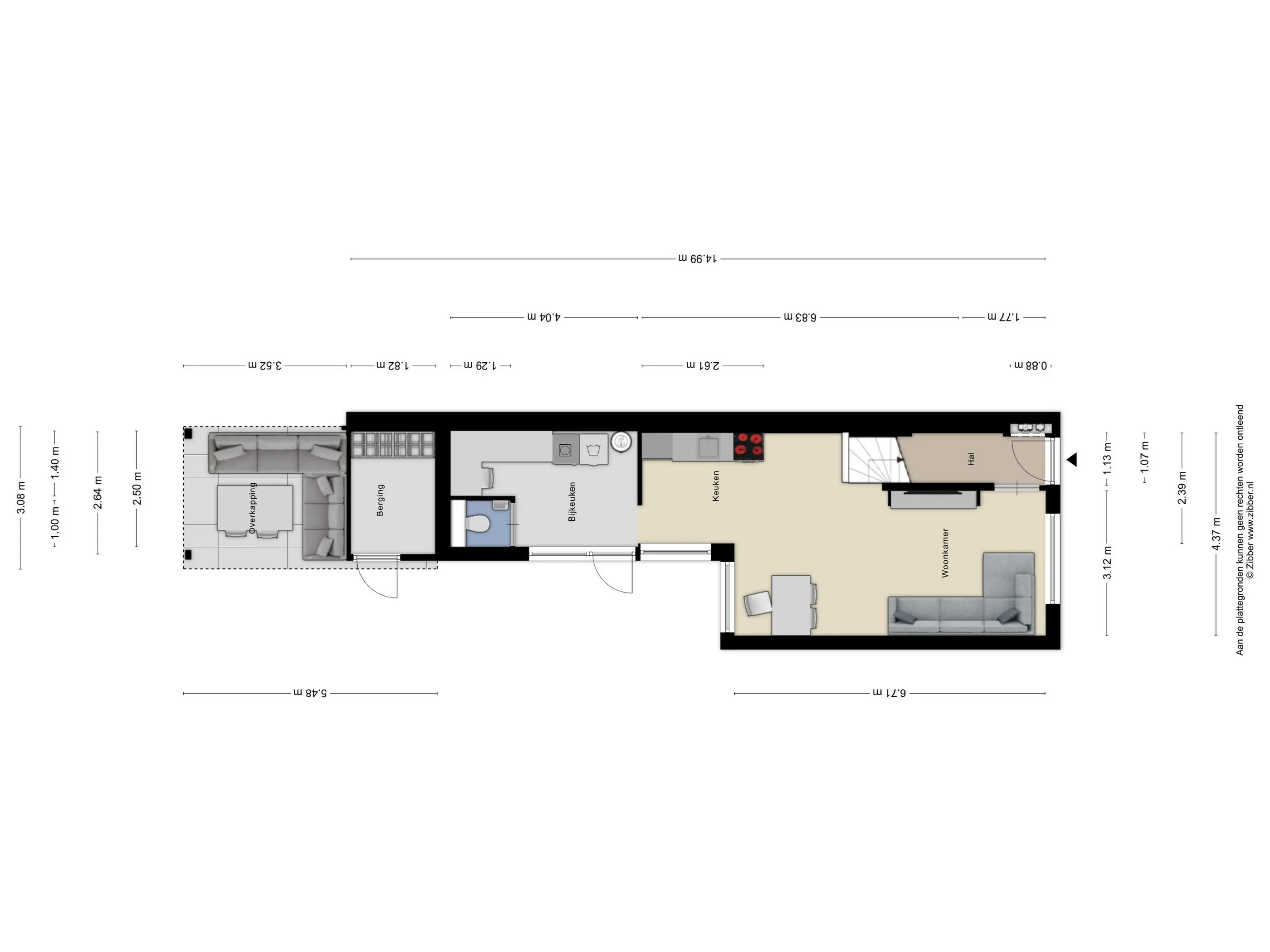 Via de ruime entree, voorzien van een volledig vernieuwde meterkast, betreed je de woning. De lichte doorzon woonkamer van circa 21 m² vormt het hart van het huis en biedt een prettige leefruimte met veel daglichtinval. De gehele begane grond is afgewerkt met laminaat en voorzien van comfortabele vloerverwarming (met uitzondering van de hal en het toilet).