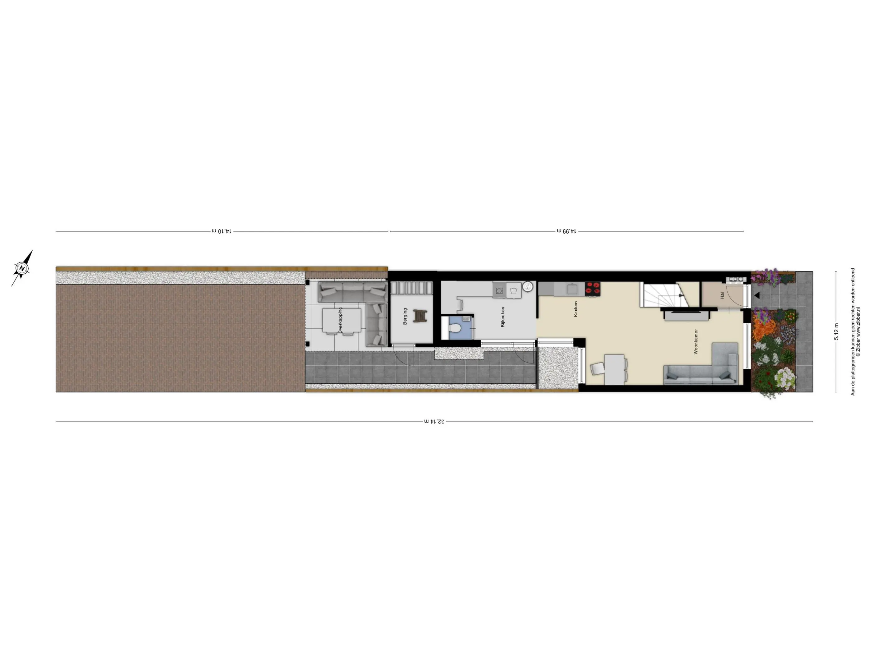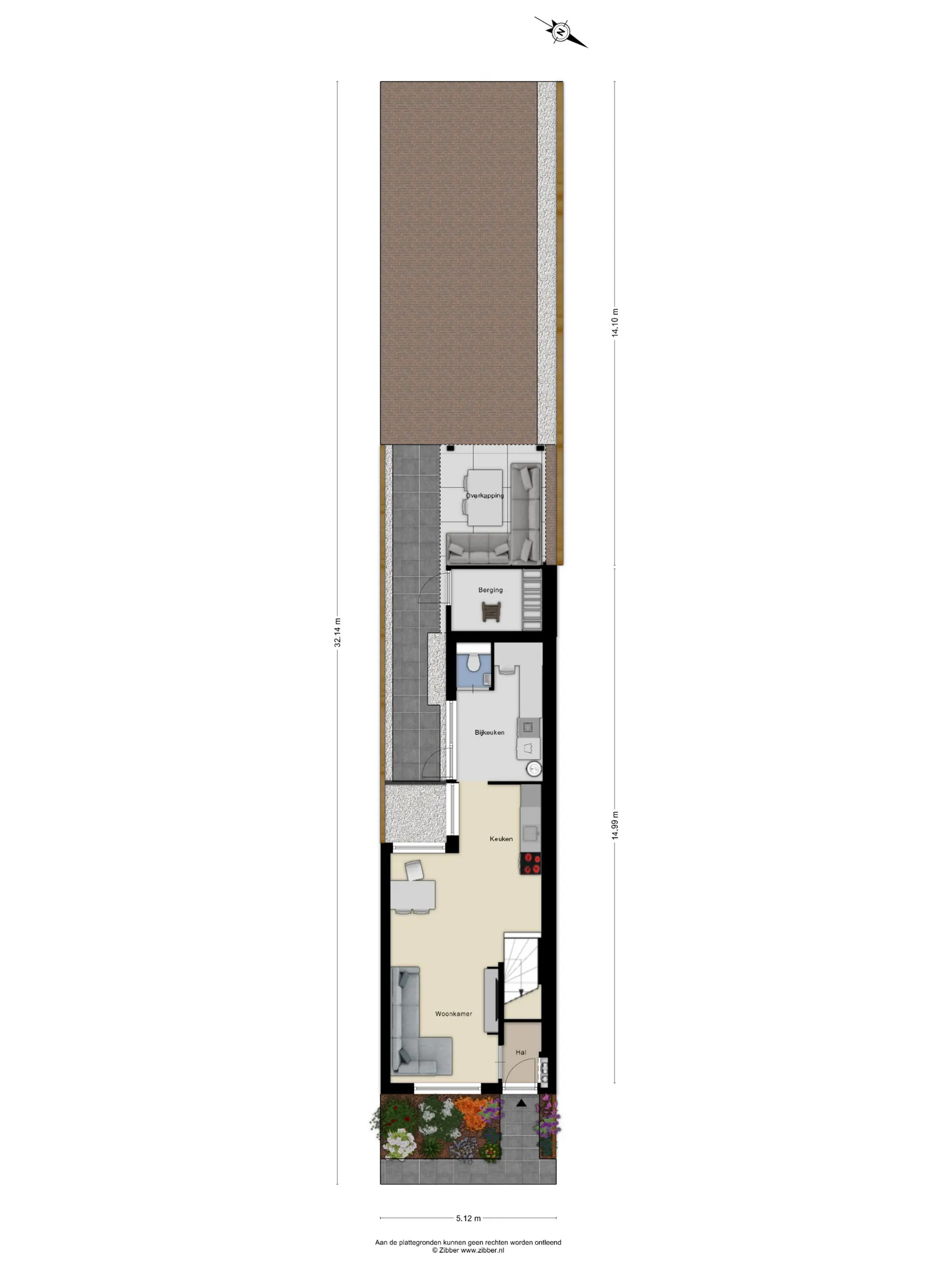 - achtertuin met een oppervlakte van 72 m² en is gelegen op het zuidwesten